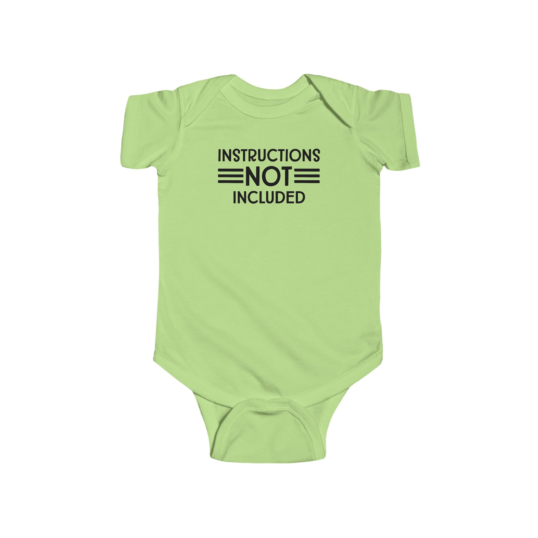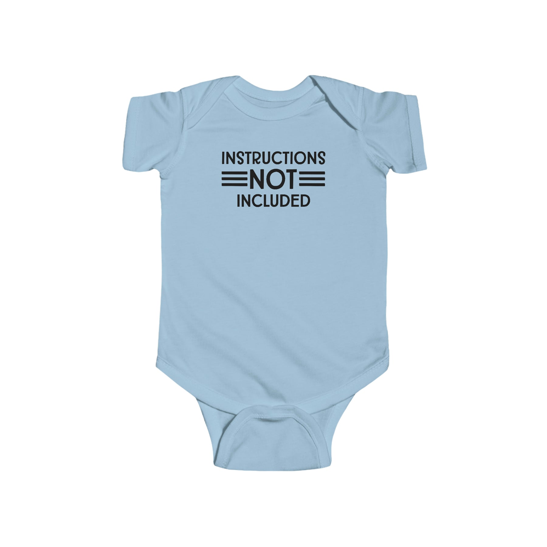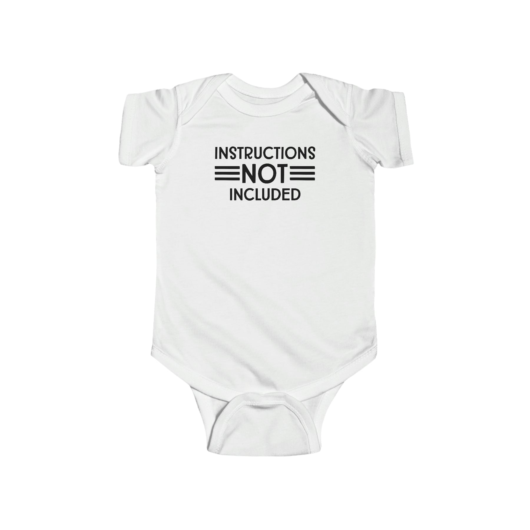 A durable and soft infant fine jersey bodysuit with ribbed bindings and plastic snaps for easy changing access. Title: Instructions Not Included Onesie. Fabric: 100% cotton (fiber content may vary), light fabric (4.5 oz/yd²).