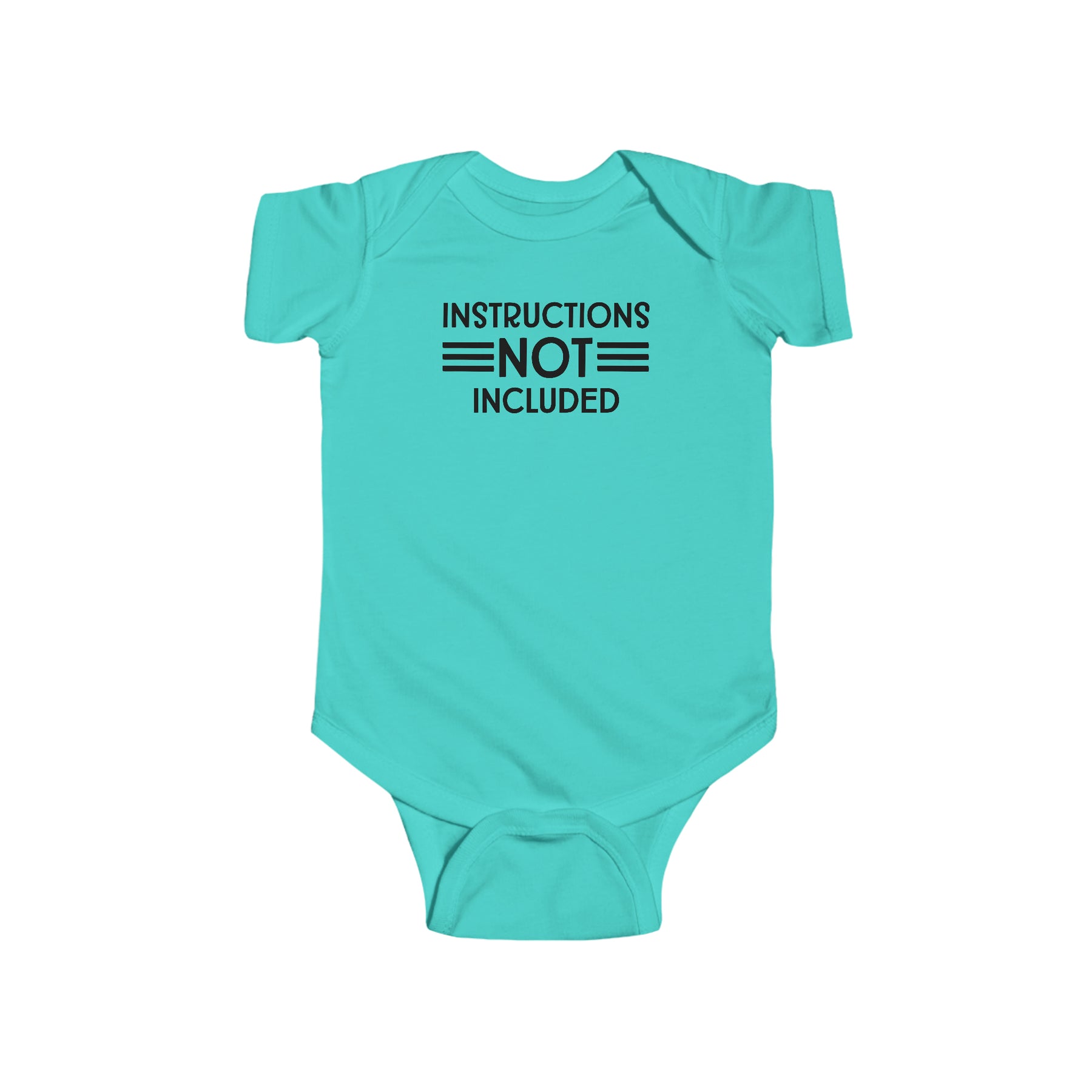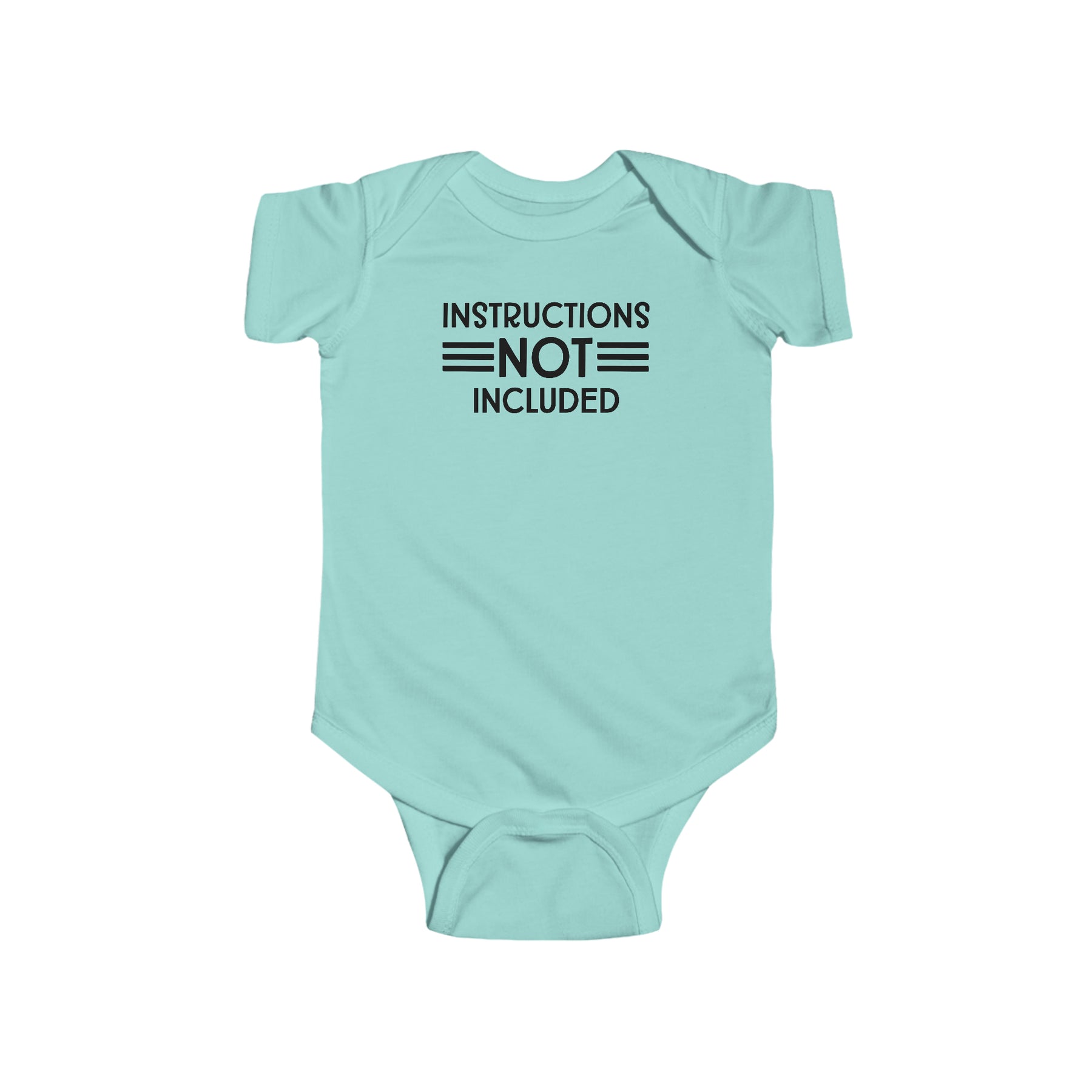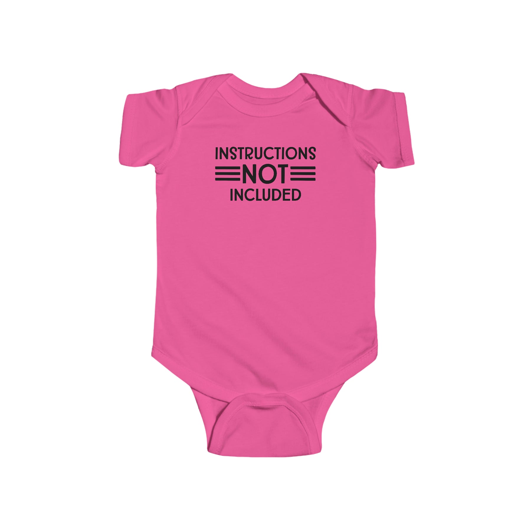 A durable and soft infant fine jersey bodysuit with ribbed bindings and plastic snaps for easy changing access. Title: Instructions Not Included Onesie. Fabric: 100% cotton (fiber content may vary), light fabric (4.5 oz/yd²).