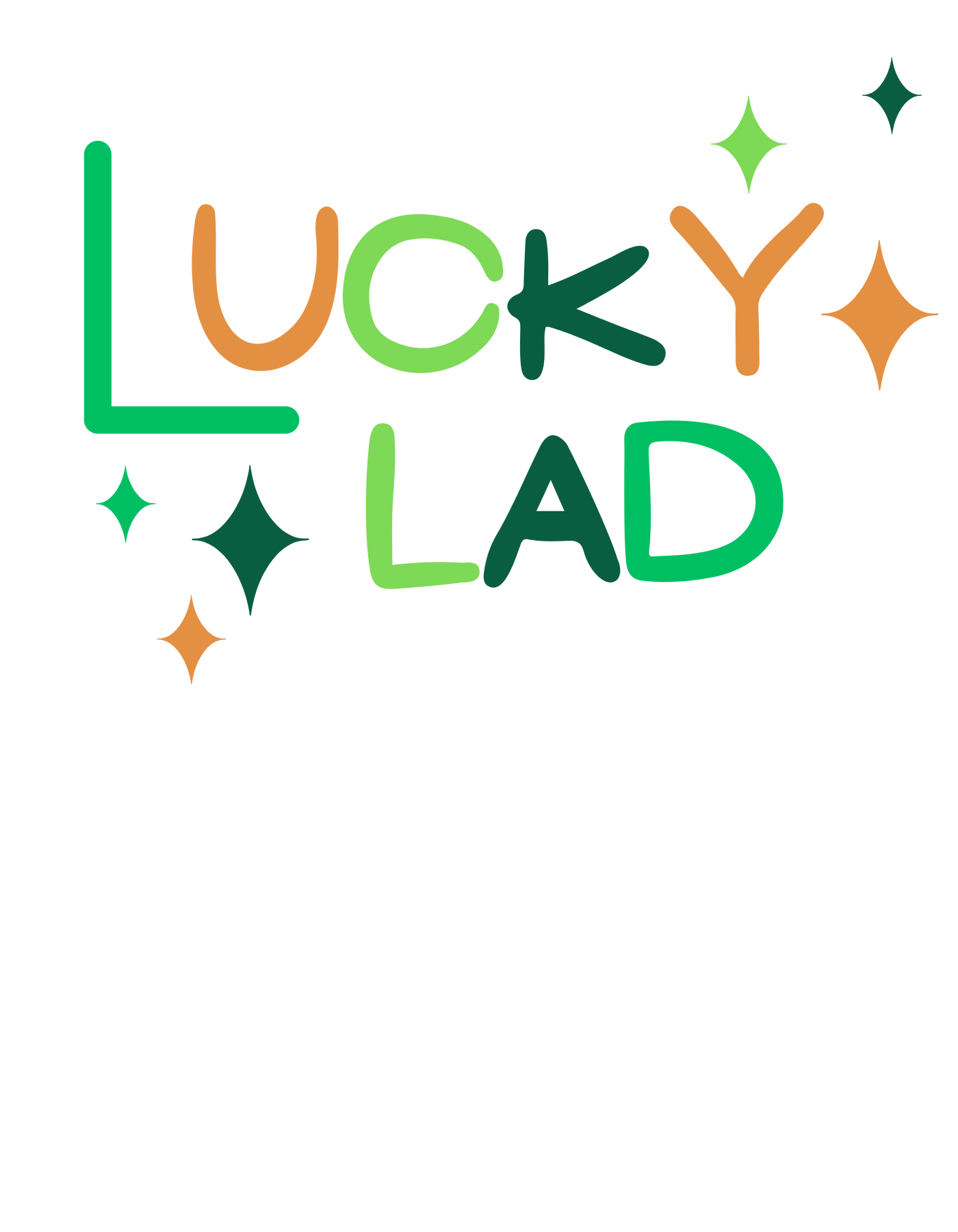 Lucky Lad Onesie: White infant bodysuit with green and orange text. Soft ring-spun cotton, lap shoulders for easy dressing, tear-away label. From Worlds Worst Tees.