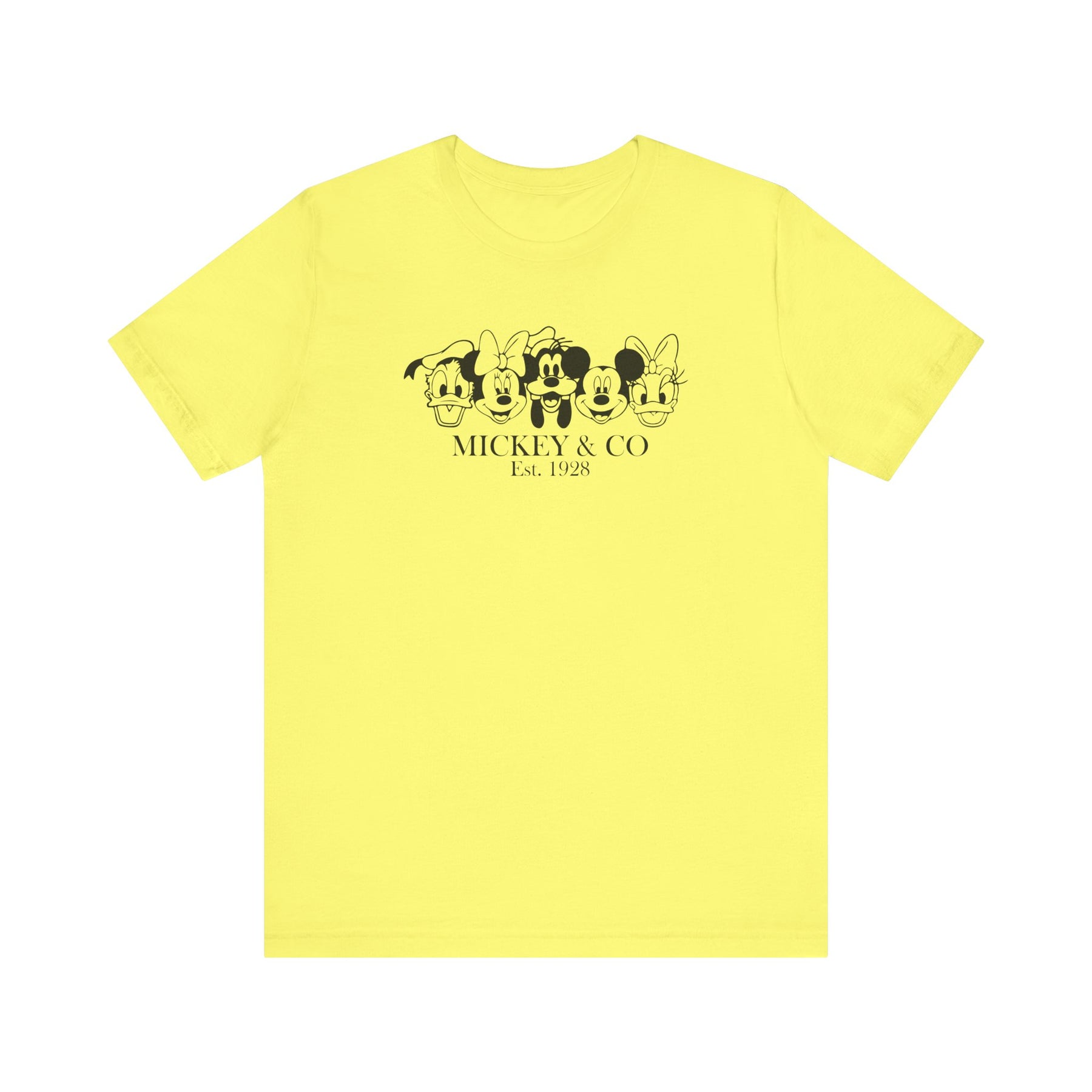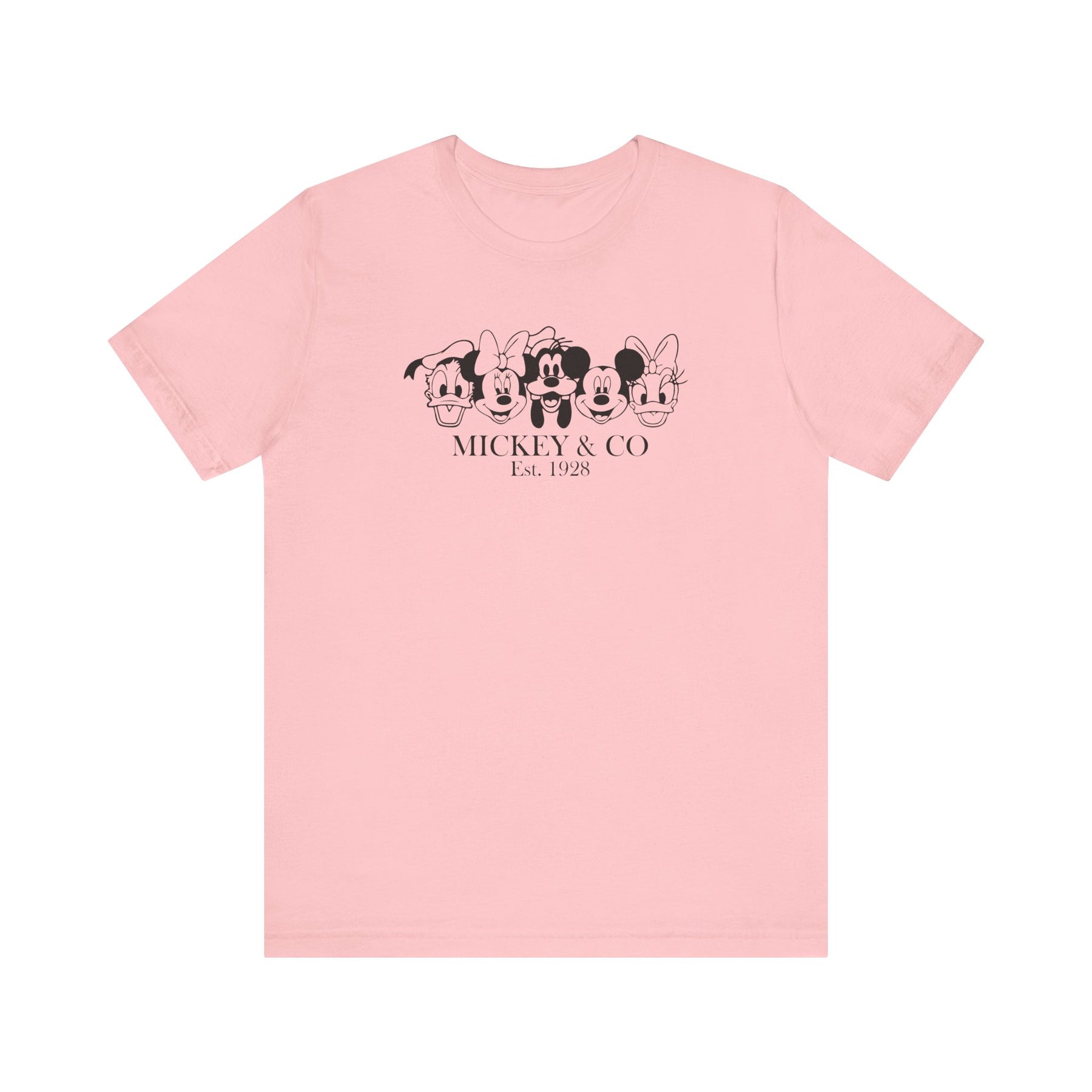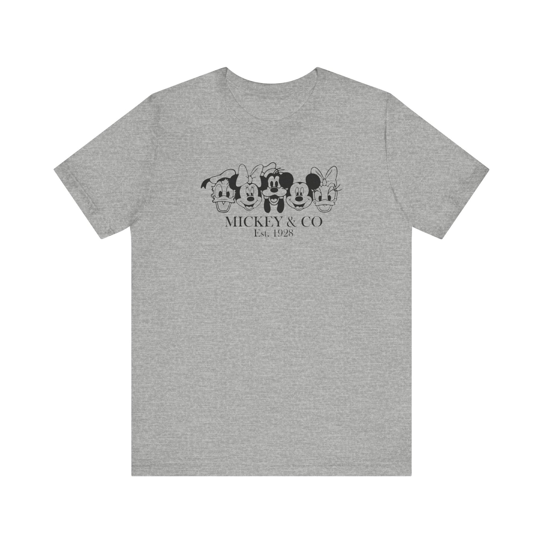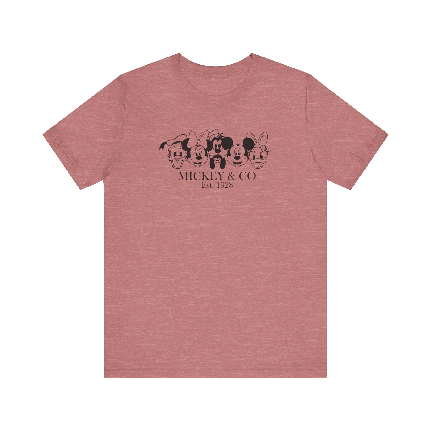 Mickey and CO Tee, a classic unisex jersey short sleeve shirt, featuring soft cotton, ribbed knit collar, and tapered shoulders for a comfortable, enduring fit.