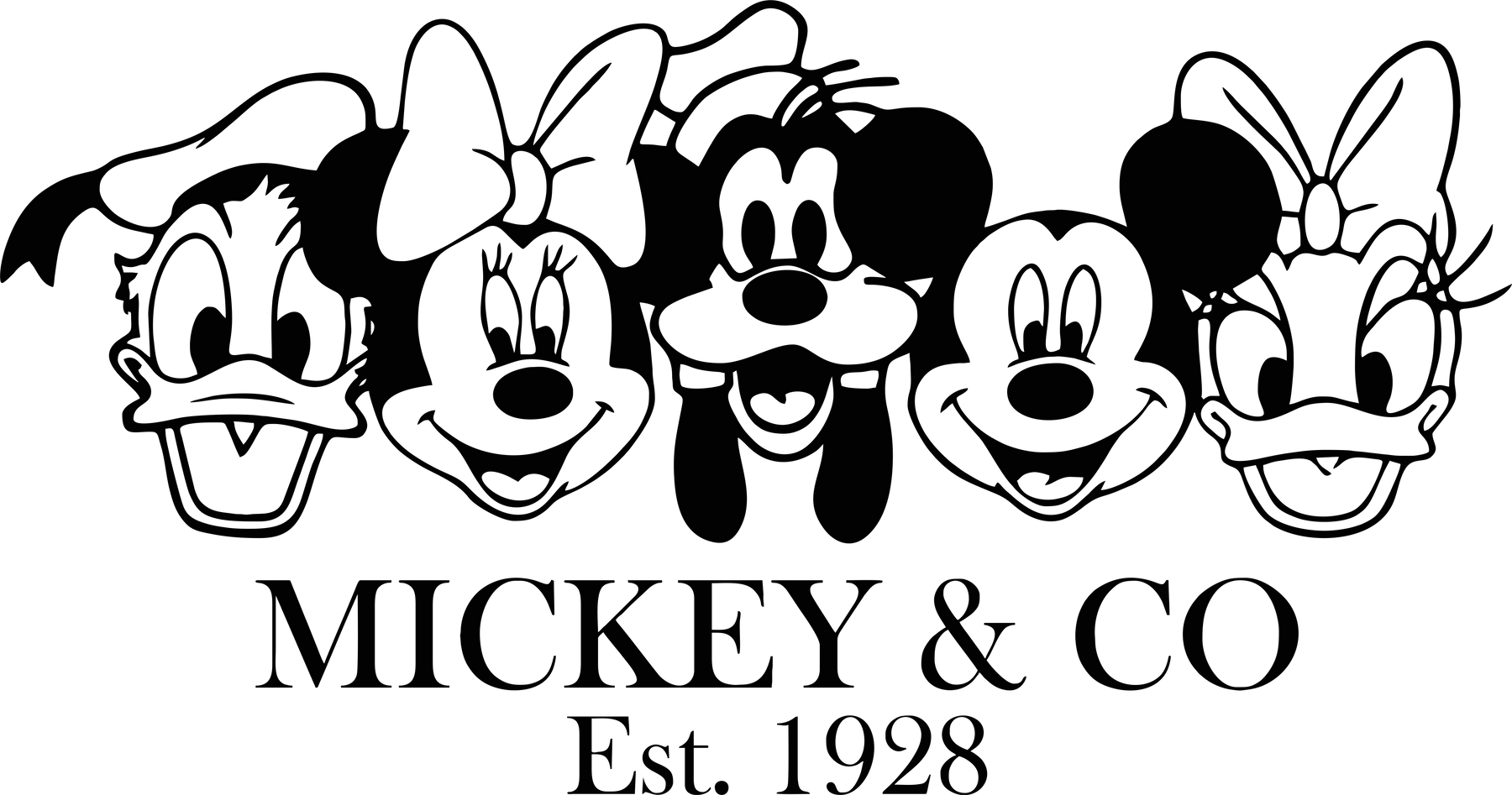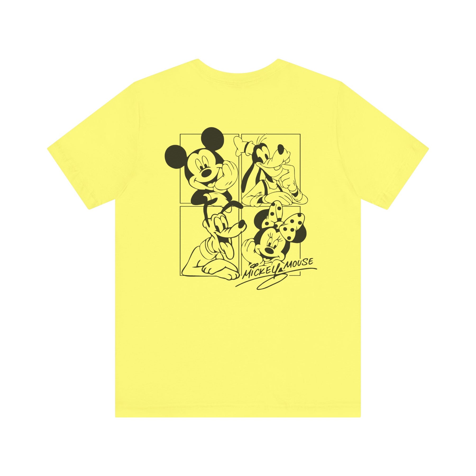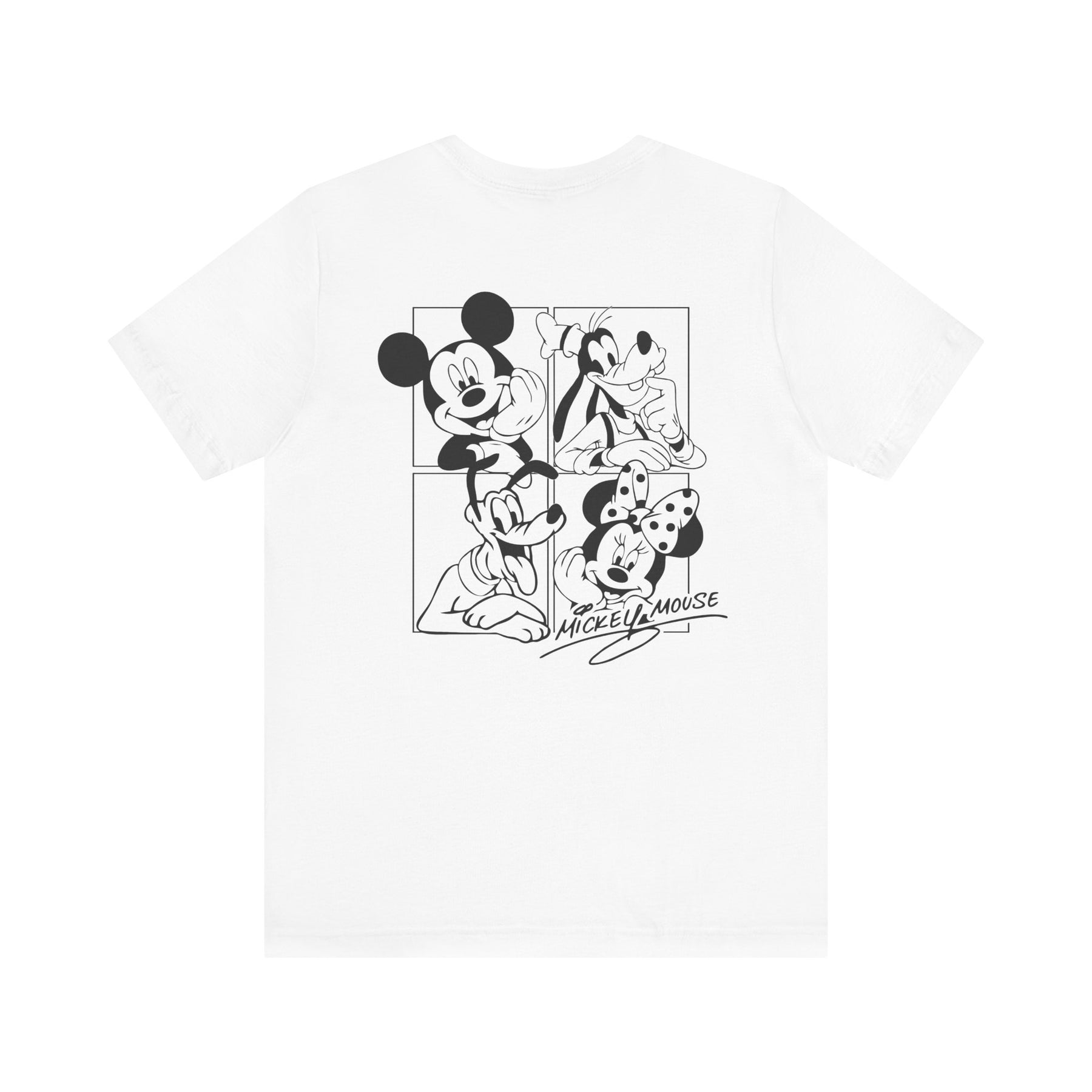Mickey and CO Tee, a classic unisex short sleeve t-shirt made of soft cotton, features a crew neckline and ribbed knit collars for a comfortable, durable fit.