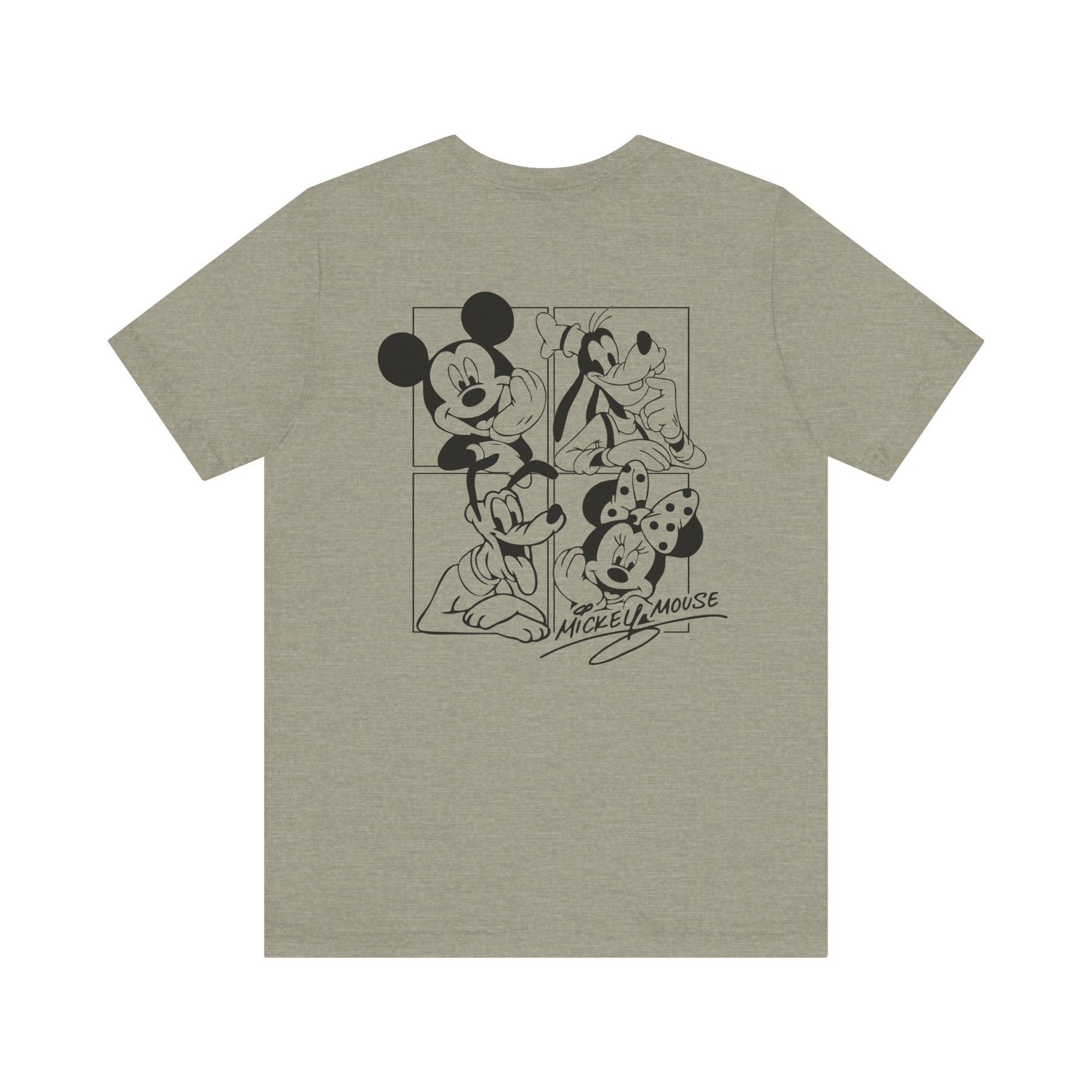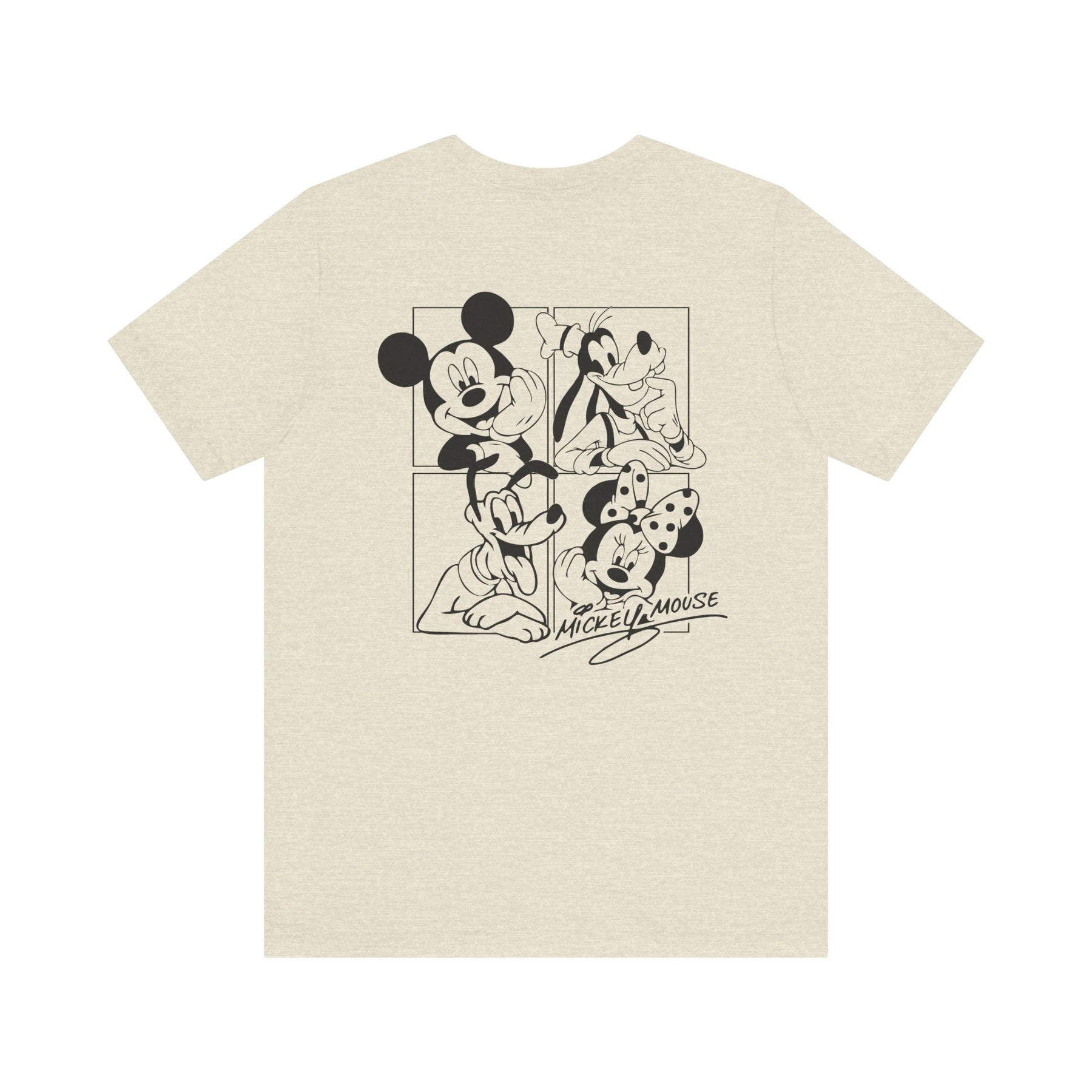 Mickey and CO Tee: A classic unisex jersey short sleeve t-shirt, featuring soft cotton fabric with ribbed knit collars and a crew neckline for a comfortable fit.