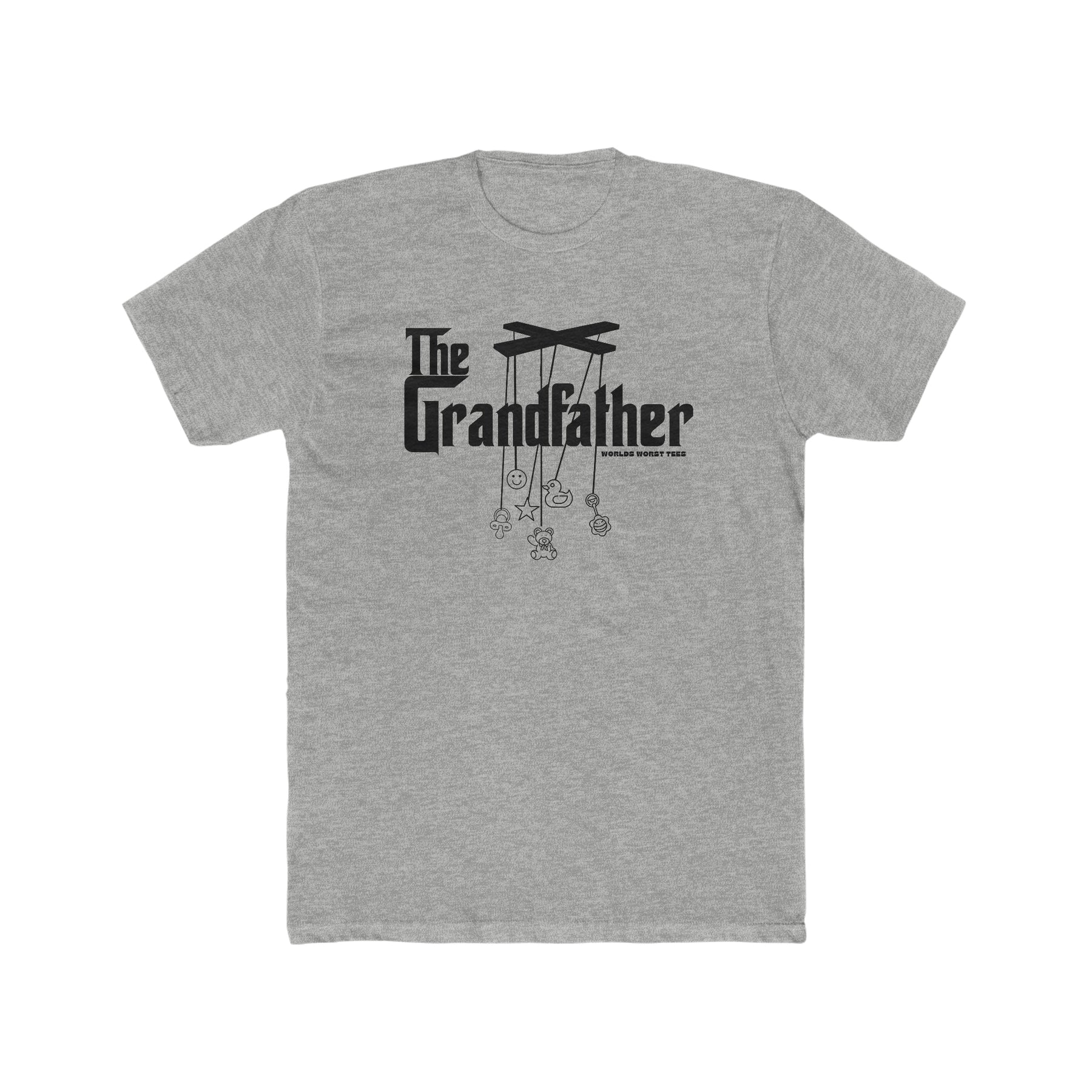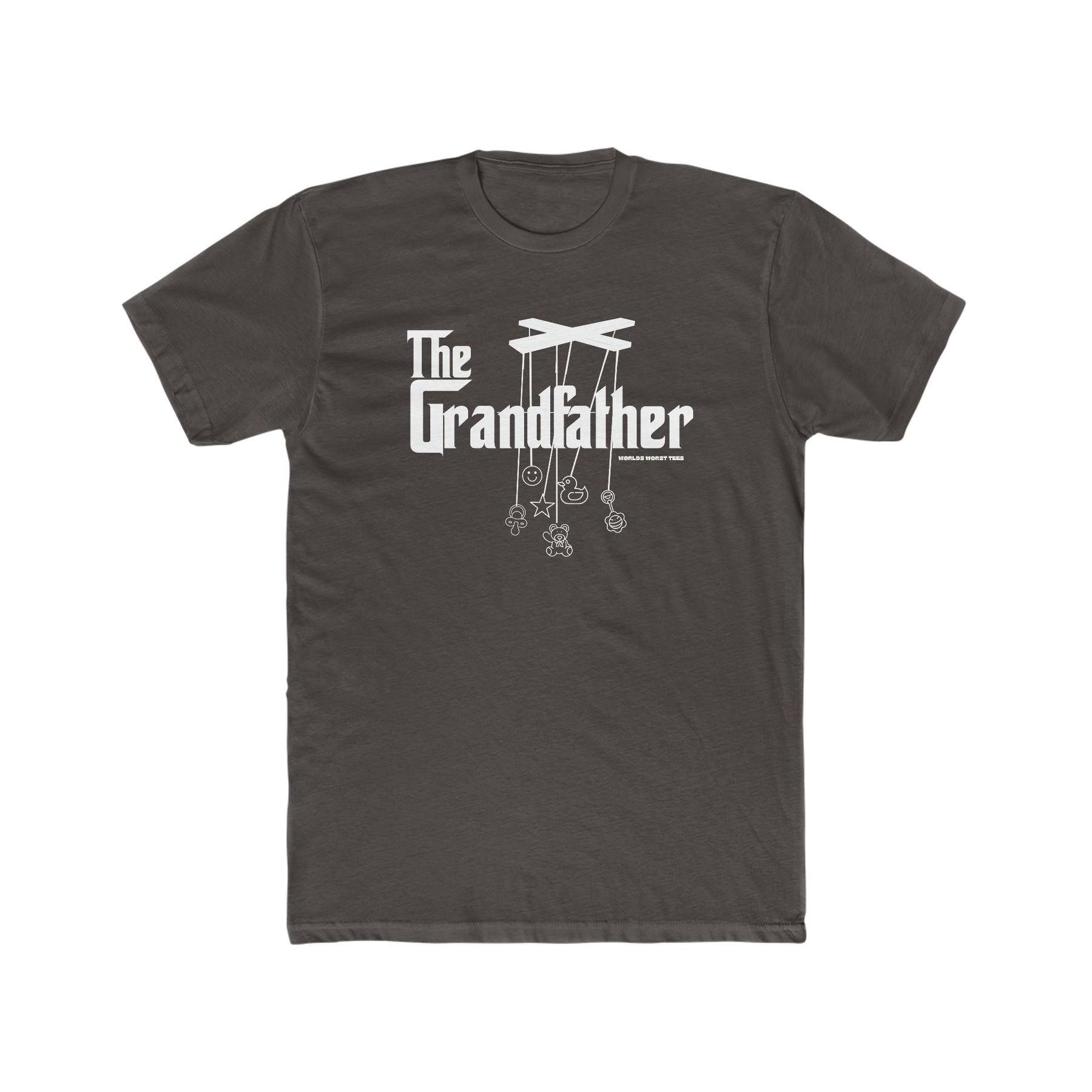 A relaxed fit Grandfather Tee in grey with white text. 100% ring-spun cotton, medium weight, durable double-needle stitching, and seamless design for comfort. From Worlds Worst Tees.