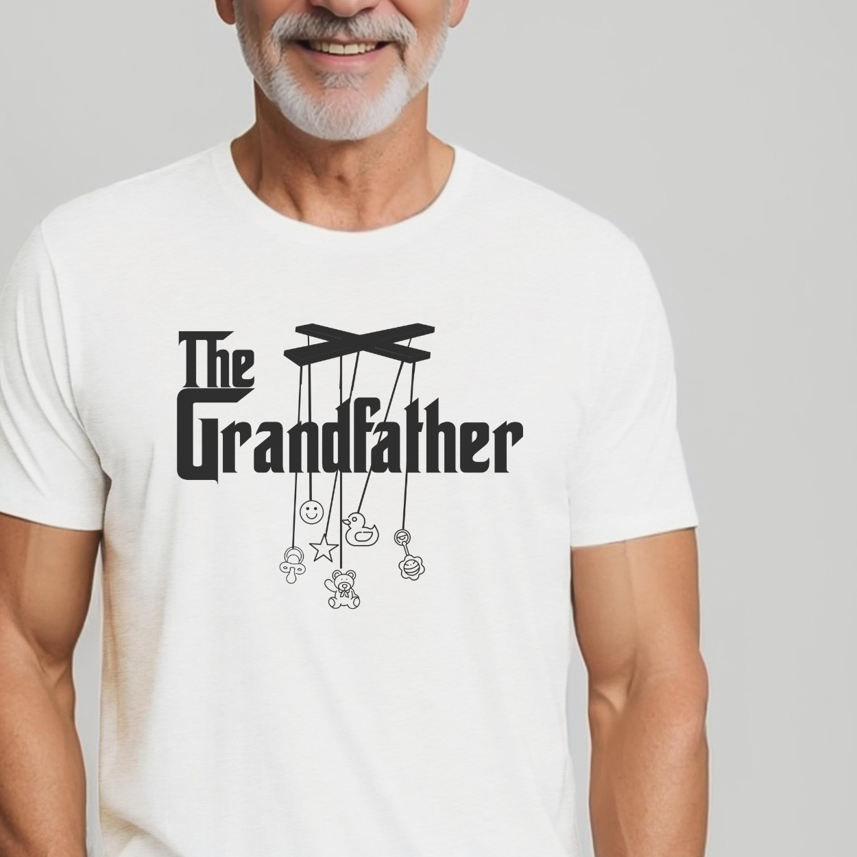 A relaxed fit Grandfather Tee in white, featuring black text. Made of 100% ring-spun cotton, with double-needle stitching for durability and a seamless design for comfort. From Worlds Worst Tees.