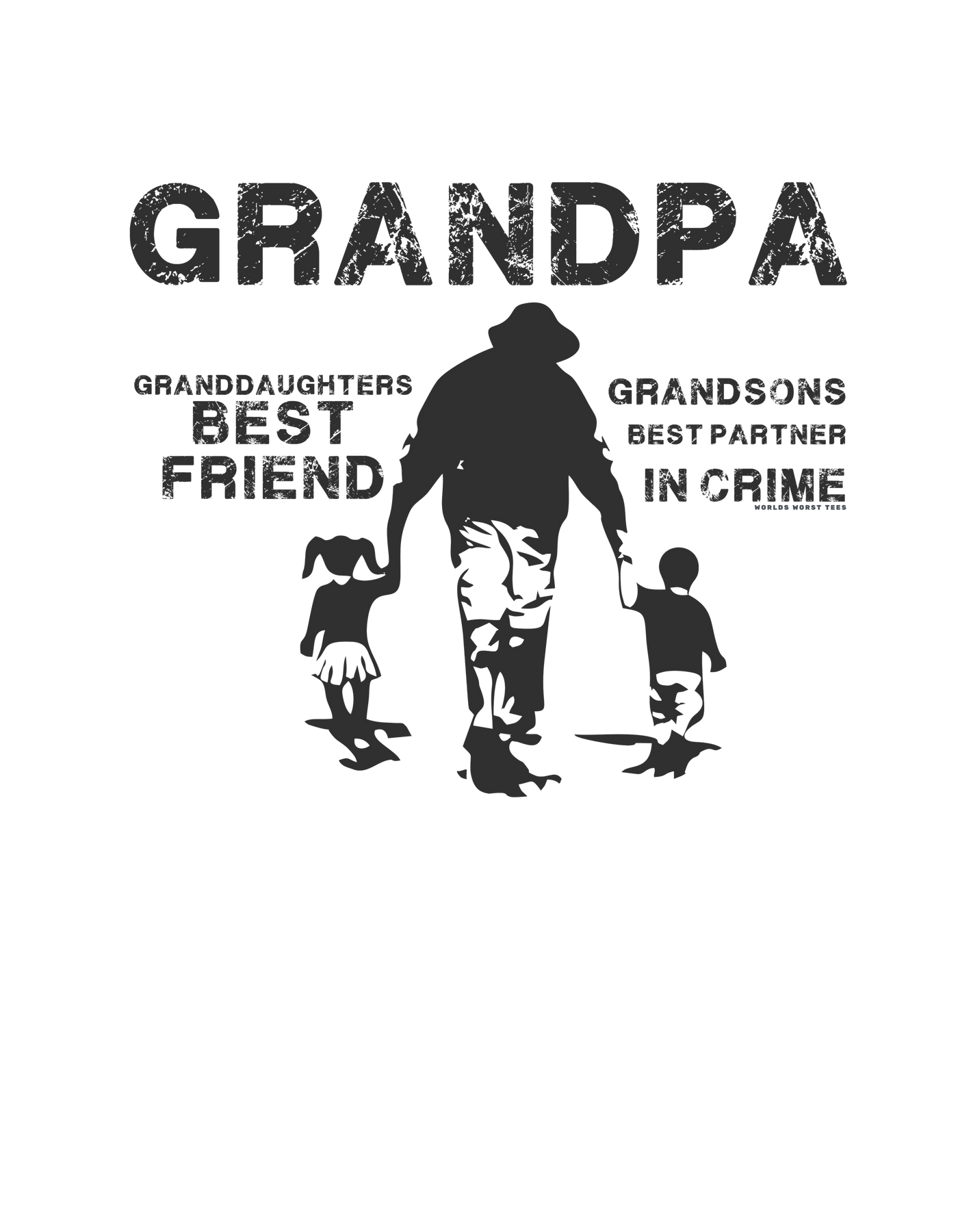 A black and white graphic design featuring a man and children holding hands, ideal for a Grandpa and Grandkids Hoodie at Worlds Worst Tees. Unisex heavy blend fabric with kangaroo pocket, cotton-polyester mix, and classic fit.