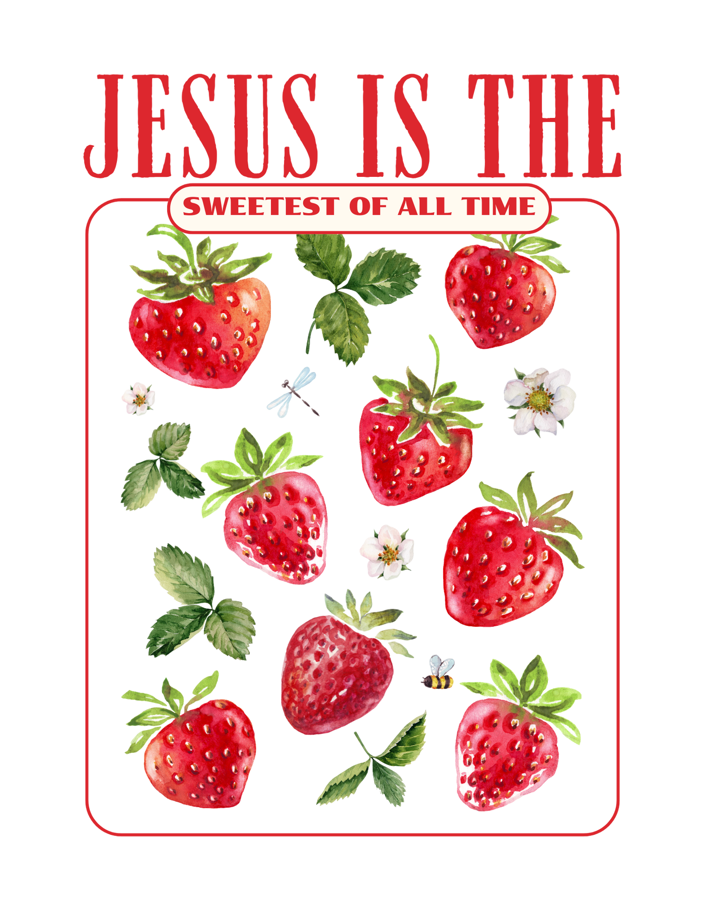 Jesus is the Sweetest Tee; oversized, drop-shoulder design with vintage aesthetic, featuring reinforced stitching and ribbed crew neck for ultimate comfort.