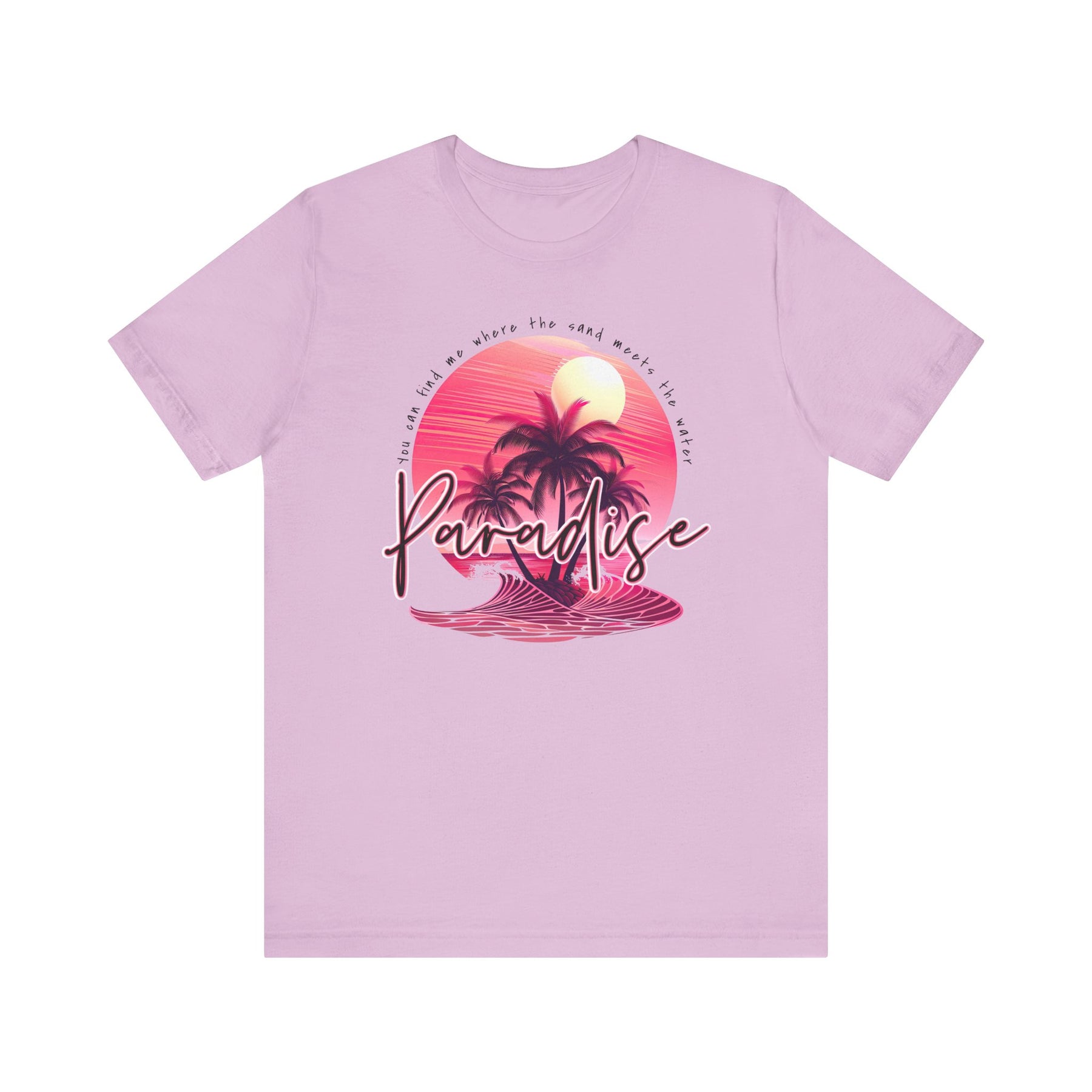 The Paradise Tee, a unisex jersey short sleeve shirt, features a crew neckline and ribbed knit collars, offering a comfortable and stylish fit.