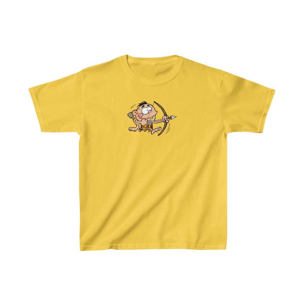 The kids heavy cotton tee is perfect for everyday use. The fabric is 100% cotton for solid colors. Polyester is included for heather-color variants. These fabrics are prime materials for printing. The shoulders have twill tape for improved durability. The collar is curl resistant due to ribbed knitting. There are no seams along the sides.