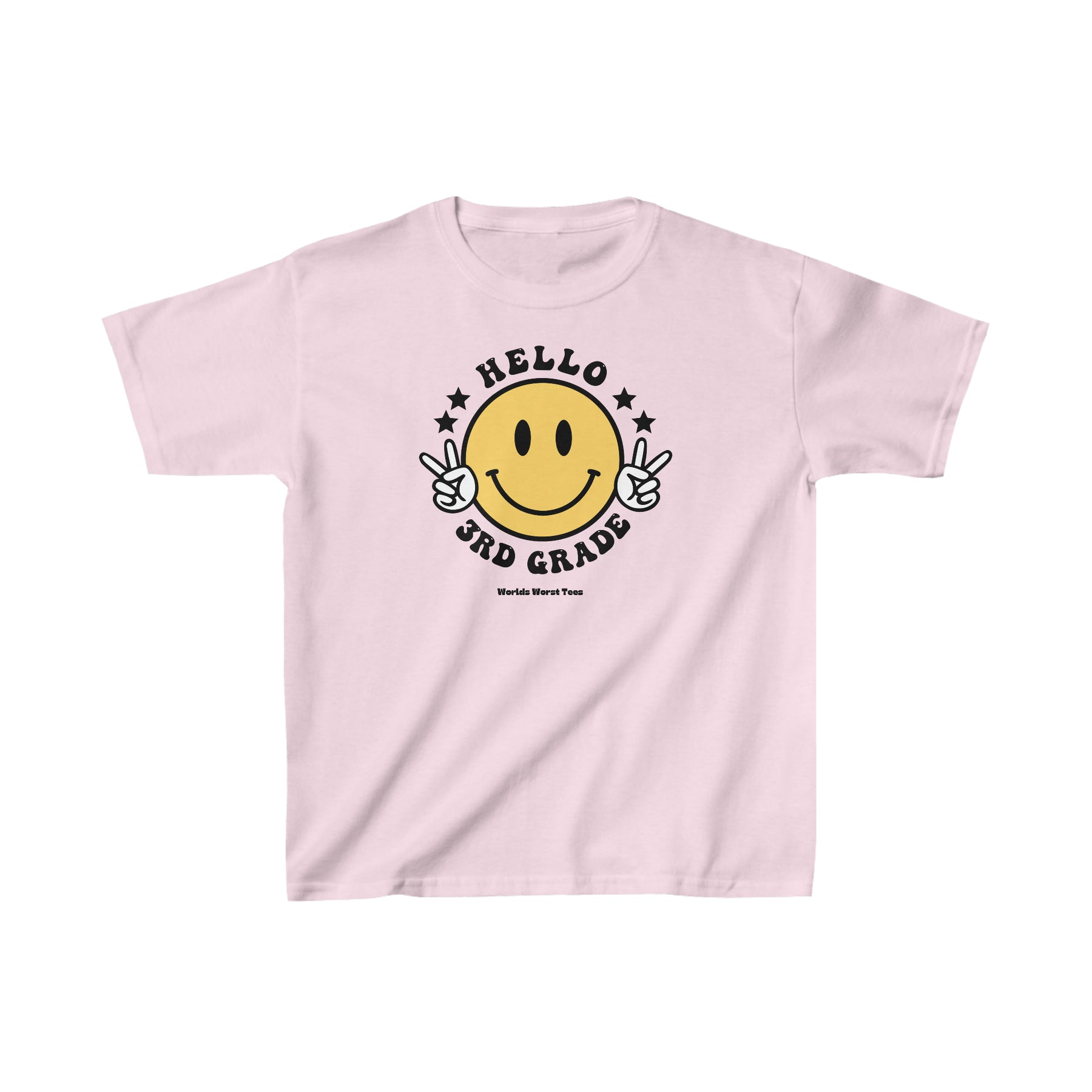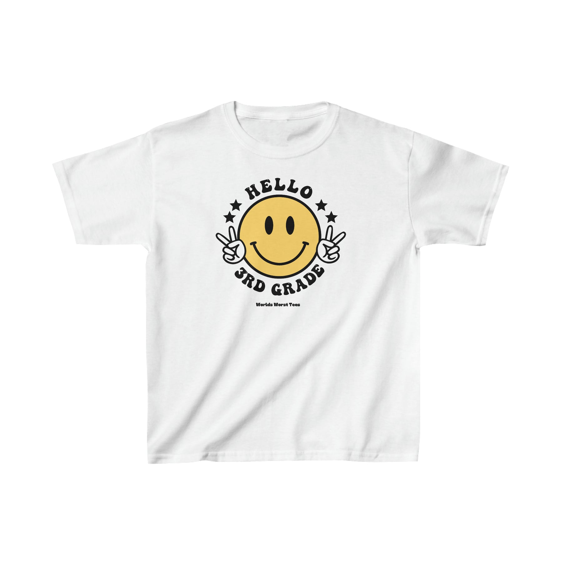 The kids heavy cotton tee is perfect for everyday use. The fabric is 100% cotton for solid colors. Polyester is included for heather-color variants. These fabrics are prime materials for printing. The shoulders have twill tape for improved durability. The collar is curl resistant due to ribbed knitting. There are no seams along the sides.