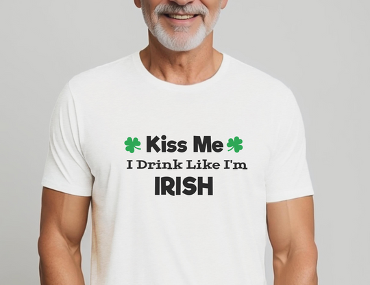 A classic unisex ultra cotton tee with a humorous Kiss Me I Drink Like I'm Irish design. Quality construction, ribbed collar, sustainably sourced materials. Sizes S-5XL.