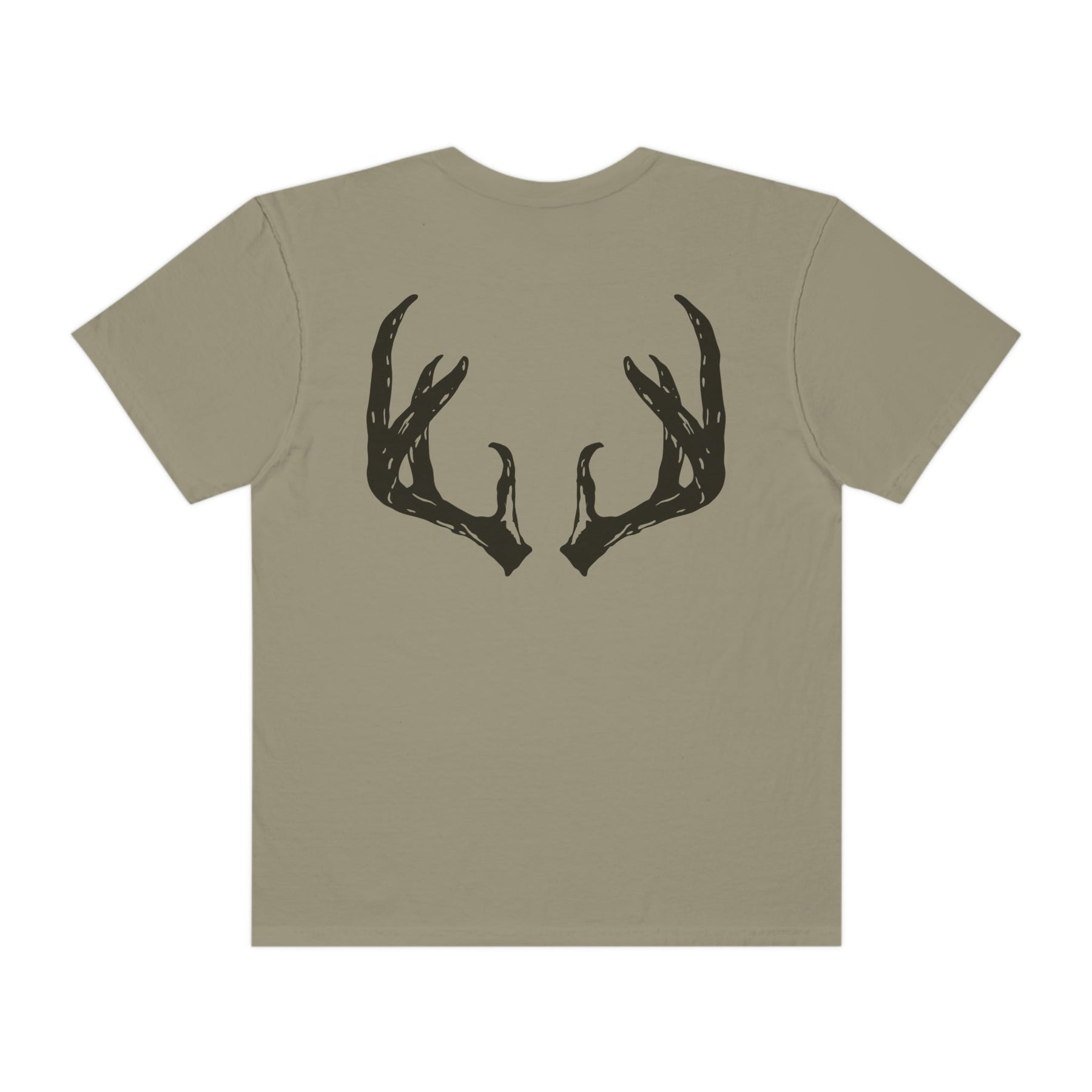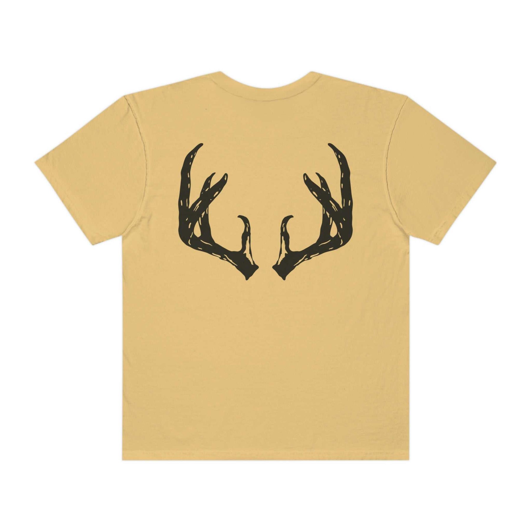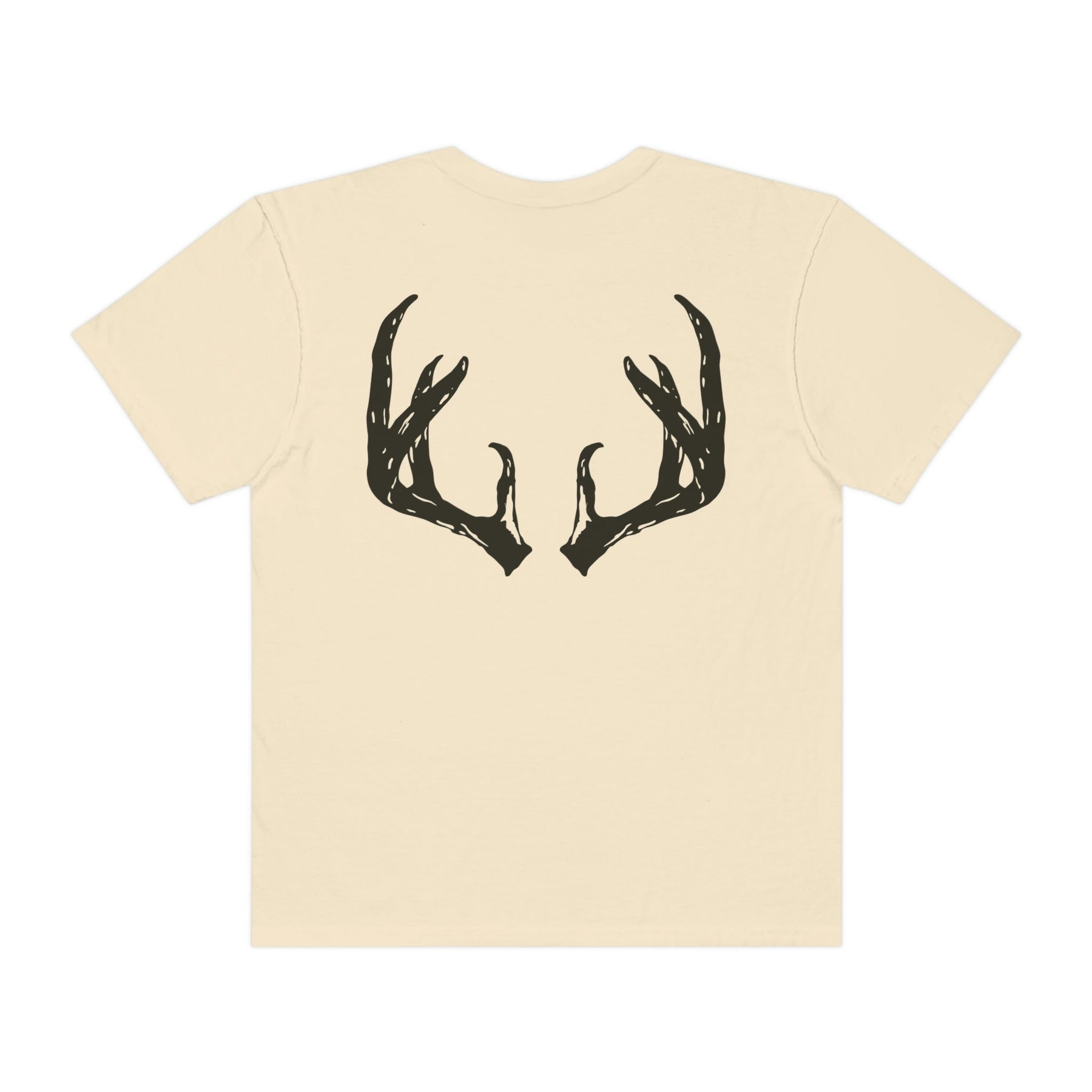 A relaxed fit Antler Tee, crafted from 100% ring-spun cotton for ultimate comfort. Garment-dyed with double-needle stitching, this tee offers durability and coziness for daily wear.