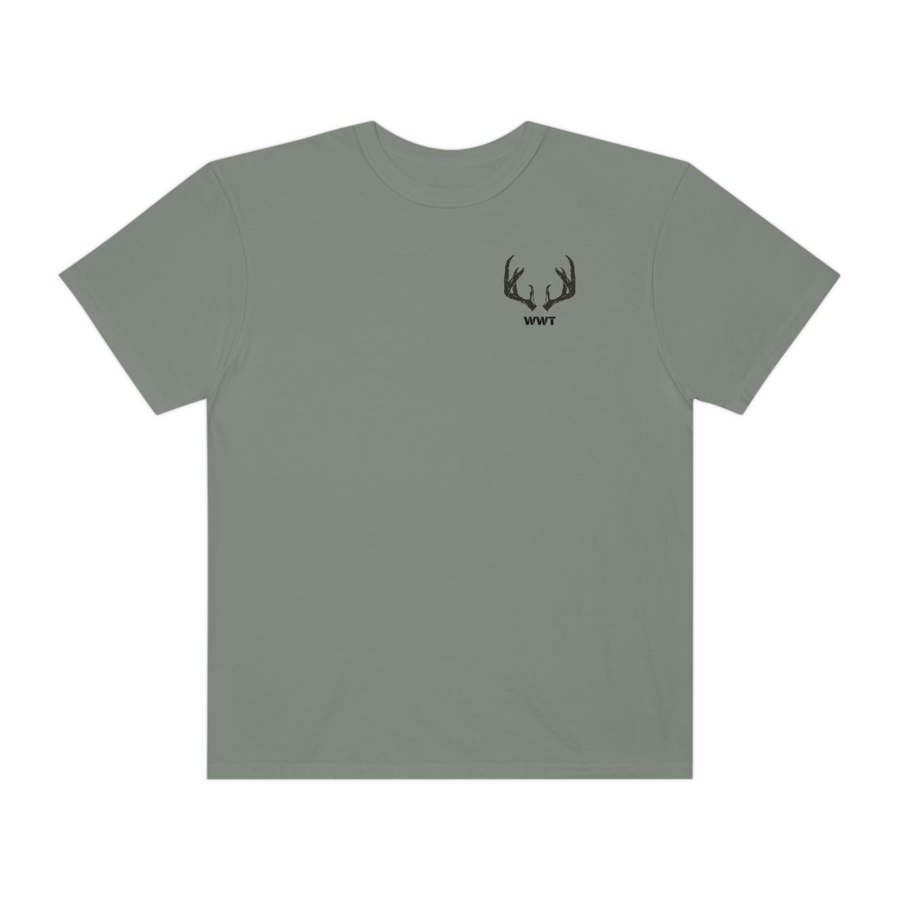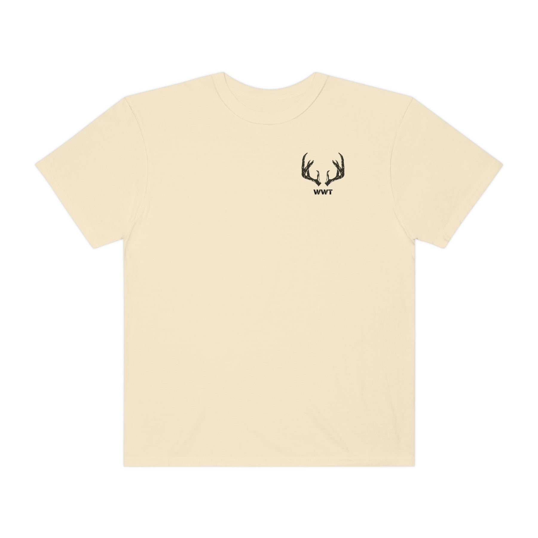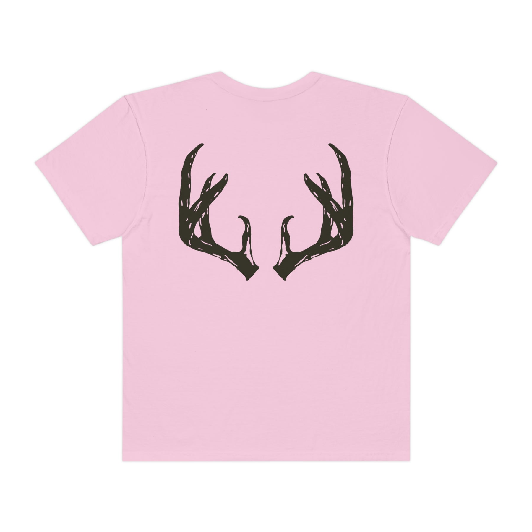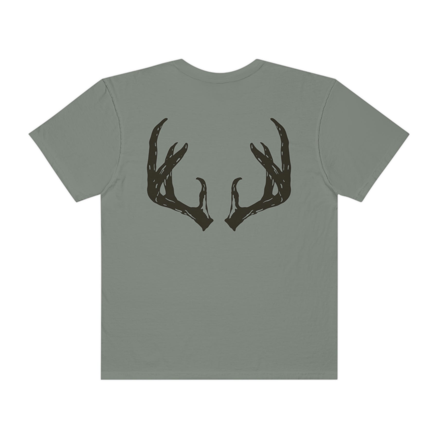 A relaxed fit Antler Tee, crafted from 100% ring-spun cotton for ultimate comfort. Garment-dyed with double-needle stitching, this tee offers durability and coziness for daily wear.
