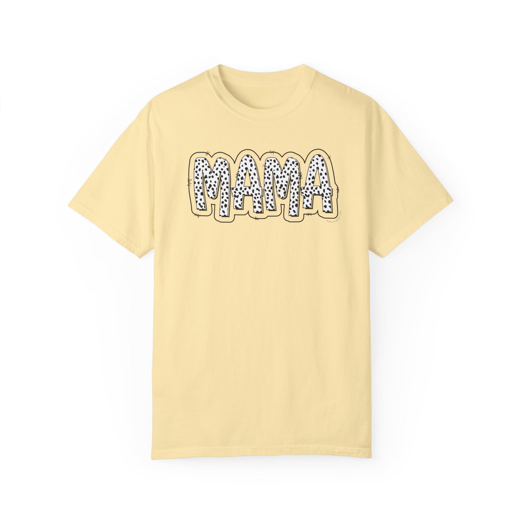 A relaxed fit Mama Print Tee, 100% ring-spun cotton, garment-dyed for coziness. Double-needle stitching for durability, no side-seams for shape retention. Ideal for daily wear.