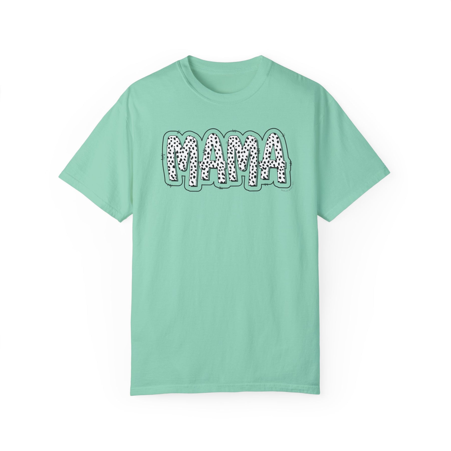 A green t-shirt featuring a bold Mama print, made of 100% ring-spun cotton. Garment-dyed for extra coziness, with a relaxed fit and durable double-needle stitching. From Worlds Worst Tees.