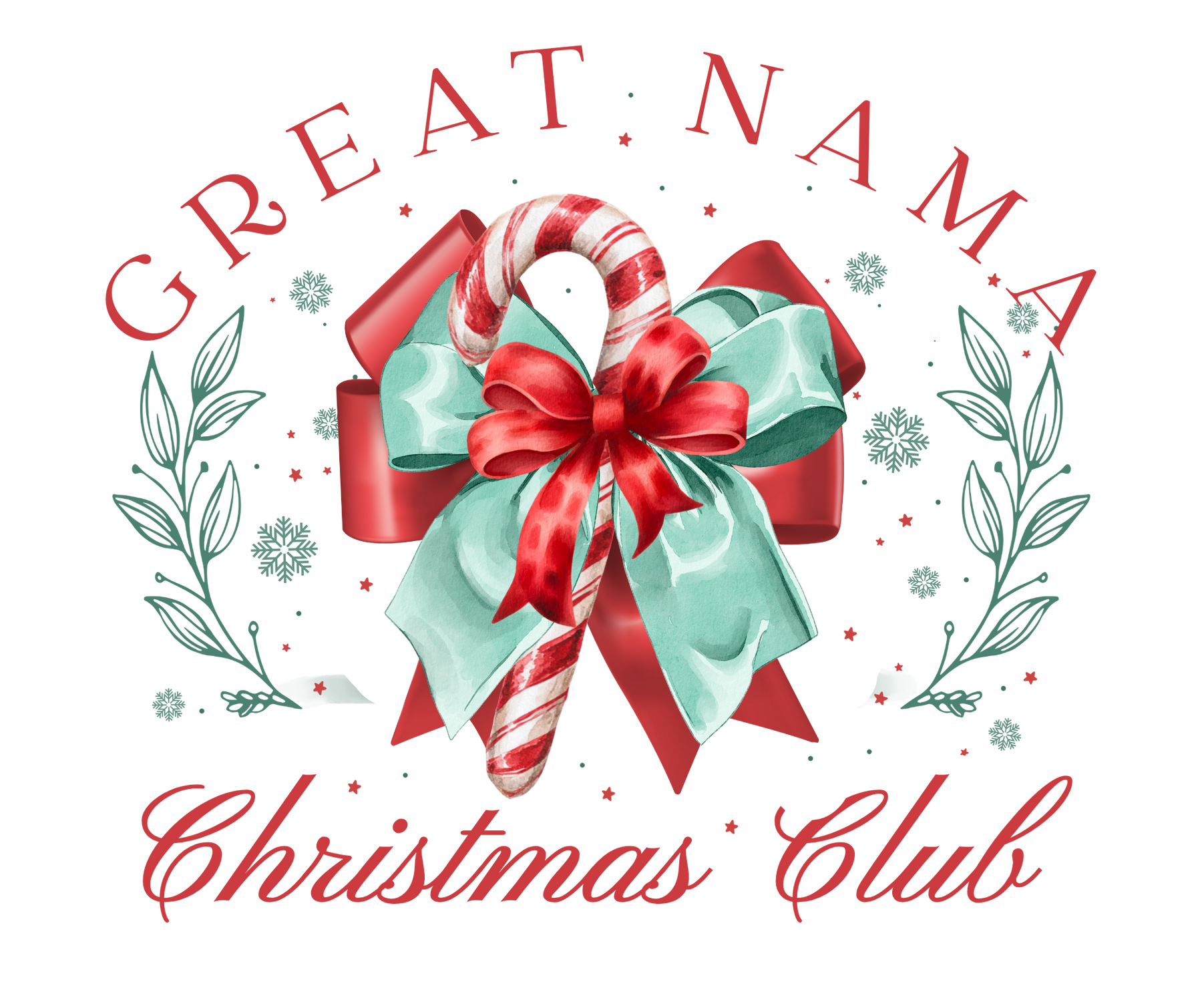 Great Nama Christmas Club Hoodie with festive candy cane and bow design, featuring a front pocket and drawstring hood, perfect for cozy, stylish winter wear.