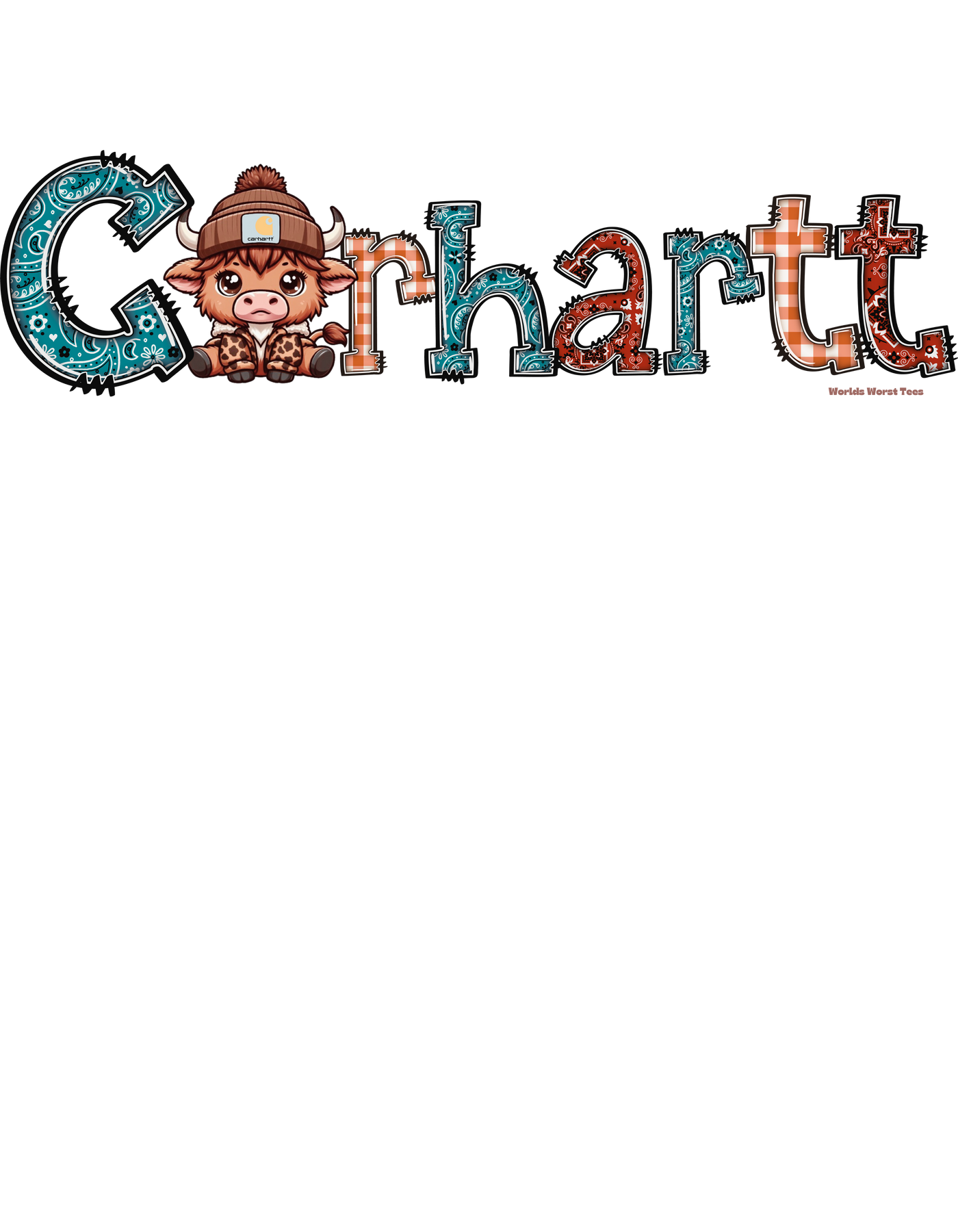 A comfortable unisex Cowhartt Crew sweatshirt with a cartoon cow design. Made of 50% cotton, 50% polyester, ribbed knit collar, and no itchy side seams. Medium-heavy fabric, loose fit, true to size.