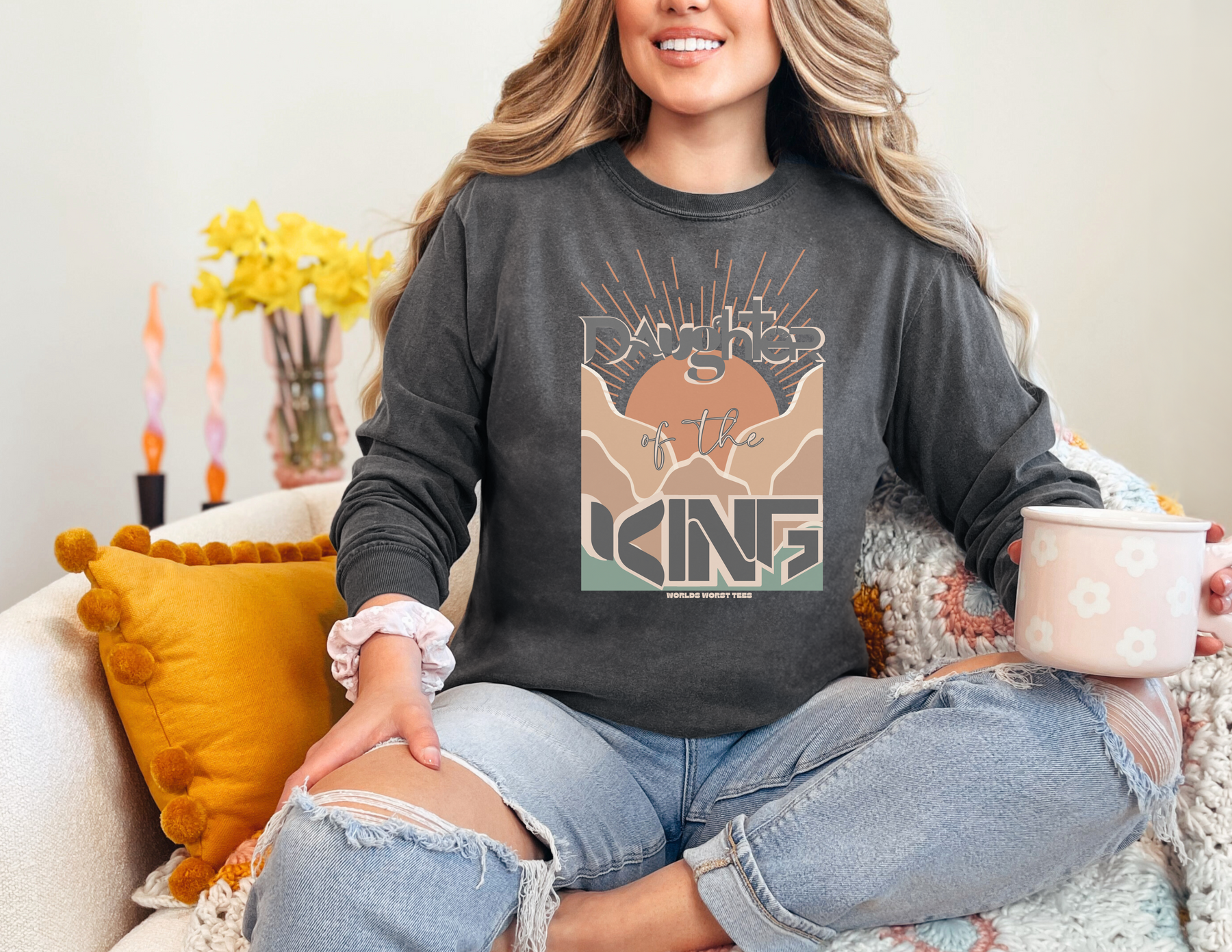 Daughter of the King Crew sweatshirt: Unisex garment-dyed top with relaxed fit, ring-spun cotton blend, and rolled-forward shoulder. Luxurious comfort in medium-heavy fabric.