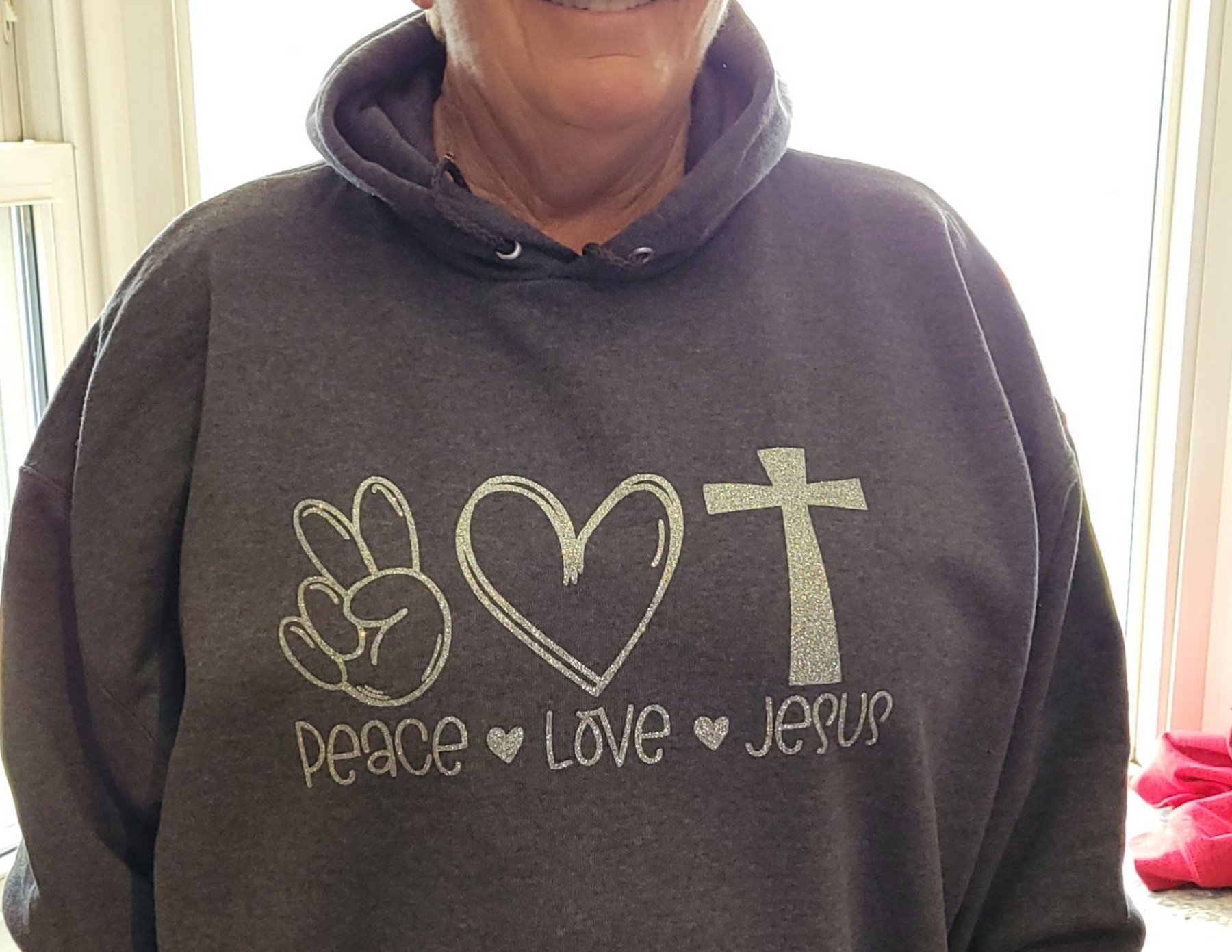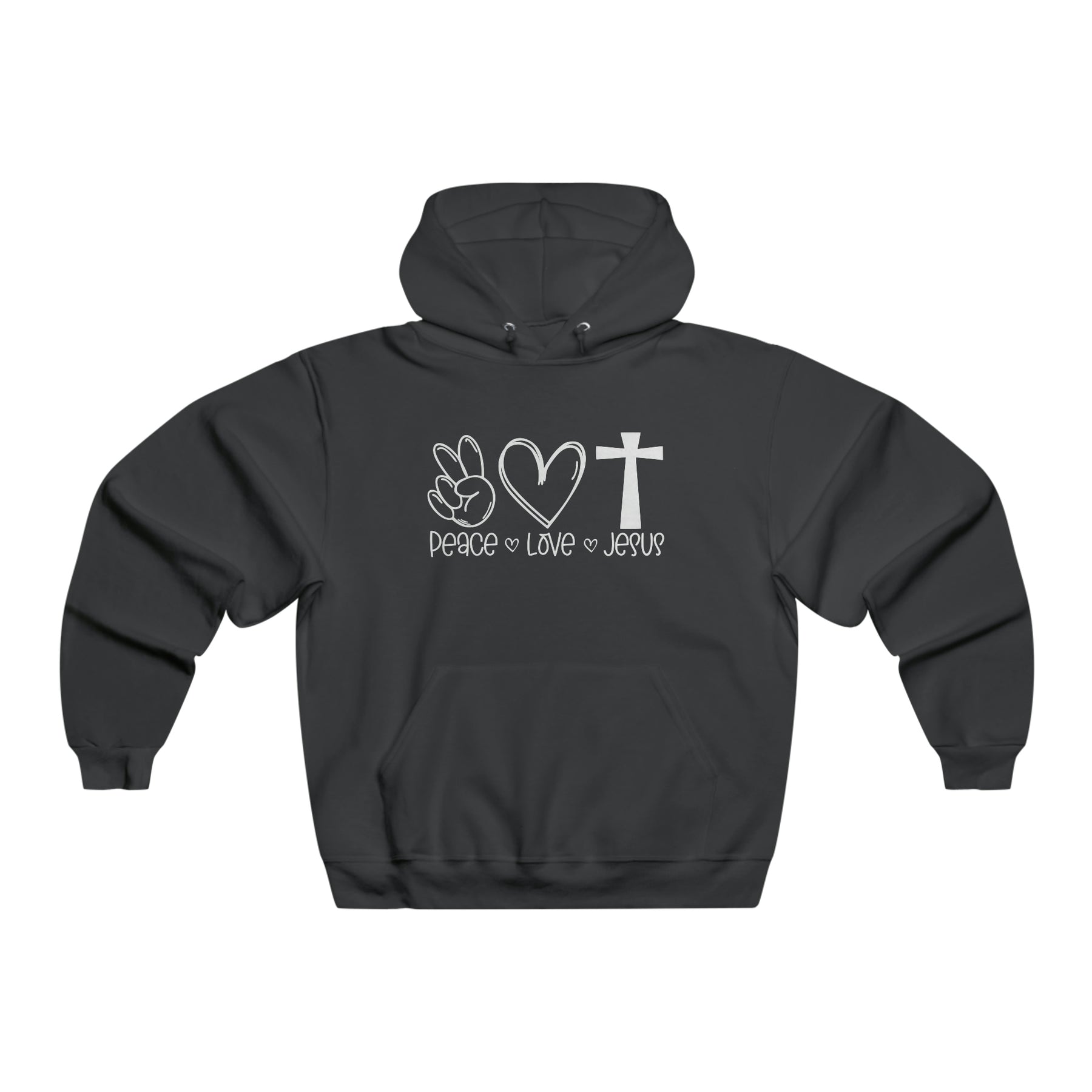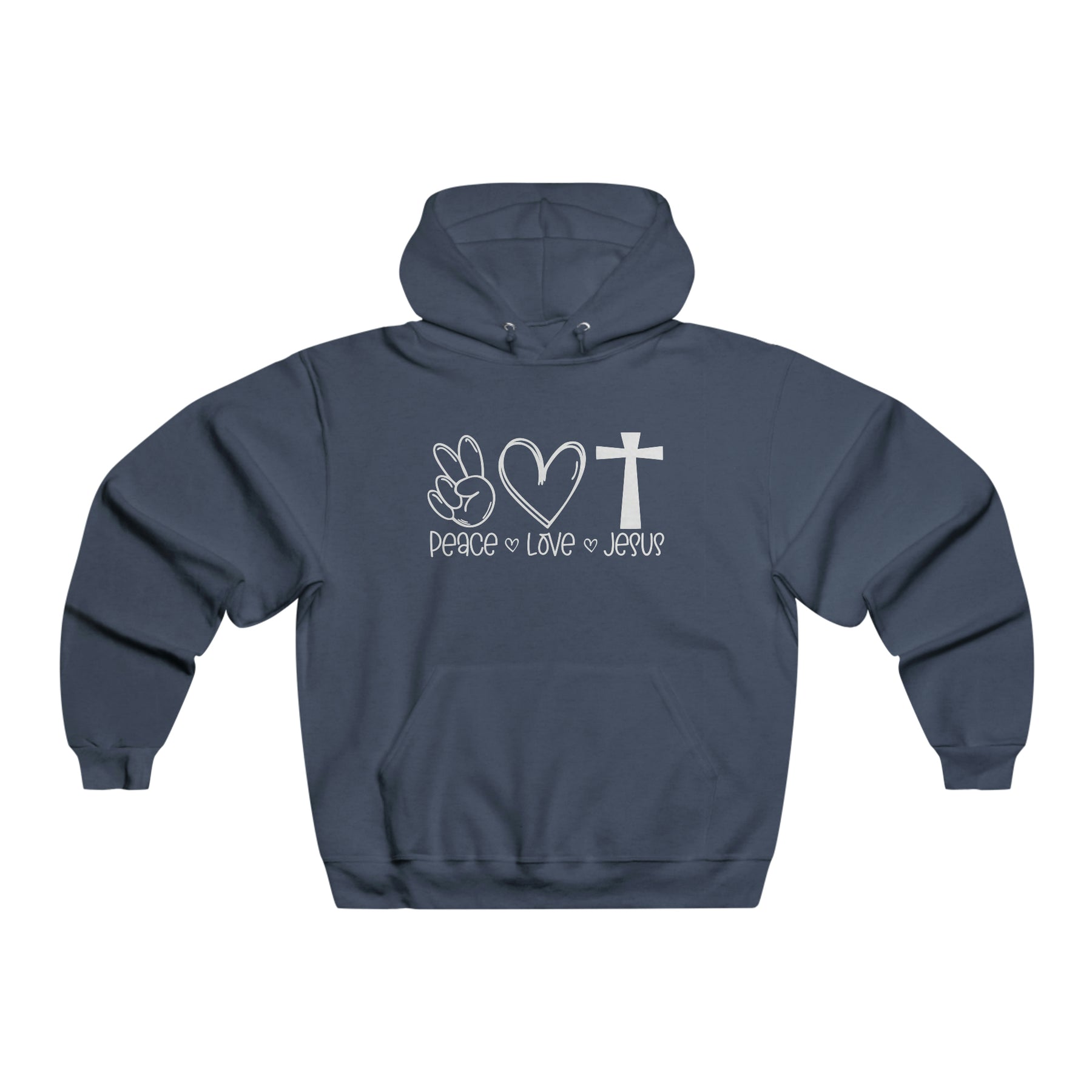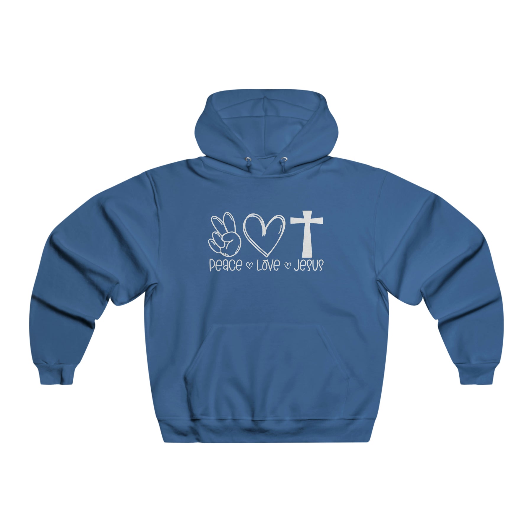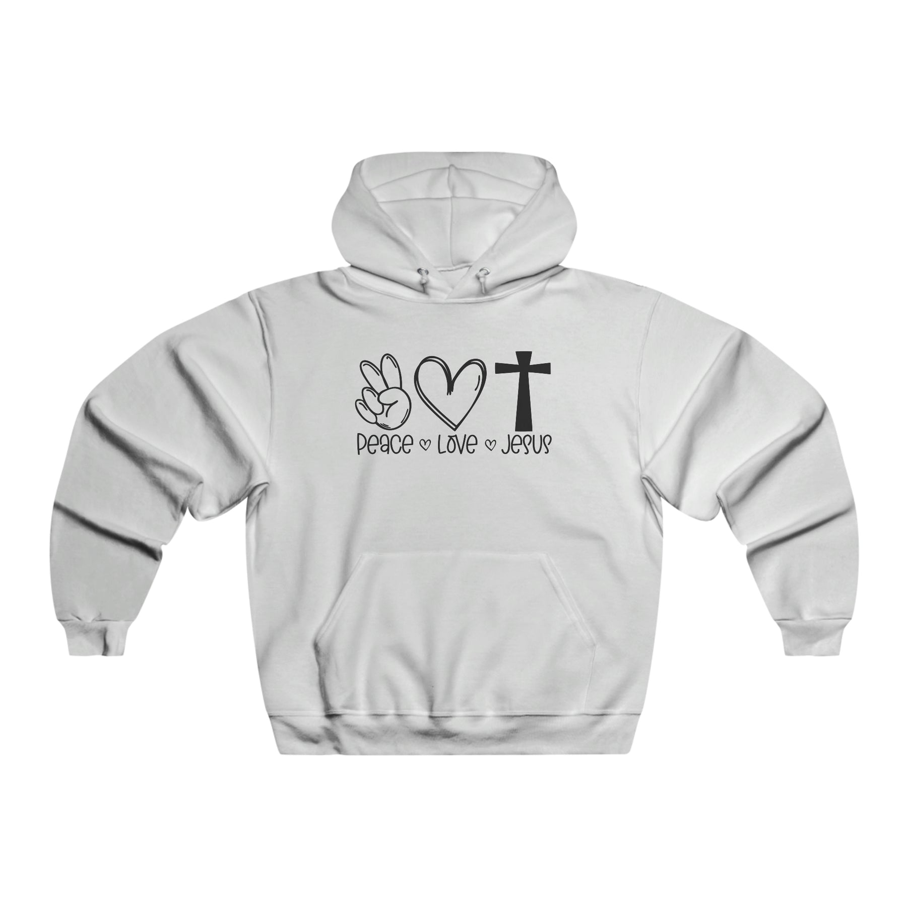 A unisex heavy blend Peace Love and Jesus Hoodie is relaxation itself. The material is a thick blend of cotton and polyester. This makes for a plush, soft feel alongside warmth. It's also a great surface for printing. There are no side seams. A spacious kangaroo pocket hangs in front. The hood's drawstring is the same color as the base sweater.