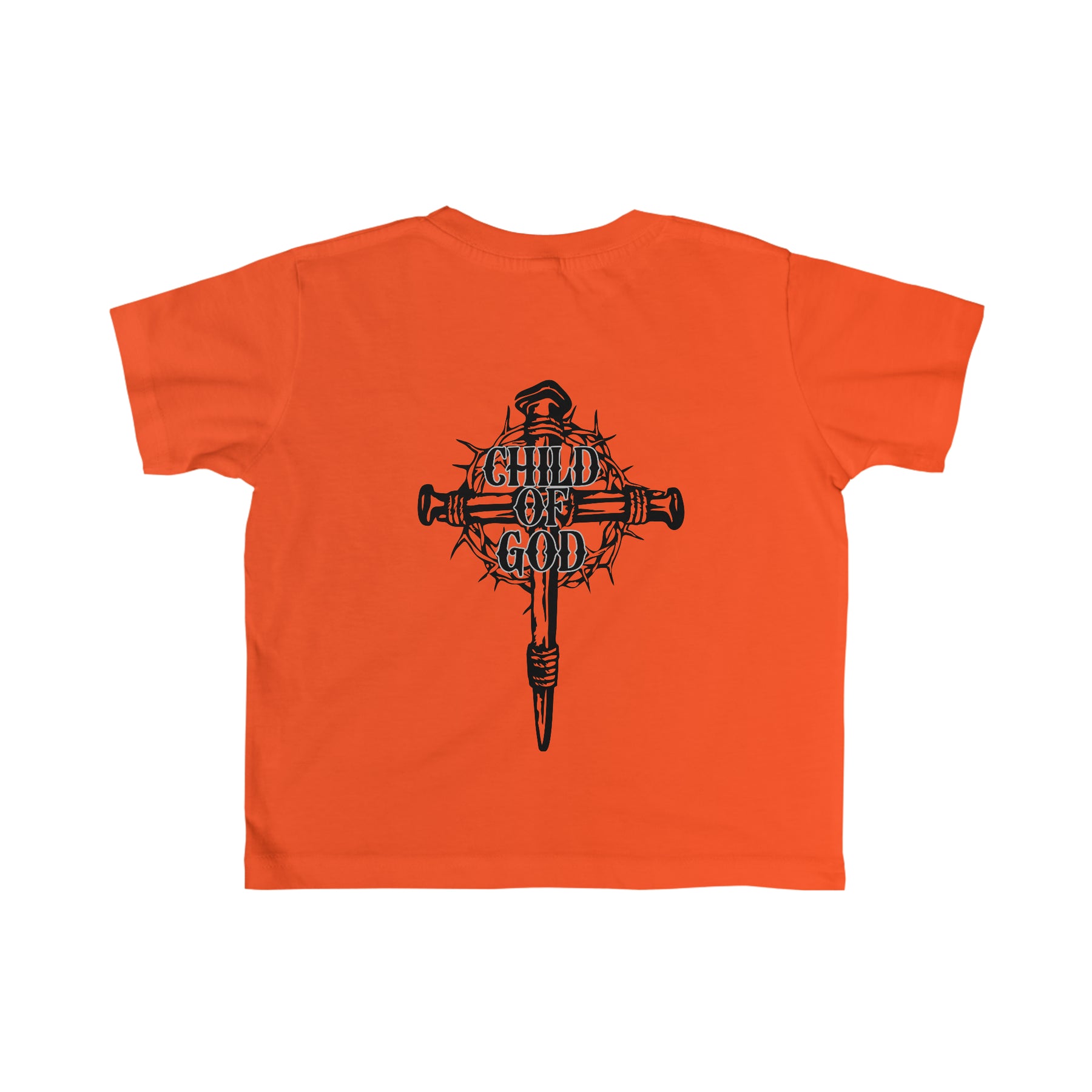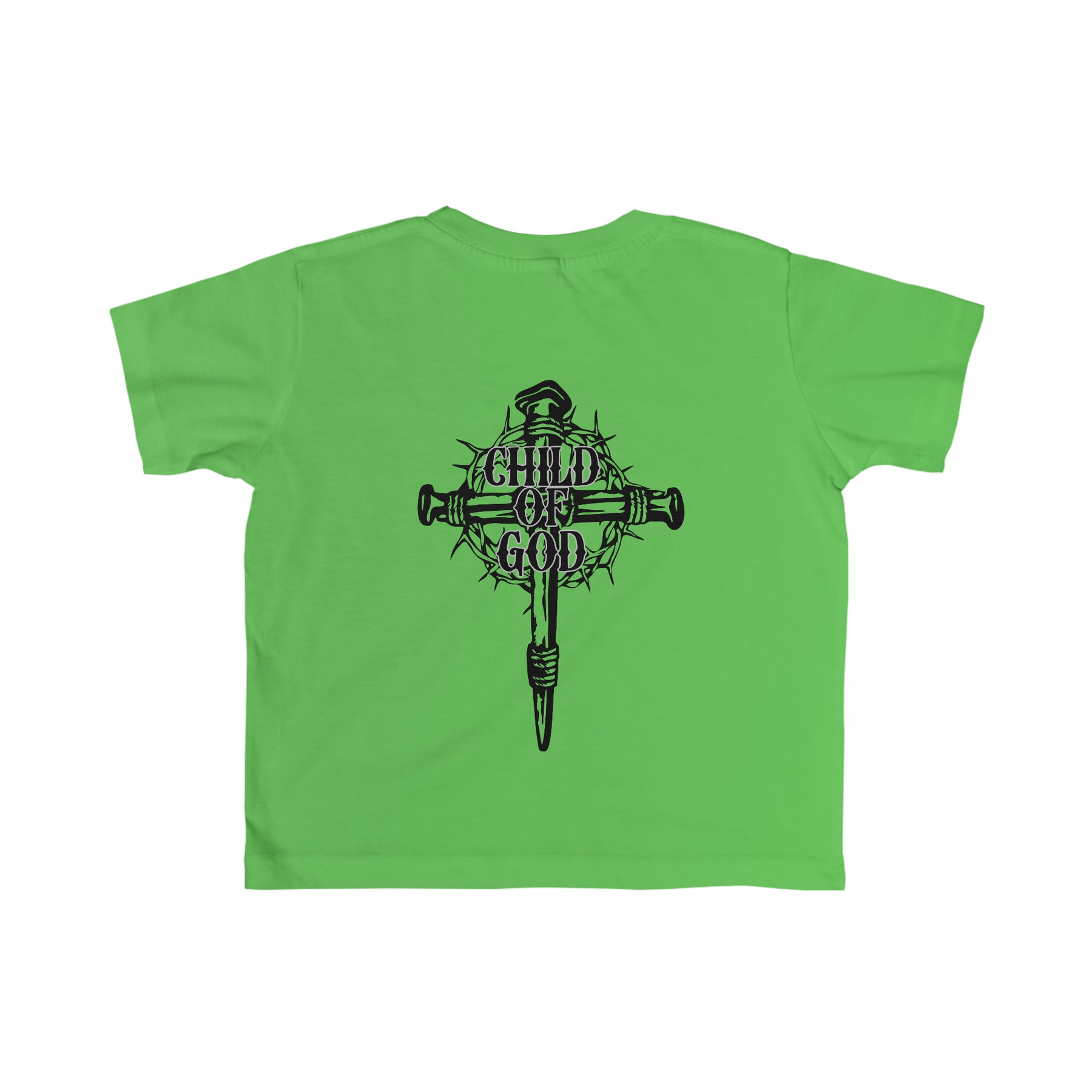 Child of God Tee is a tee with softness that is perfect for a toddler's sensitive skin. With a durable, high-quality print, it's a perfect fit for the first ventures.