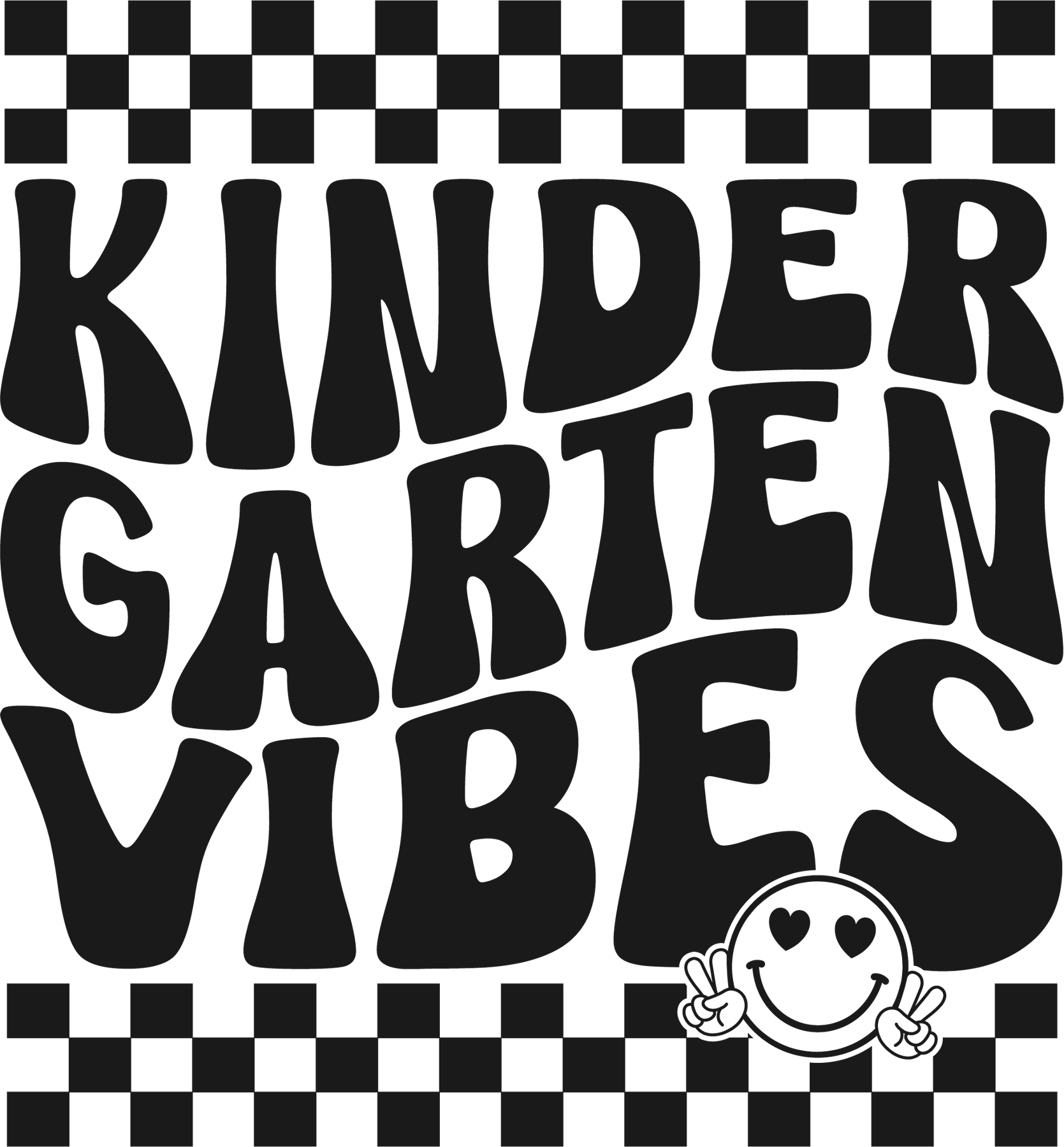 A Kindergarten Vibes Toddler Tee featuring black and white designs, perfect for sensitive skin. Made of 100% combed ringspun cotton, light fabric, classic fit, tear-away label, and true-to-size.