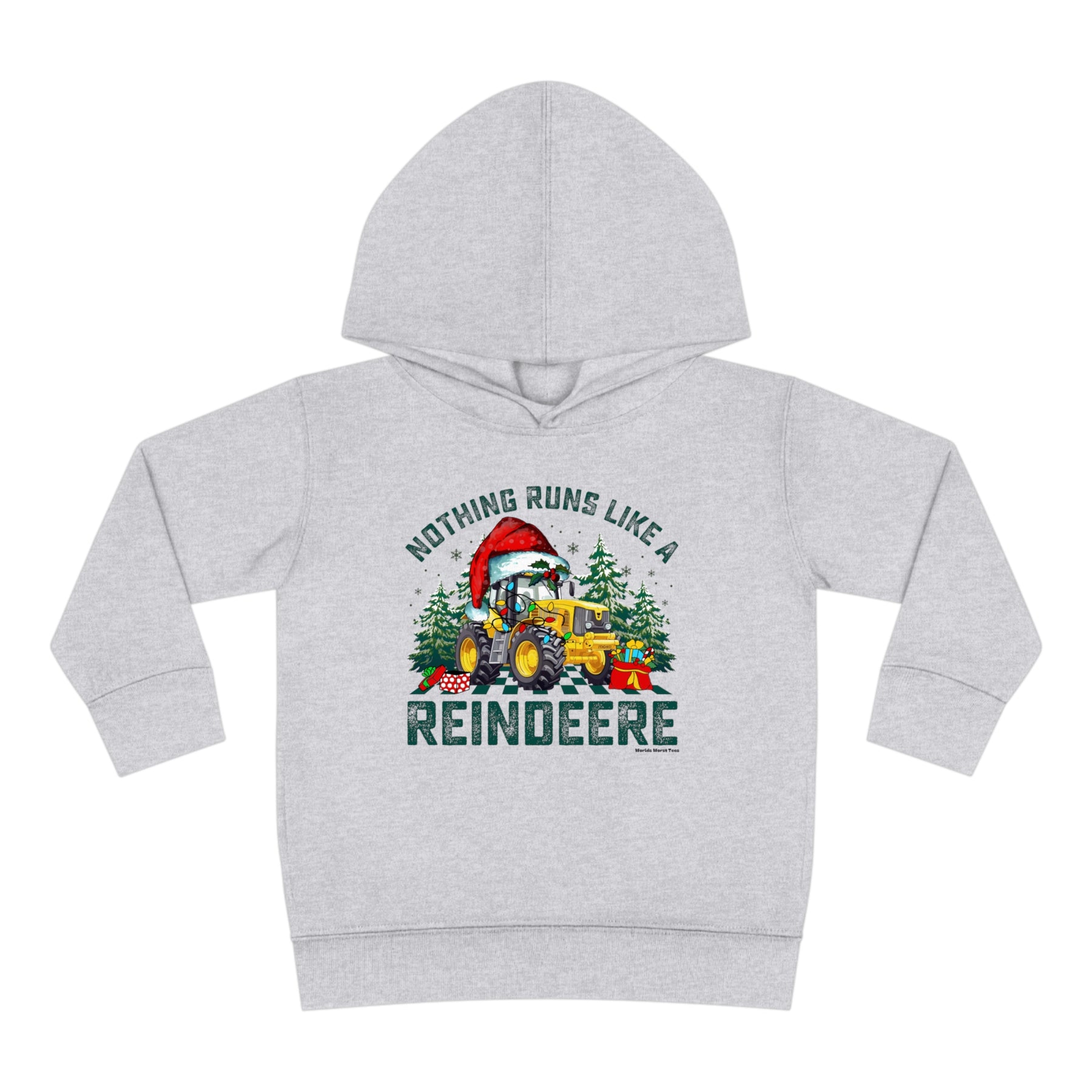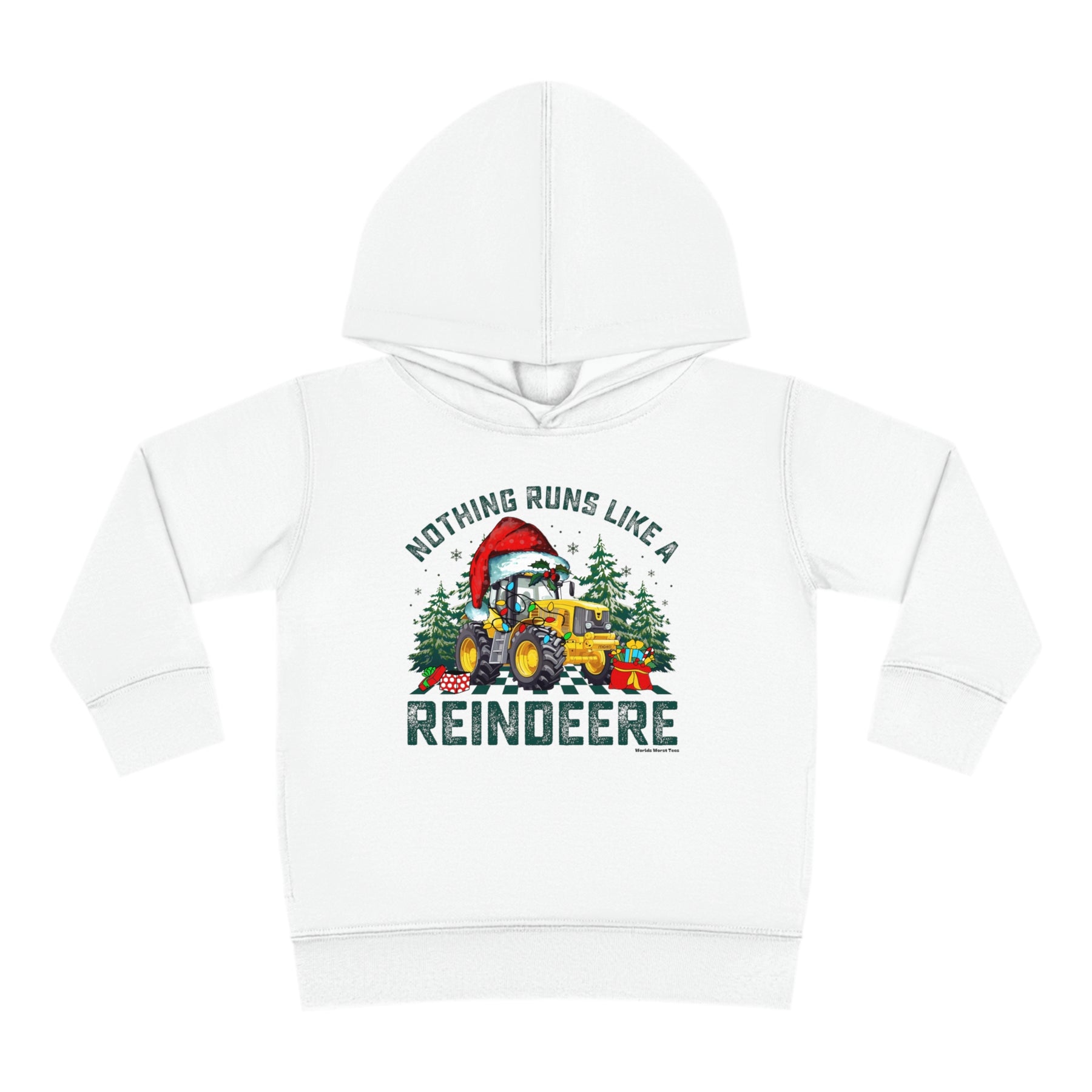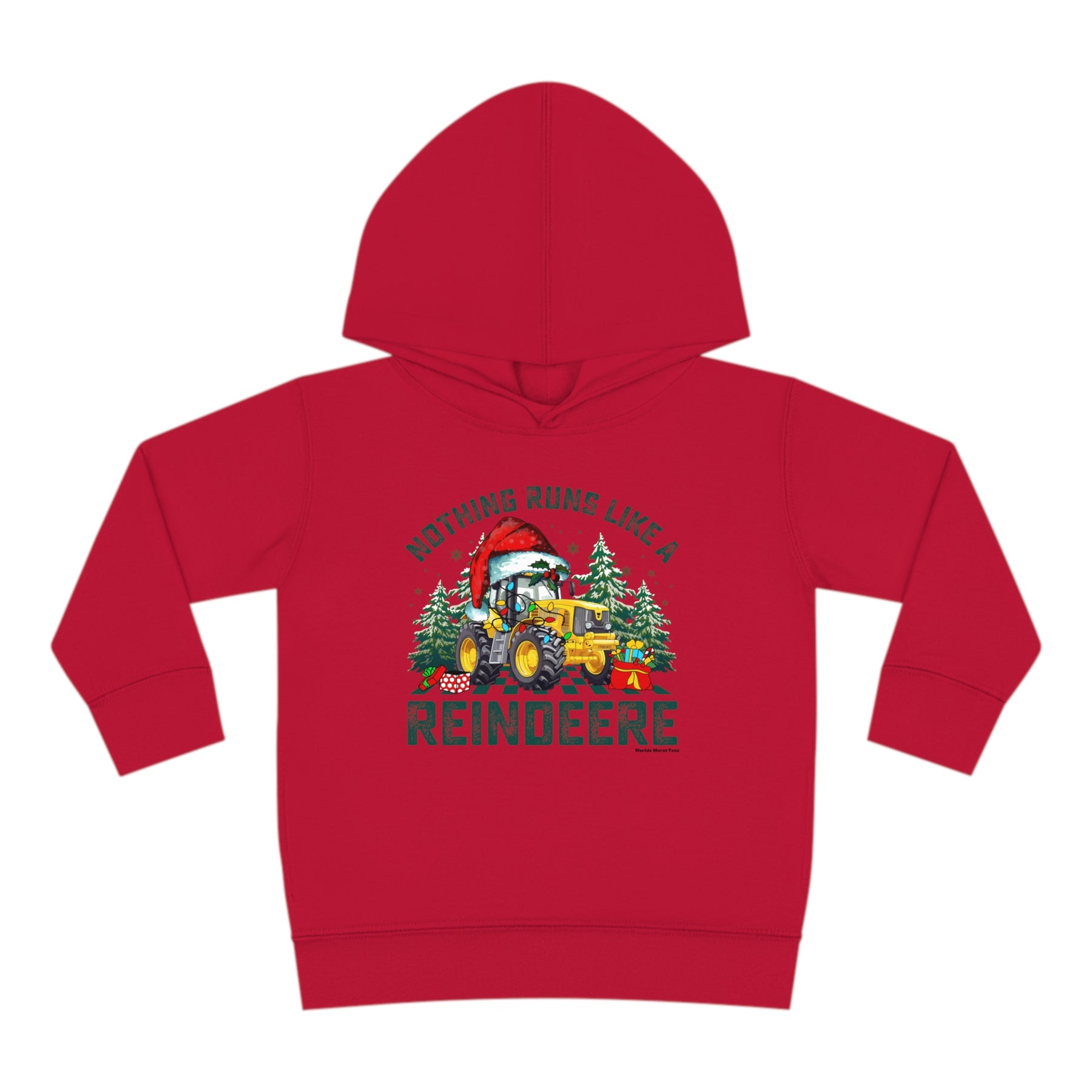 A cozy Reindeere Toddler Hoodie with side seam pockets, double-needle hem hood, and cover-stitched details. Designed for comfort and durability with 60% cotton, 40% polyester blend. From Worlds Worst Tees.