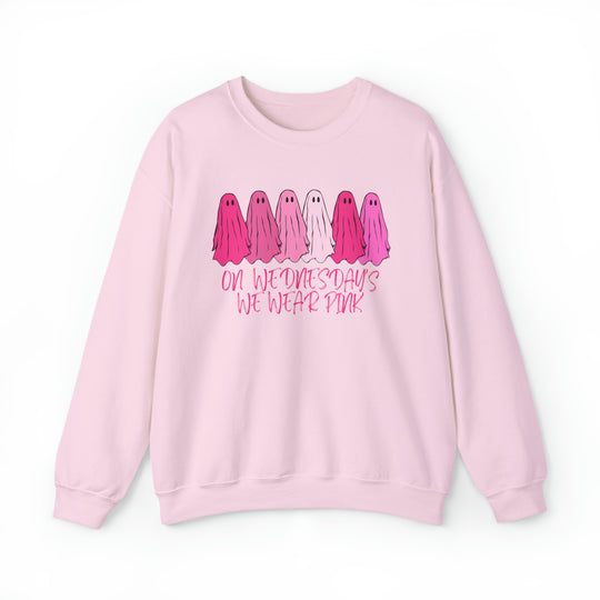 On Wednesday's We Wear Pink Crew. Ideal for any situation, a unisex heavy blend crewneck sweatshirt is pure comfort. These garments are made from polyester and cotton. This combination helps designs come out looking fresh and beautiful. The collar is ribbed knit, so it retains its shape even after washing. There are no itchy side seams on these sweaters.