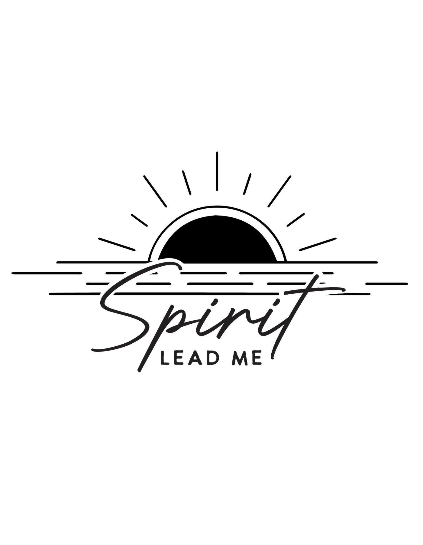 A relaxed fit Spirit Lead Me Tee, featuring a logo with a sun and water graphic on soft ring-spun cotton. Double-needle stitching for durability, no side-seams for a tubular shape. Sizes S to 3XL.