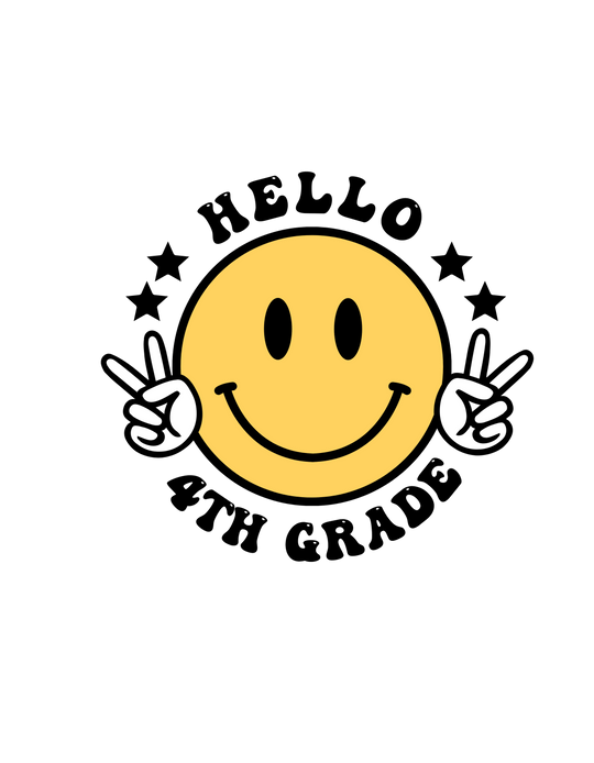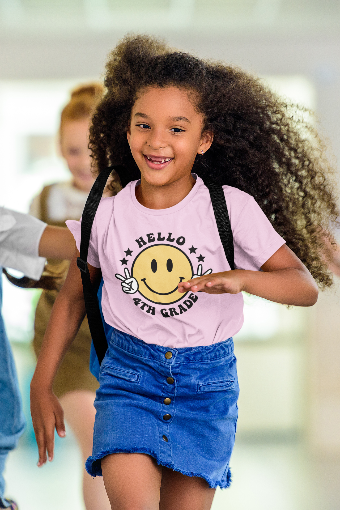 Hello 4th Grade Kids Tee this kids heavy cotton tee is perfect for everyday use. The fabric is 100% cotton for solid colors. Polyester is included for heather-color variants. These fabrics are prime materials for printing. The shoulders have twill tape for improved durability. The collar is curl resistant due to ribbed knitting. There are no seams along the sides.
