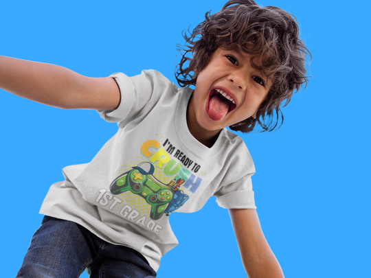The kids heavy cotton tee is perfect for everyday use. The fabric is 100% cotton for solid colors. Polyester is included for heather-color variants. These fabrics are prime materials for printing. The shoulders have twill tape for improved durability. The collar is curl resistant due to ribbed knitting. There are no seams along the sides.