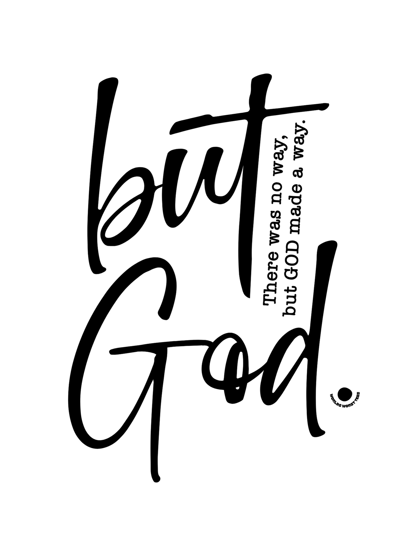 A cozy unisex hooded sweatshirt, the But God Hoodie by Worlds Worst Tees. Thick cotton-polyester blend, kangaroo pocket, and matching drawstring. Perfect for chilly days. Classic fit, tear-away label.