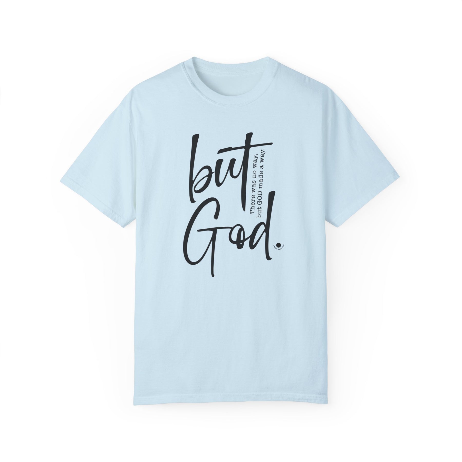 Relaxed fit But God Tee, garment-dyed 100% ring-spun cotton t-shirt. Soft-washed fabric, double-needle stitching for durability, seamless design. Ideal for daily wear.