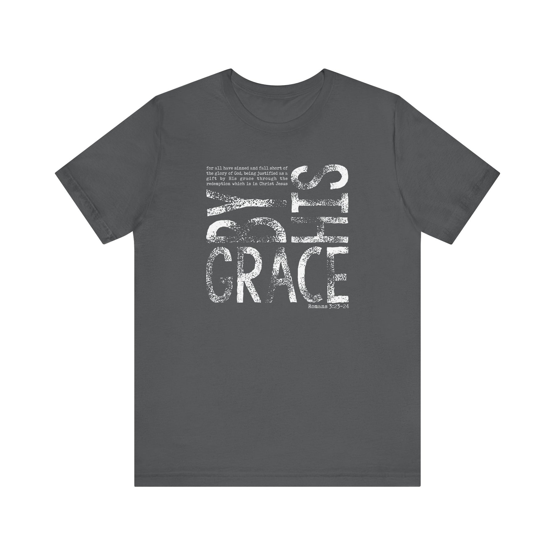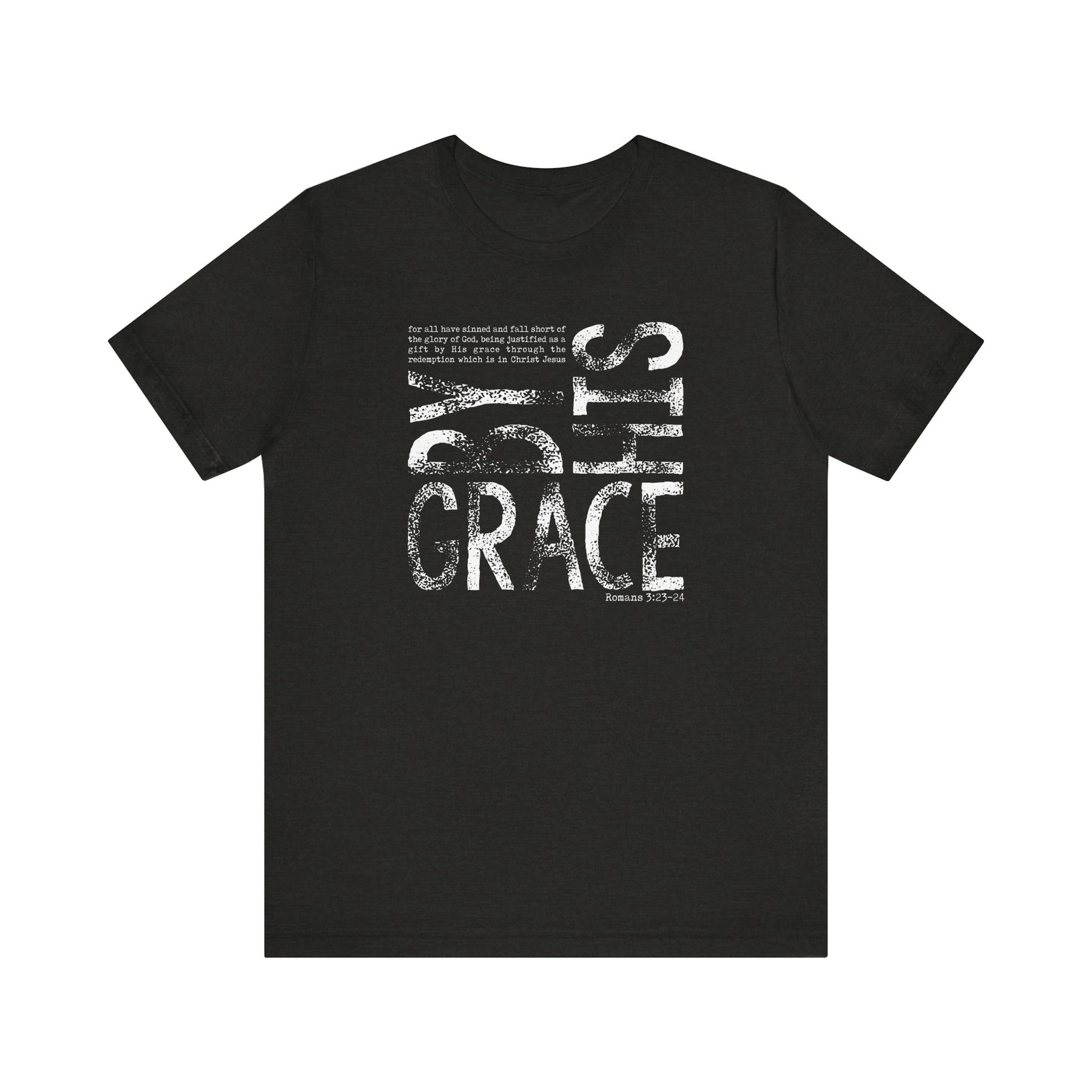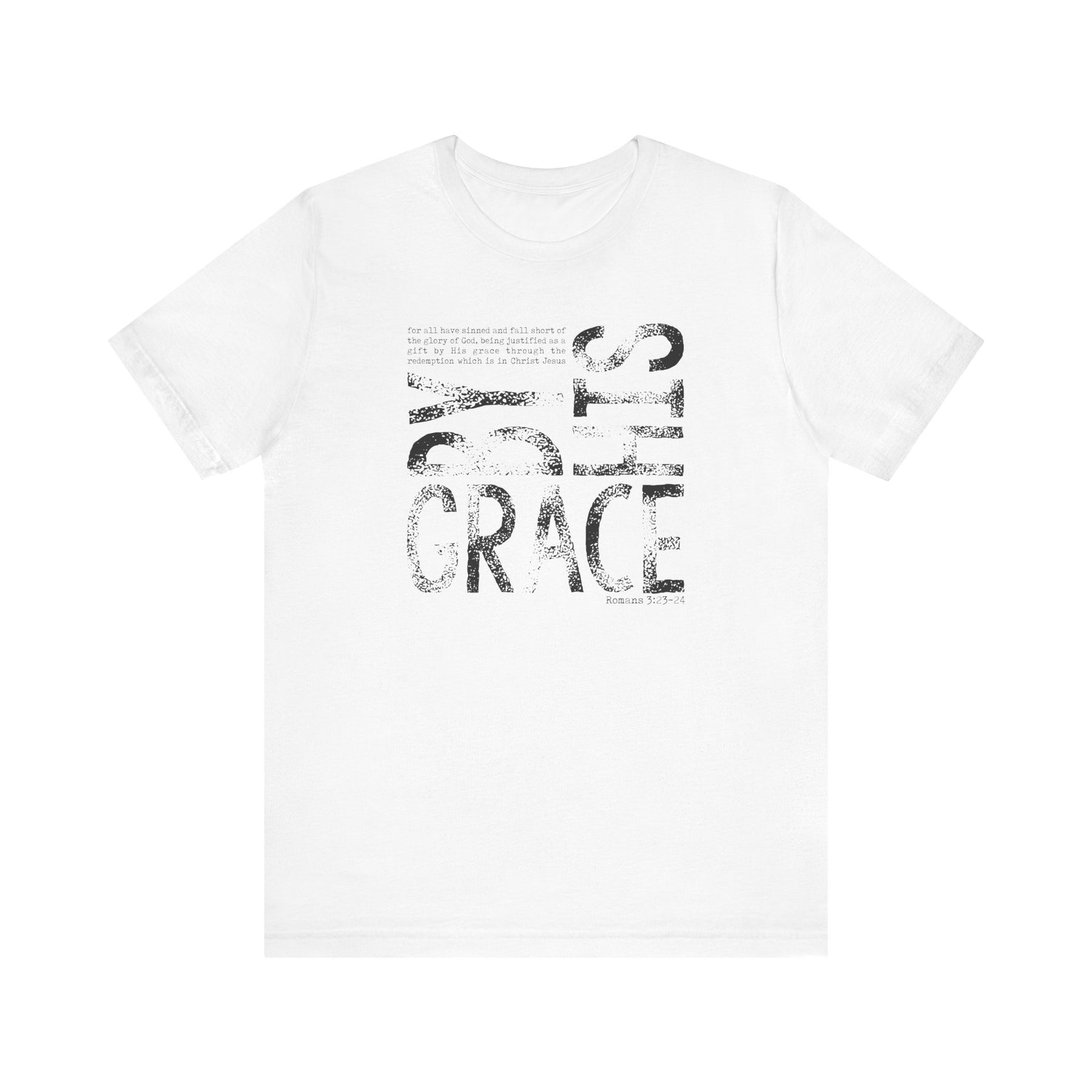 By His Grace Tee: A classic unisex jersey short sleeve t-shirt, featuring soft cotton, ribbed knit collars, and dual side seams for superior fit and durability.