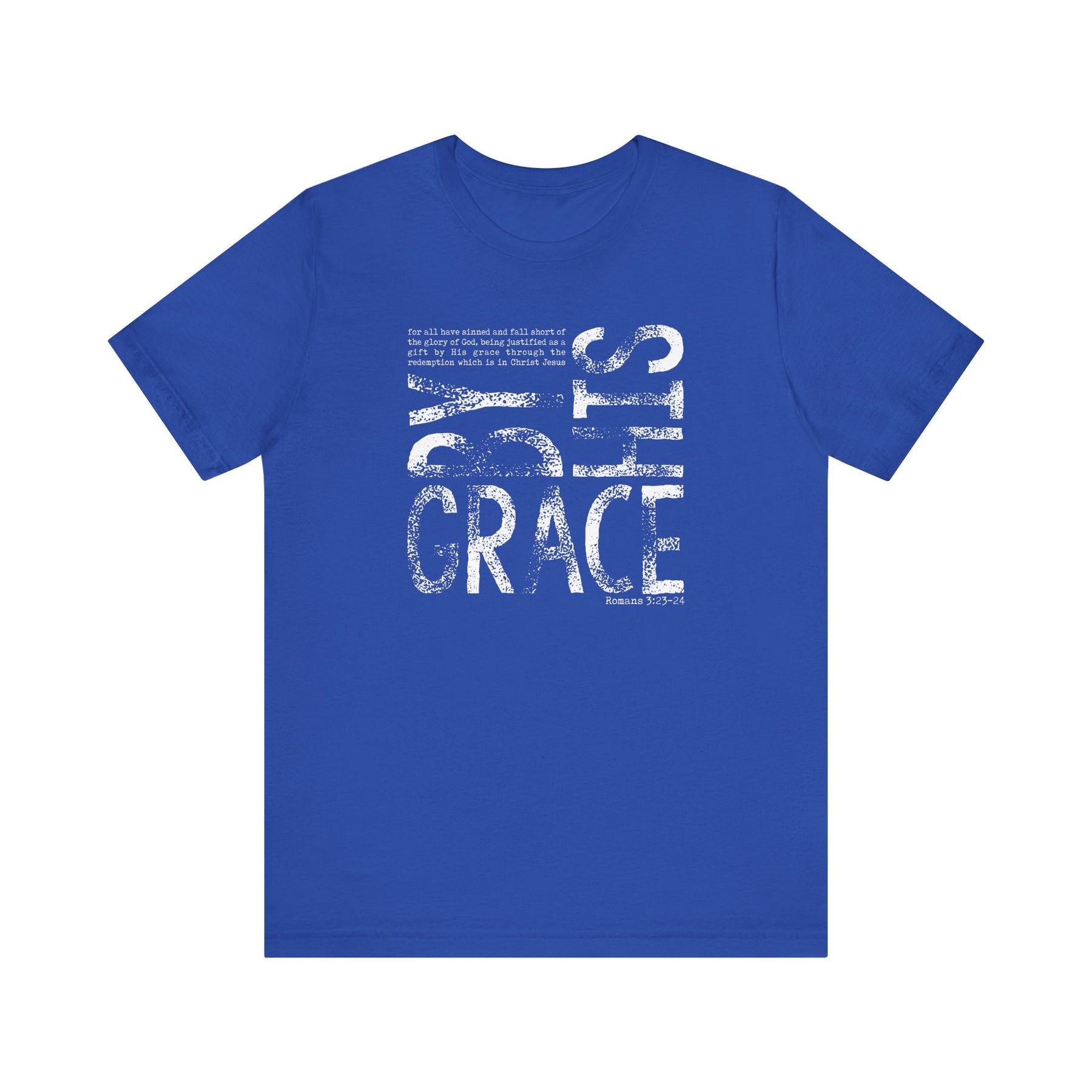 By His Grace Tee: A classic unisex jersey short sleeve t-shirt with ribbed knit collars and dual side seams for durability and fit.