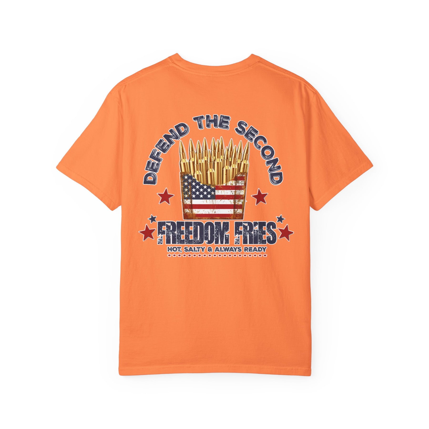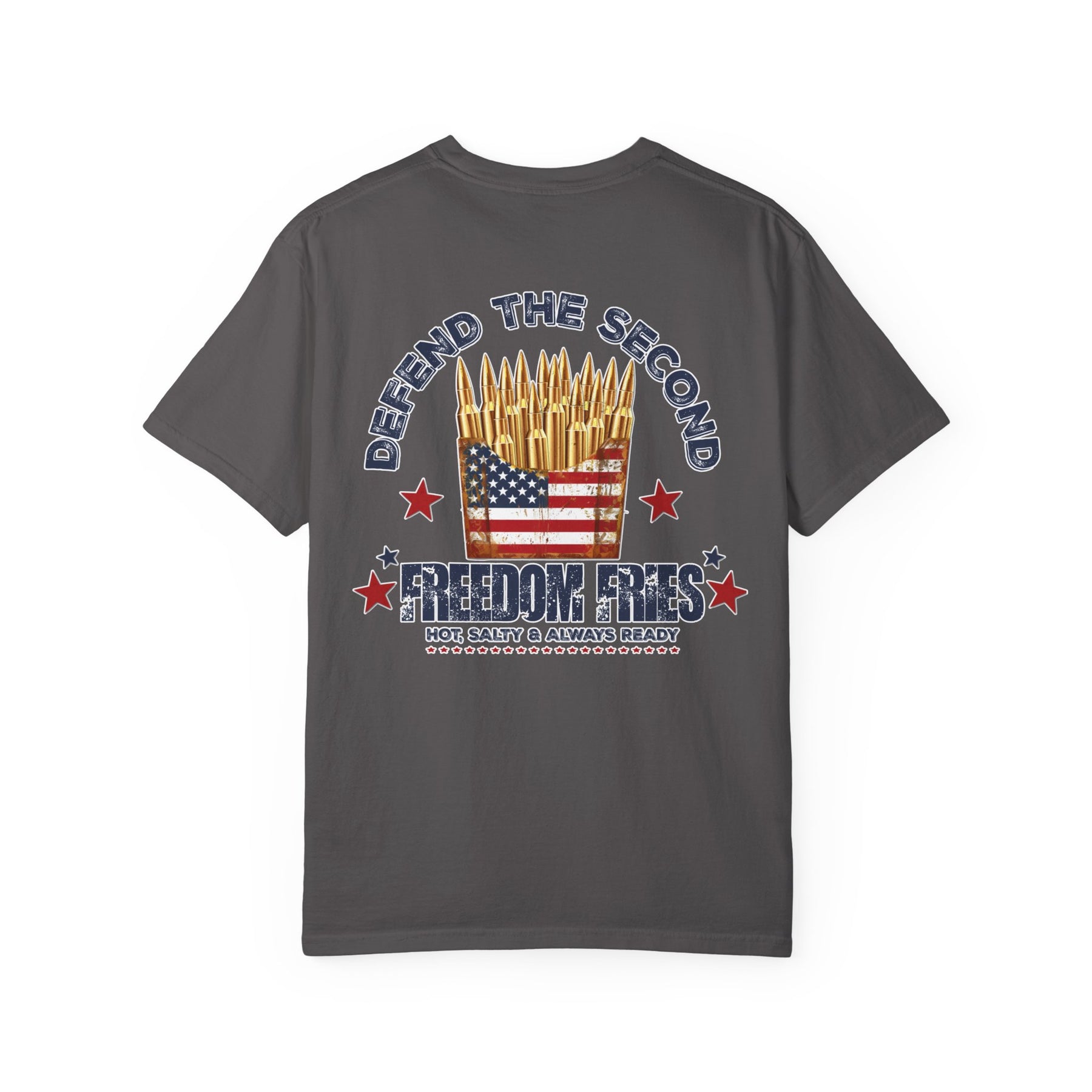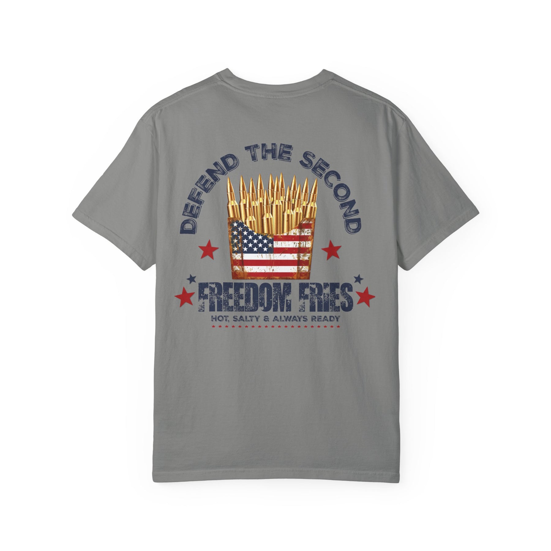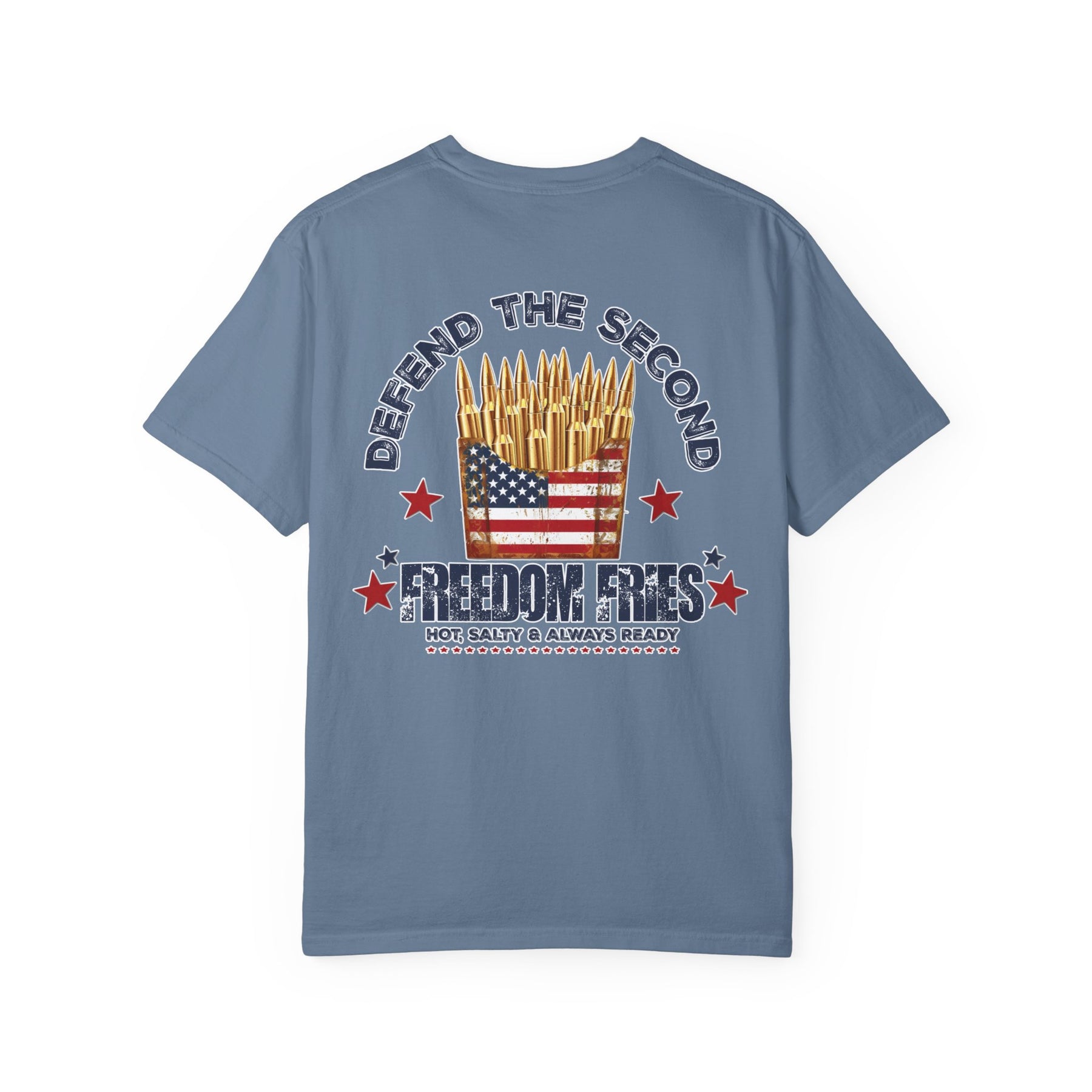 Defend the 2nd Tee: A comfortable, garment-dyed t-shirt made from 100% ring-spun cotton, featuring durable double-needle stitching and a relaxed fit for everyday wear.