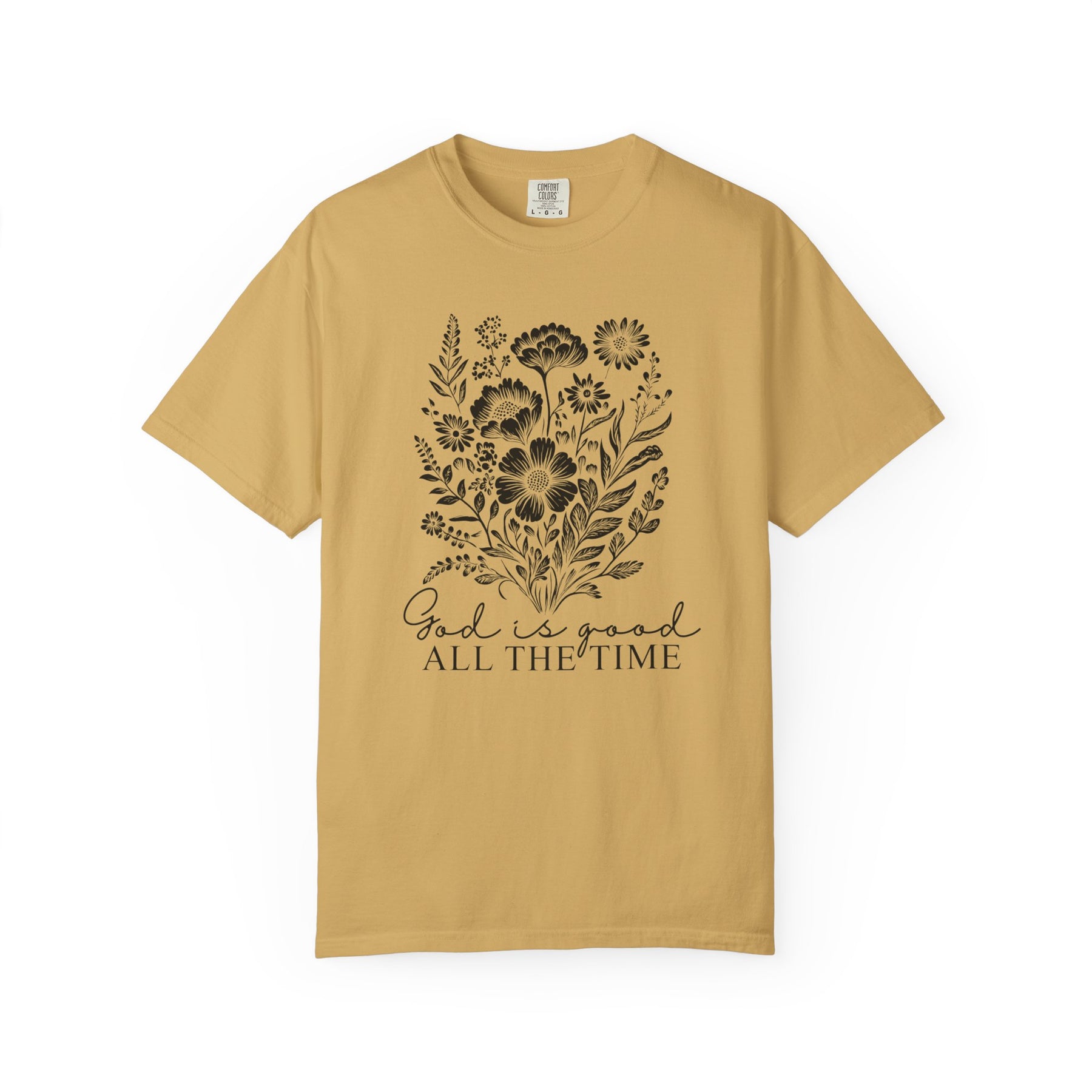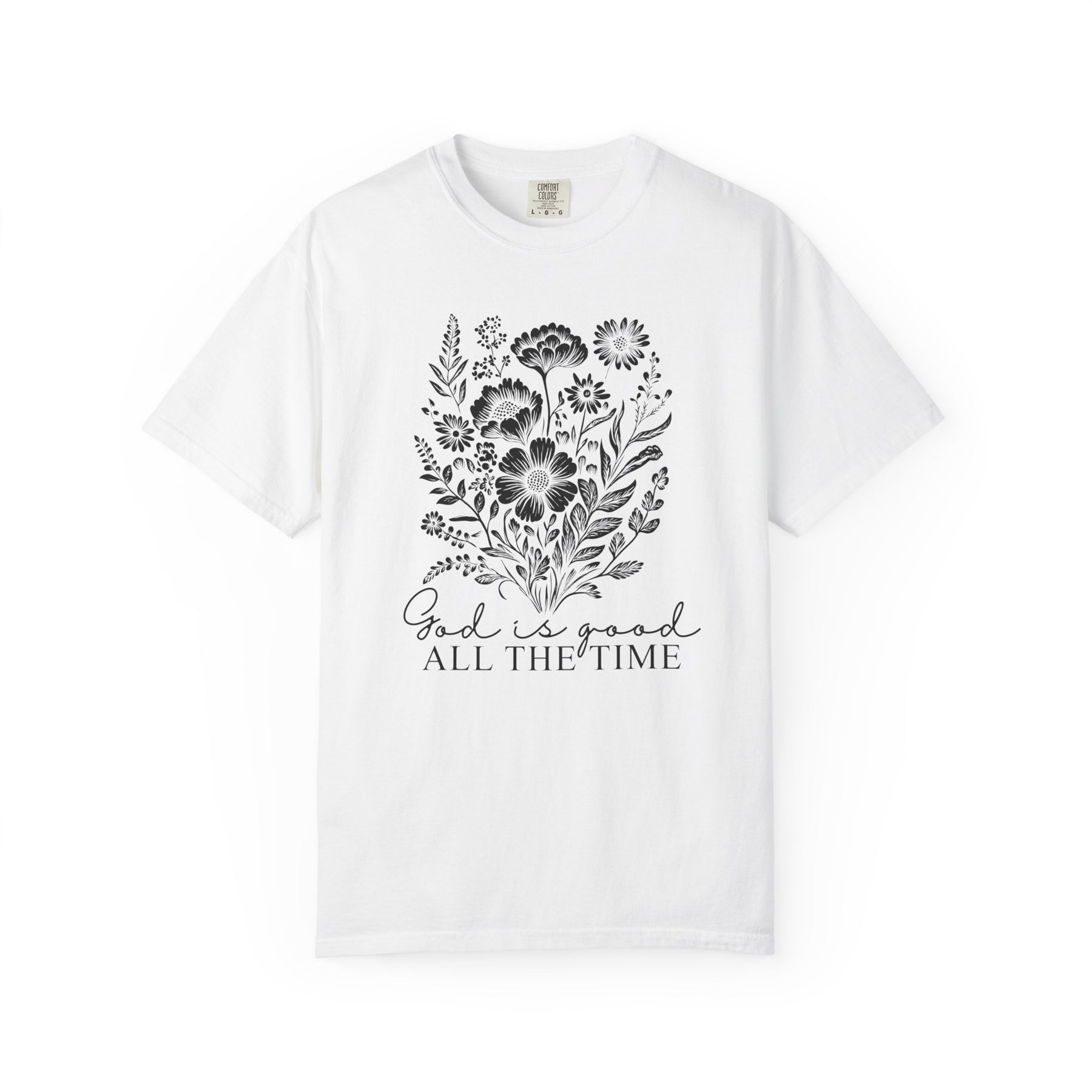 God is Good All the Time Tee, featuring a relaxed fit and durable garment-dyed fabric, ideal for casual wear and customization.