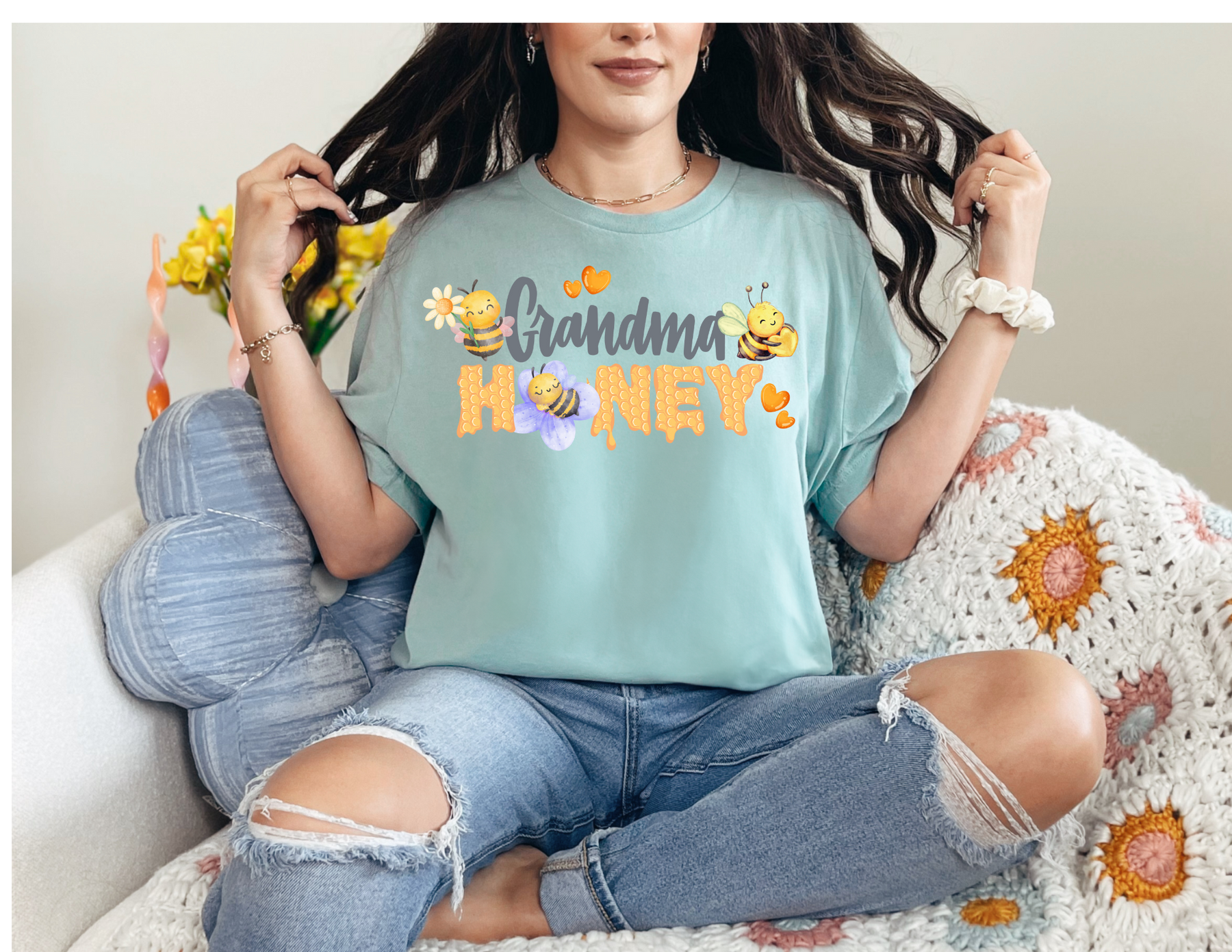 Grandma Honey Tee, a classic unisex short sleeve shirt with soft cotton, ribbed knit collar, and tapered shoulders for a comfortable, long-lasting fit.