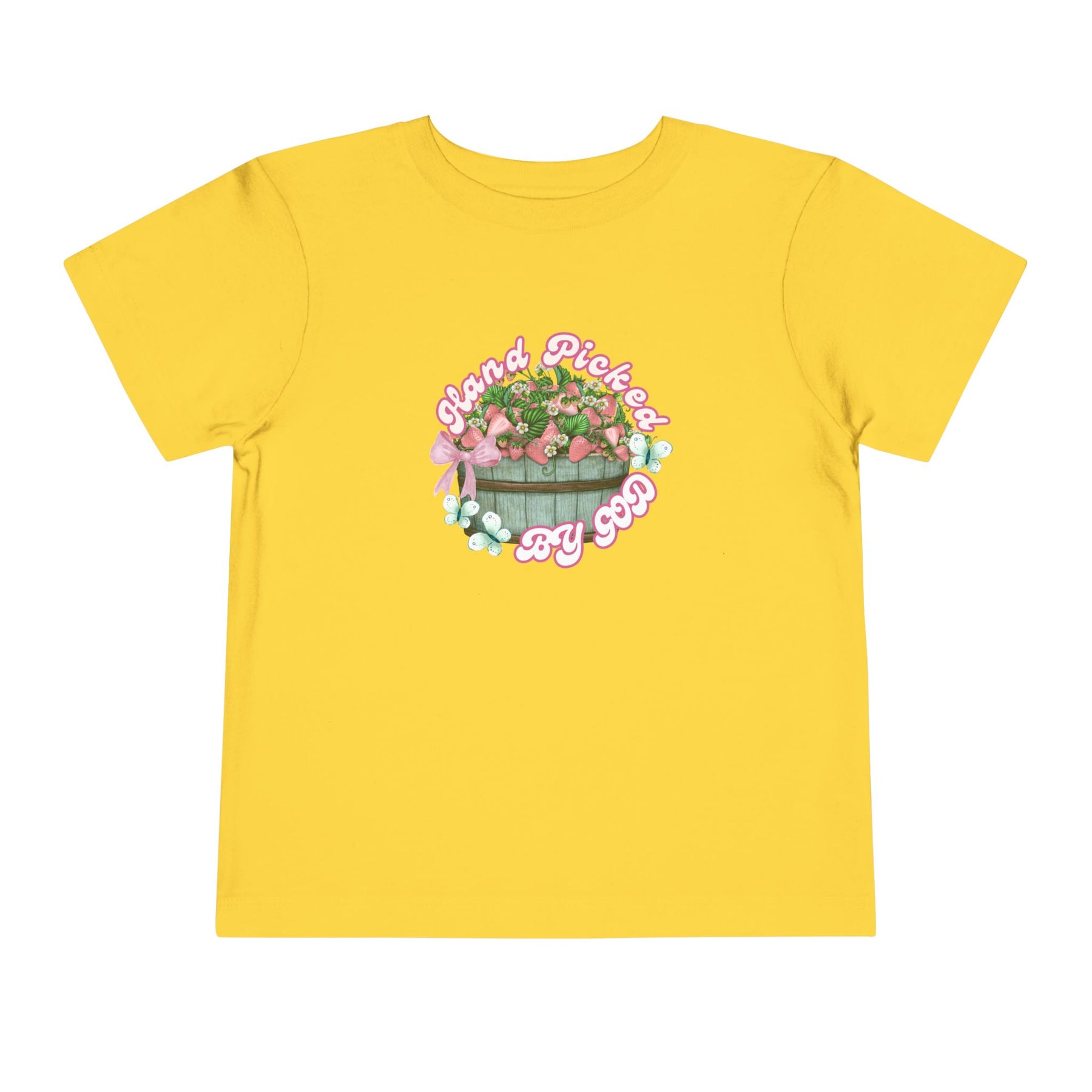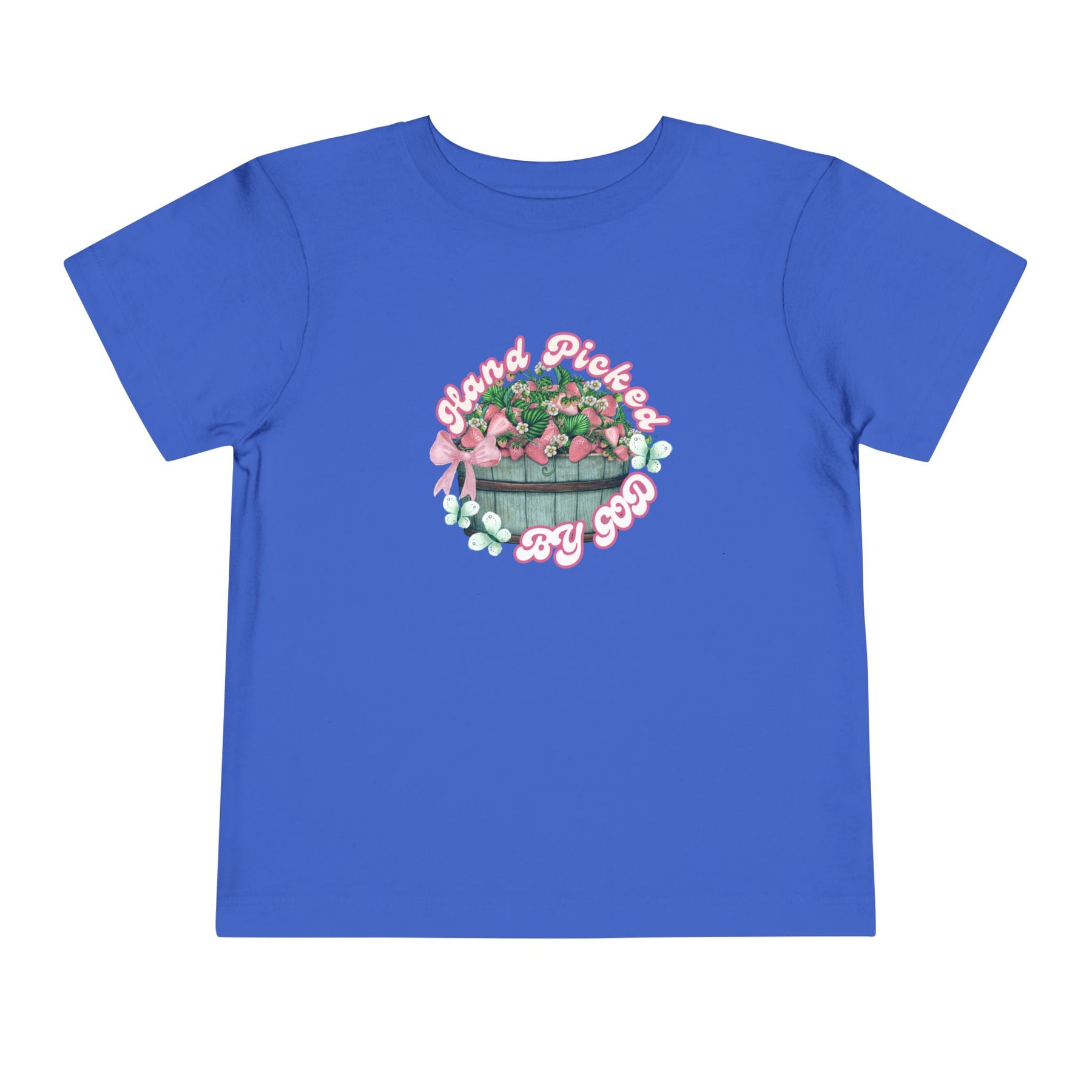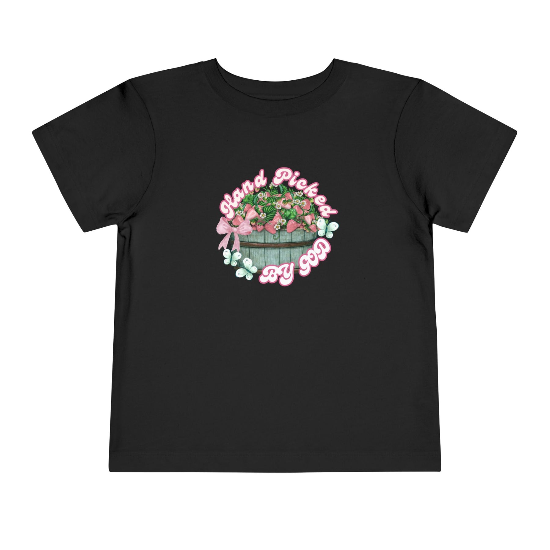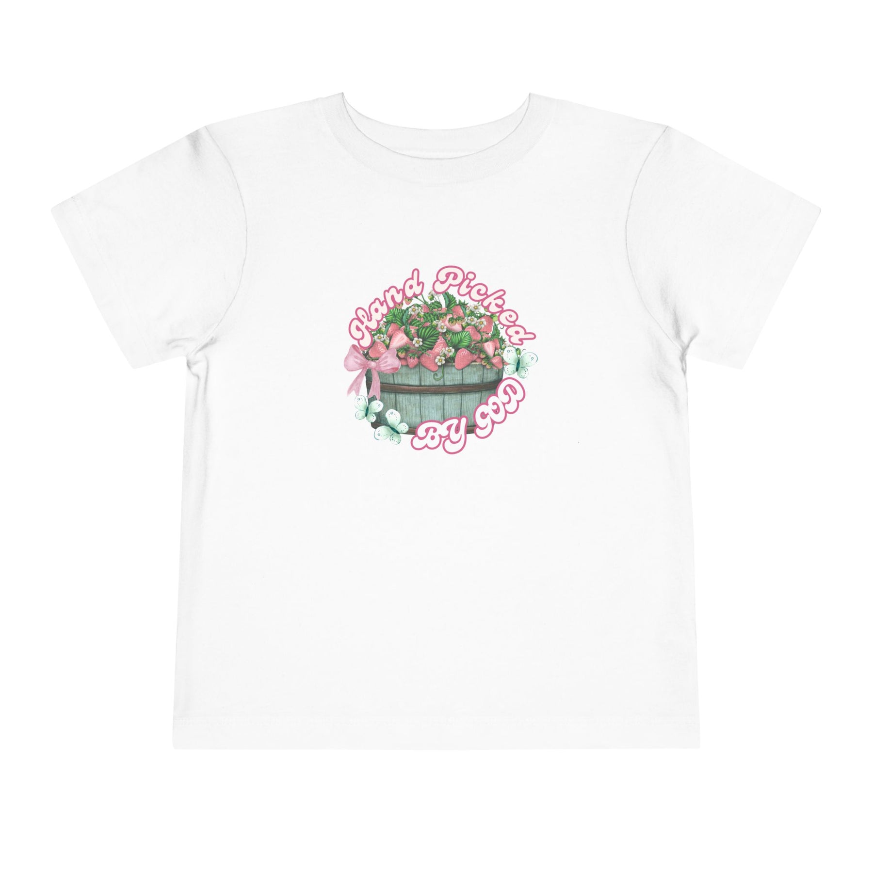 Hand Picked by GOD Toddler Tee, featuring soft 100% Airlume cotton, short sleeves, and tear-away label, perfect for everyday wear.