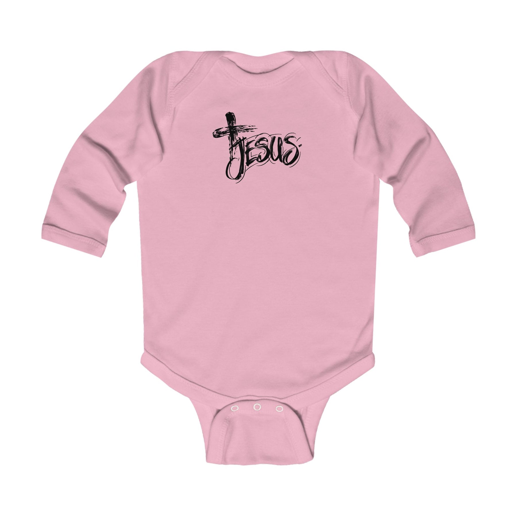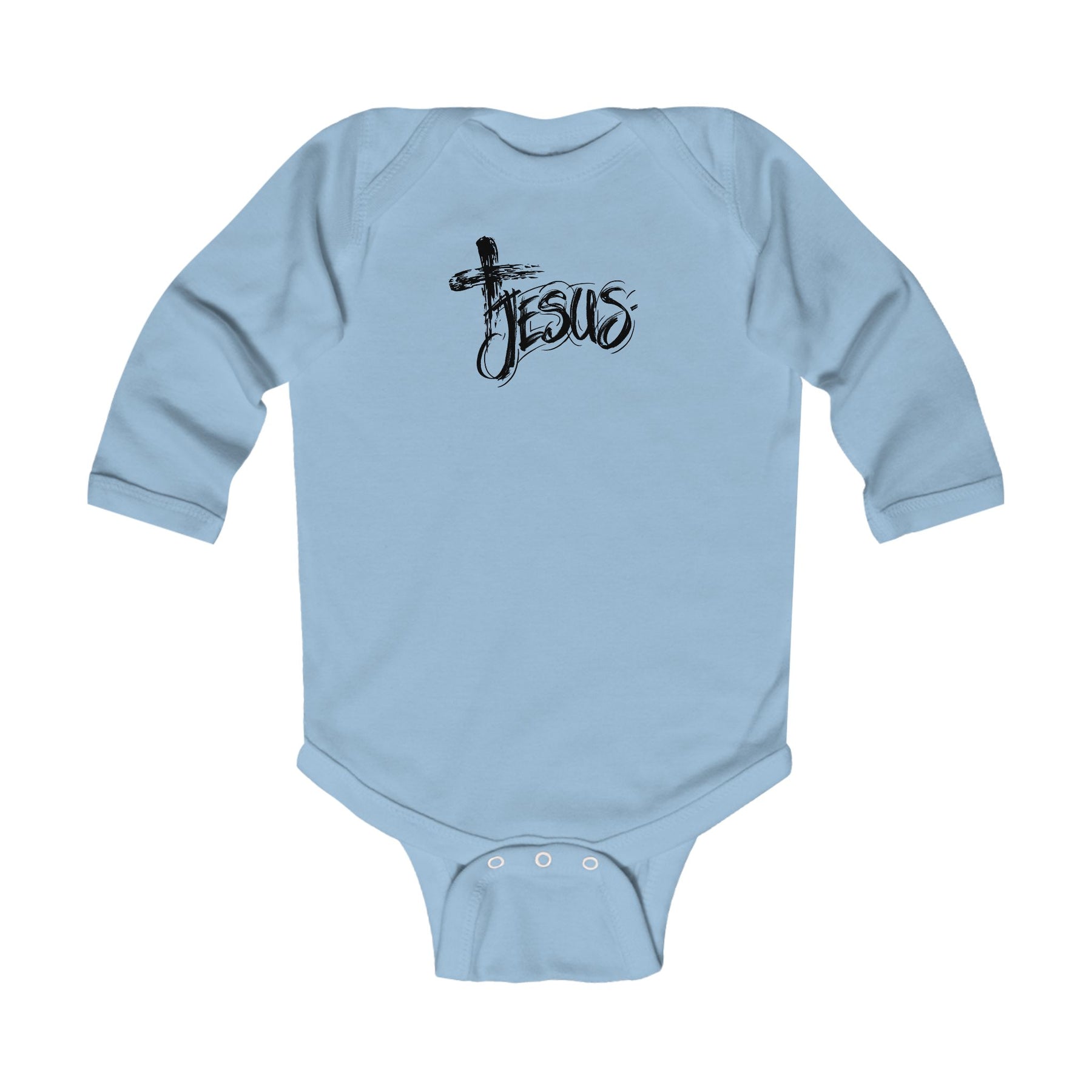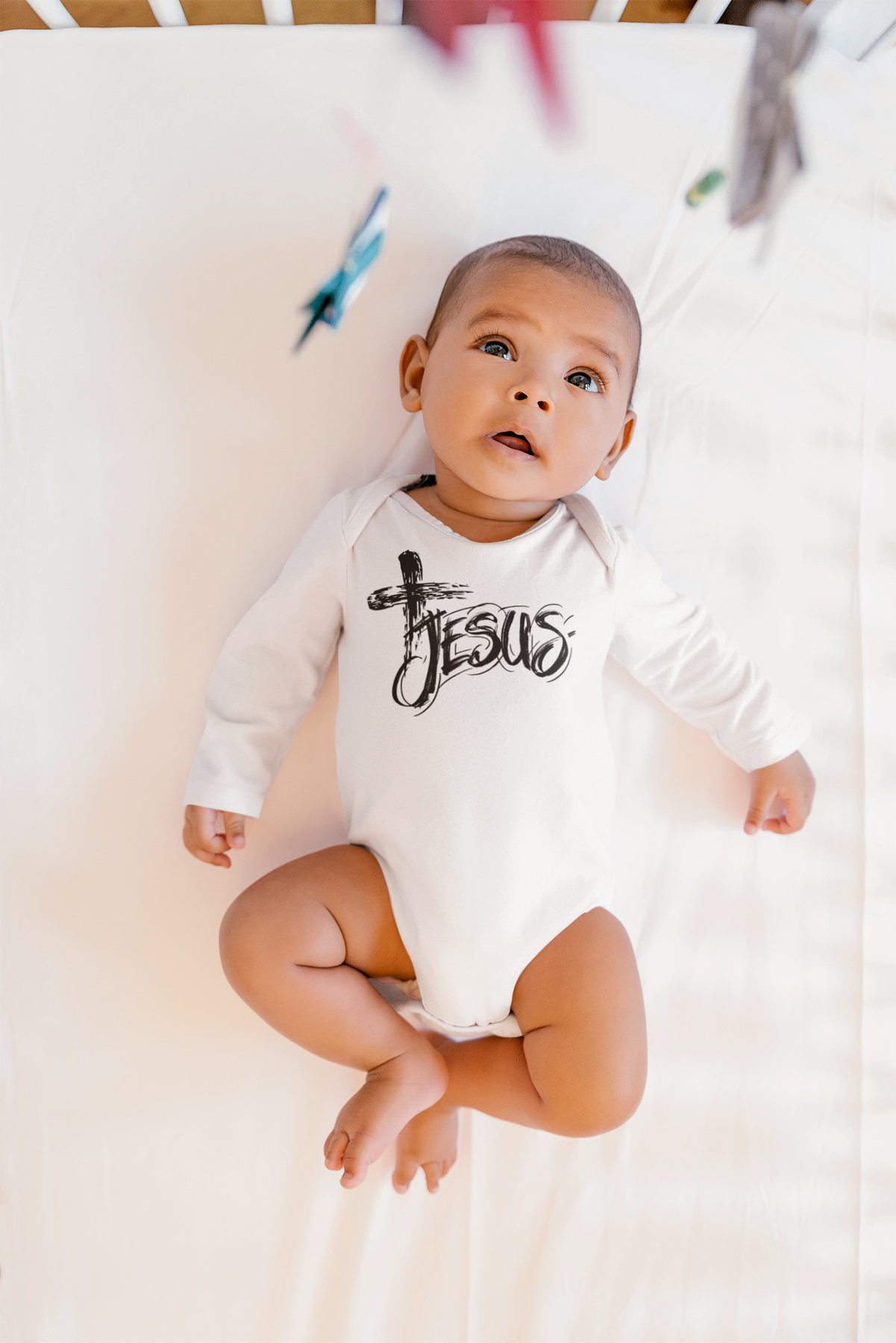 Any product designed for babies needs to hold up. The infant long sleeve bodysuit does just that. Solid colors are 100% cotton. Other colors will include polyester. Either way, the fabric will be smooth and soft against the young one's skin. There are plastic snaps at the cross closure for easy changing. All bindings have ribbed knitting for durability and improved range of motion.