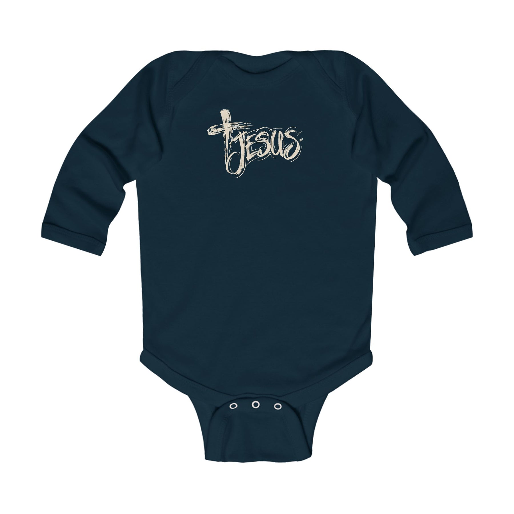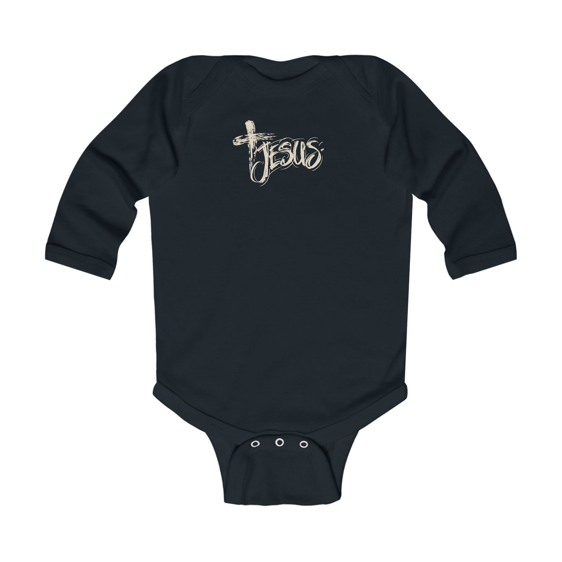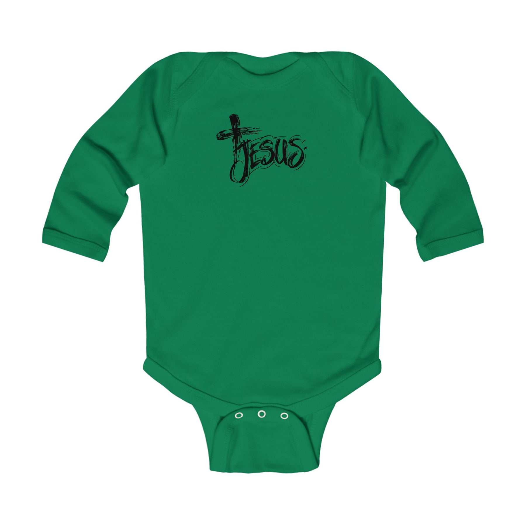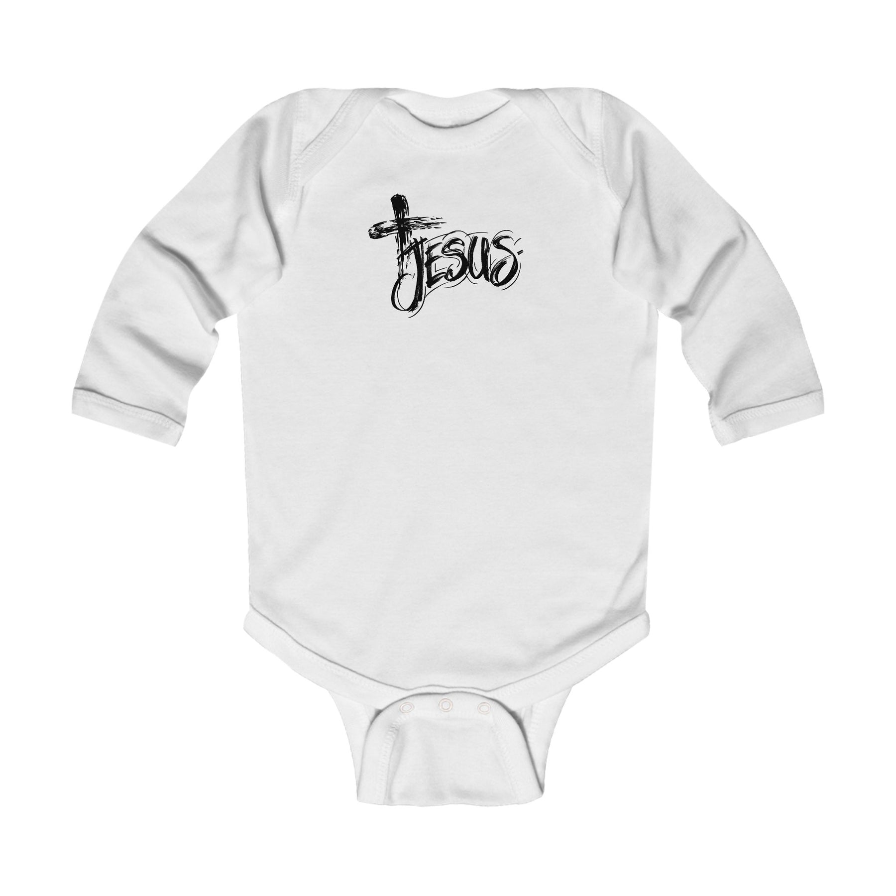 Any product designed for babies needs to hold up. The infant long sleeve bodysuit does just that. Solid colors are 100% cotton. Other colors will include polyester. Either way, the fabric will be smooth and soft against the young one's skin. There are plastic snaps at the cross closure for easy changing. All bindings have ribbed knitting for durability and improved range of motion.