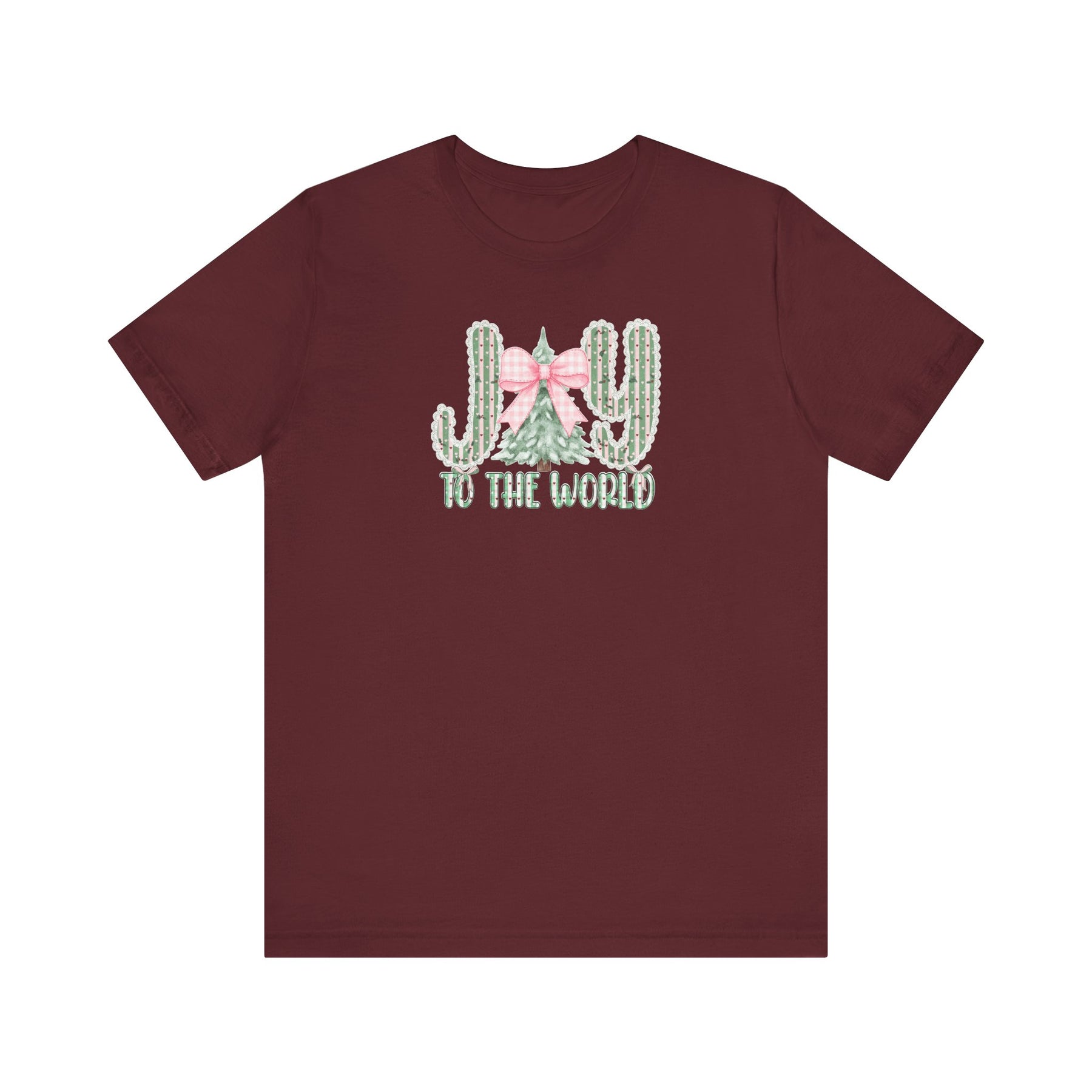 Joy to the World Tee features holiday-themed cacti and Christmas tree graphic, combining style and comfort with soft cotton and durable fit.