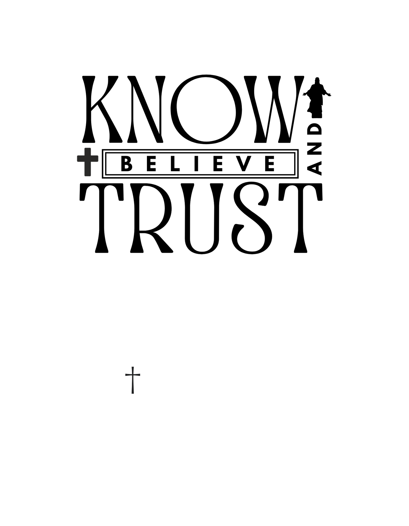 Know, Trust, Believe Tee featuring a blue t-shirt with white text and a cross design, crafted from soft, durable ring-spun cotton for everyday comfort.