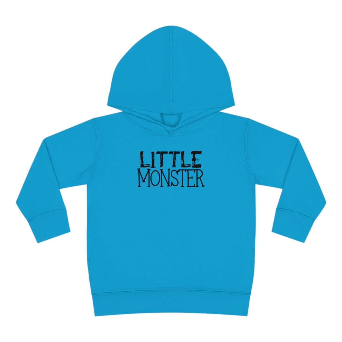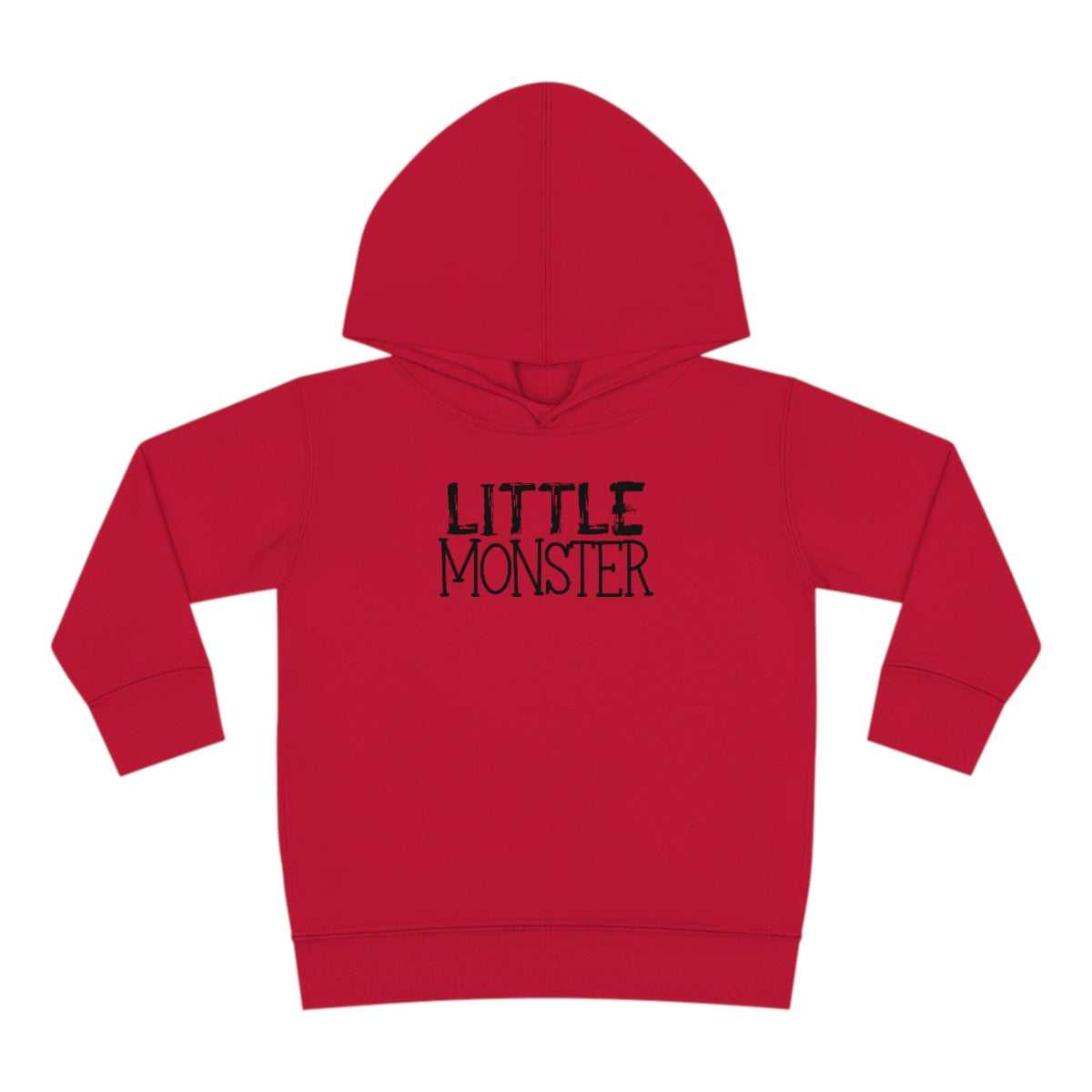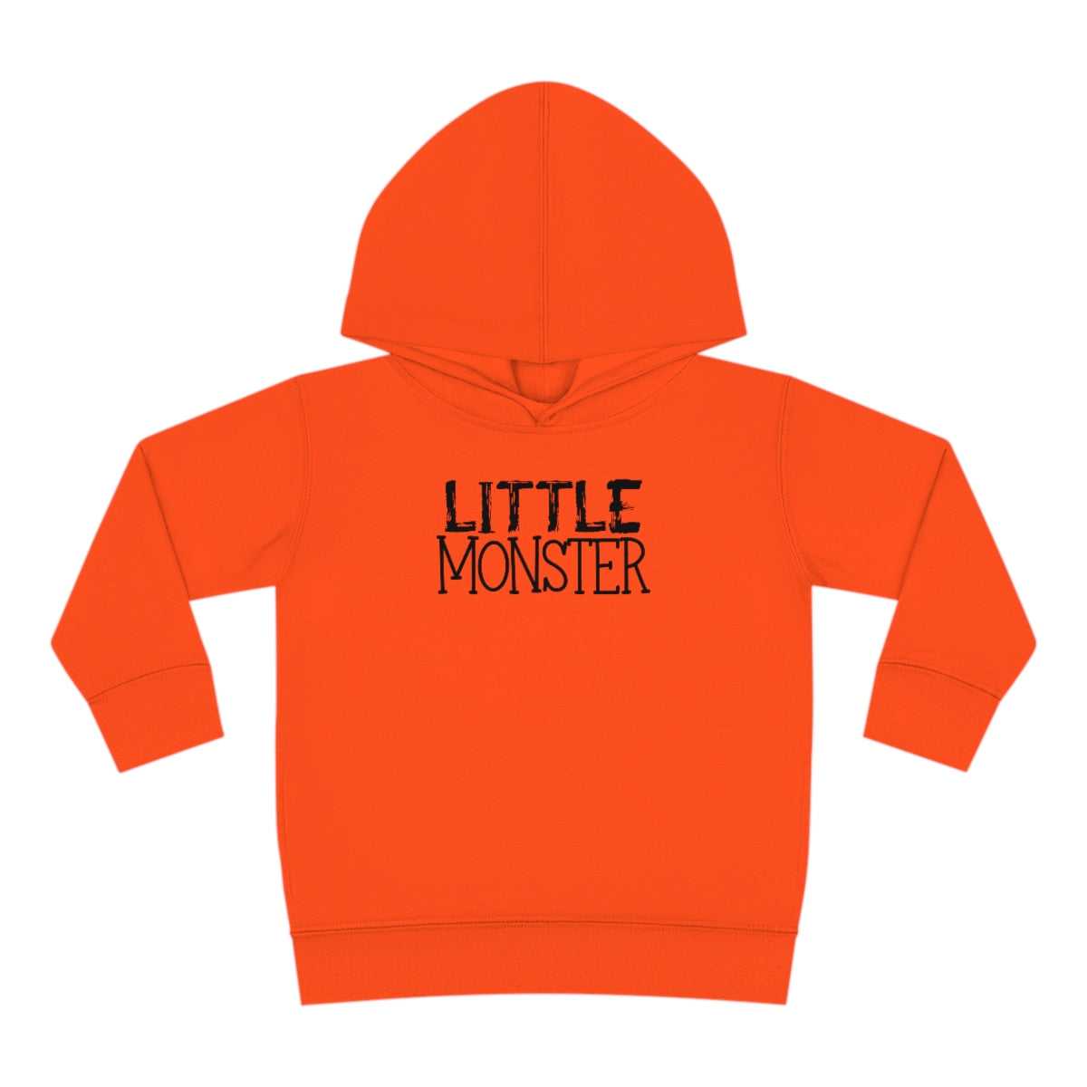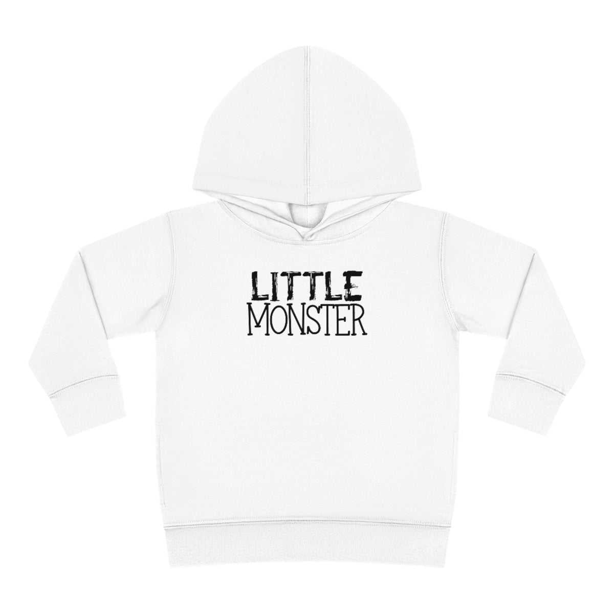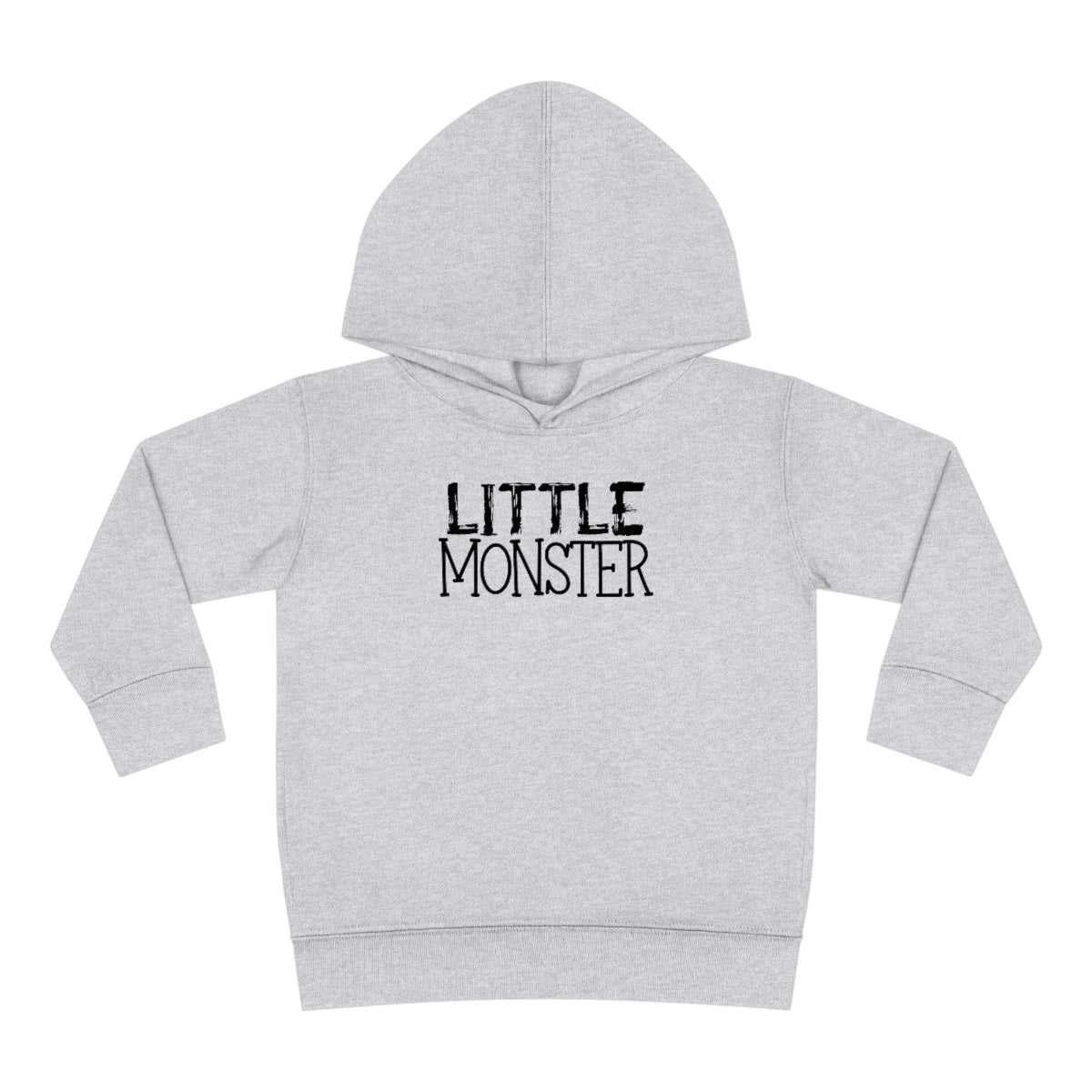 A toddler hoodie featuring a Little Monster design, with jersey-lined hood, cover-stitched details, and side seam pockets for cozy comfort. Made of 60% cotton and 40% polyester for durability and softness.