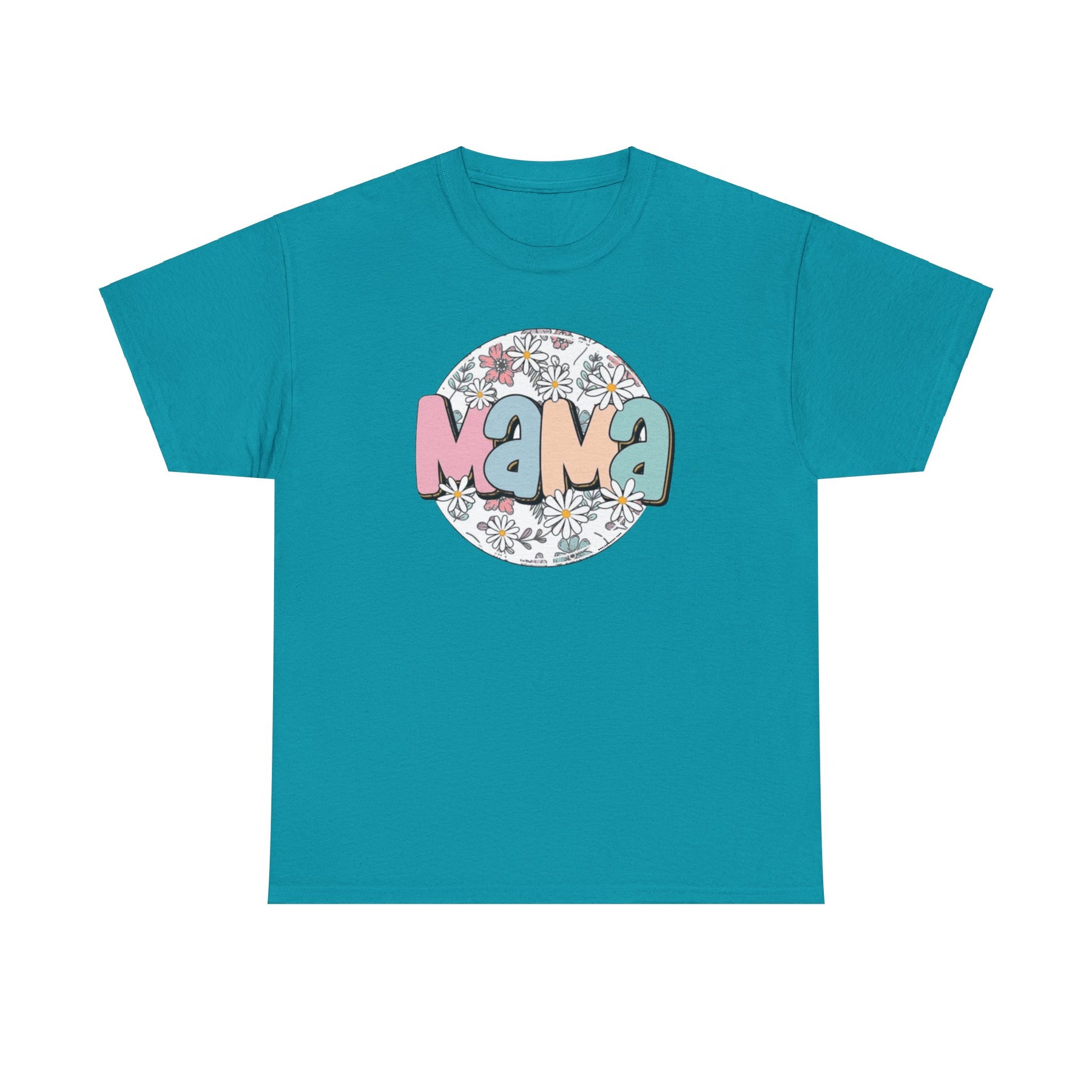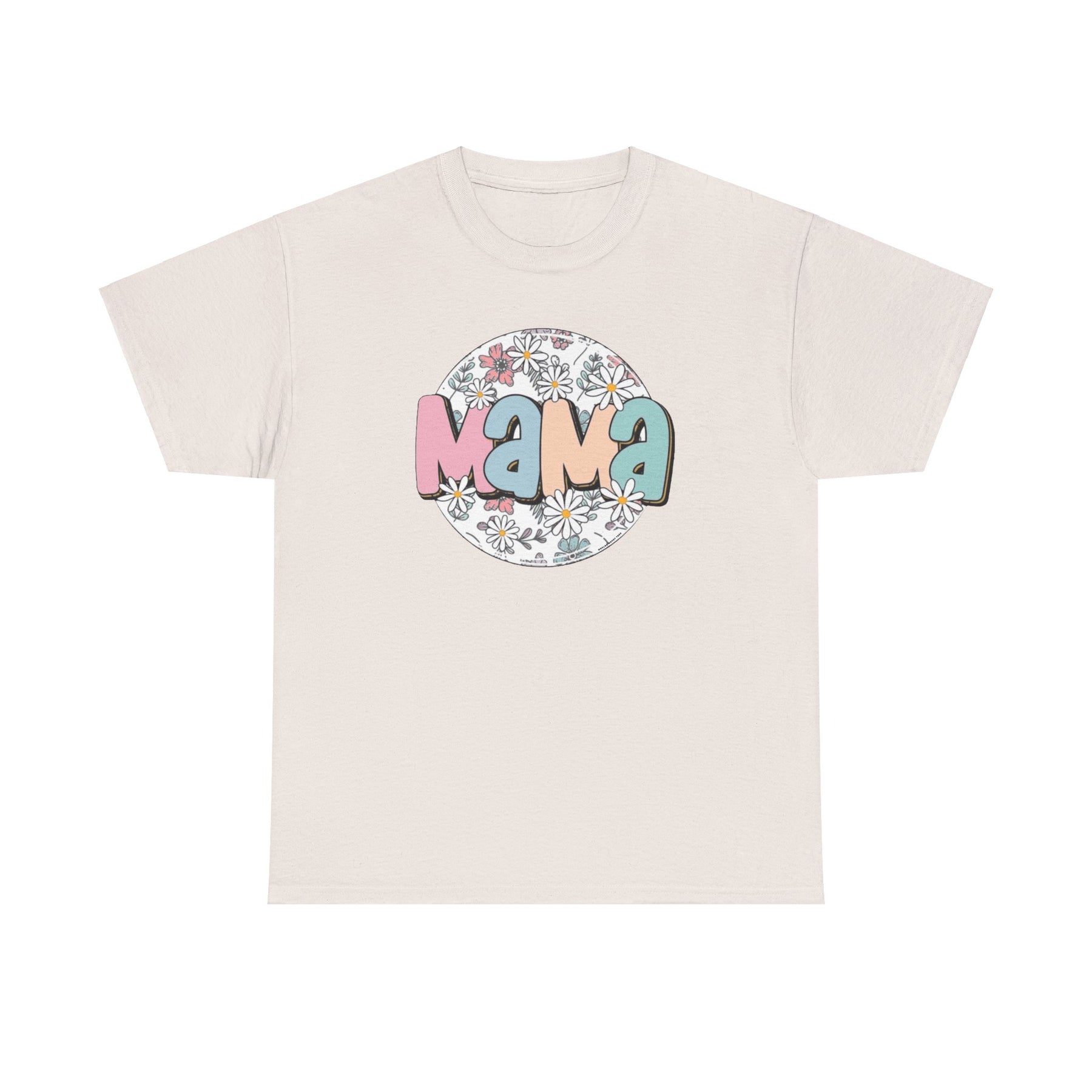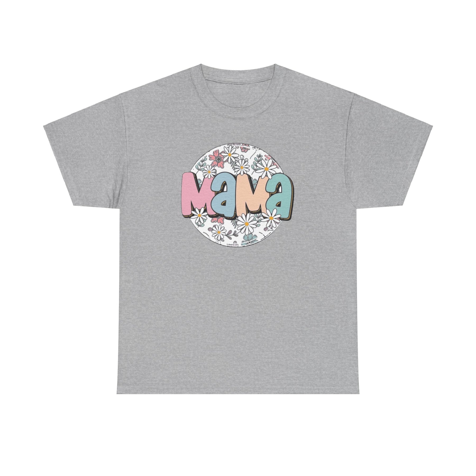 A classic fit unisex heavy cotton tee featuring a circle of flowers and text, ideal for casual fashion. No side seams, durable tape on shoulders, and ribbed knit collar. Sassy Mama Flower Tee.