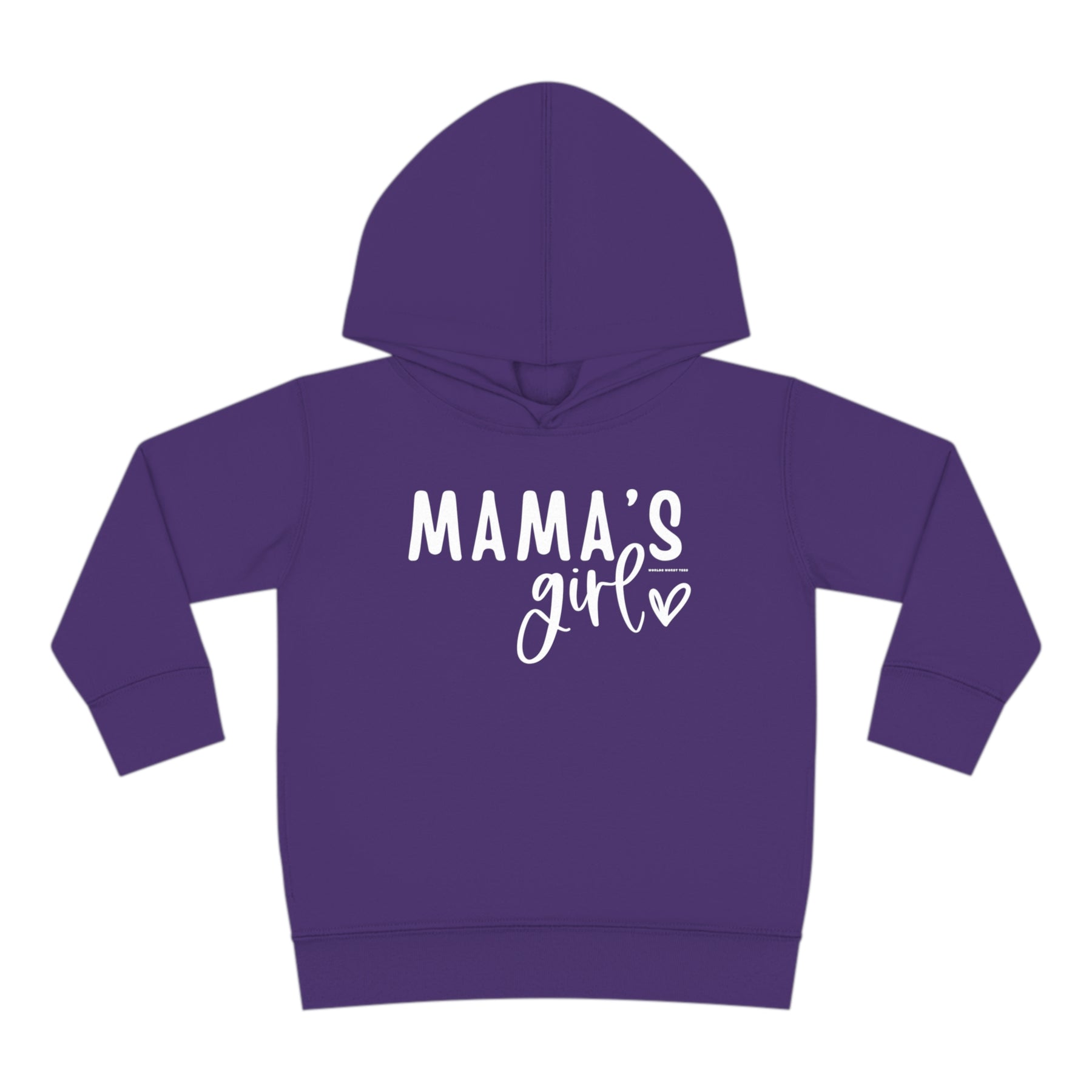Toddler hoodie with jersey-lined hood, cover-stitched details, and side seam pockets. Mama's Girl Toddler Hoodie in purple with white text. Designed for comfort and durability.