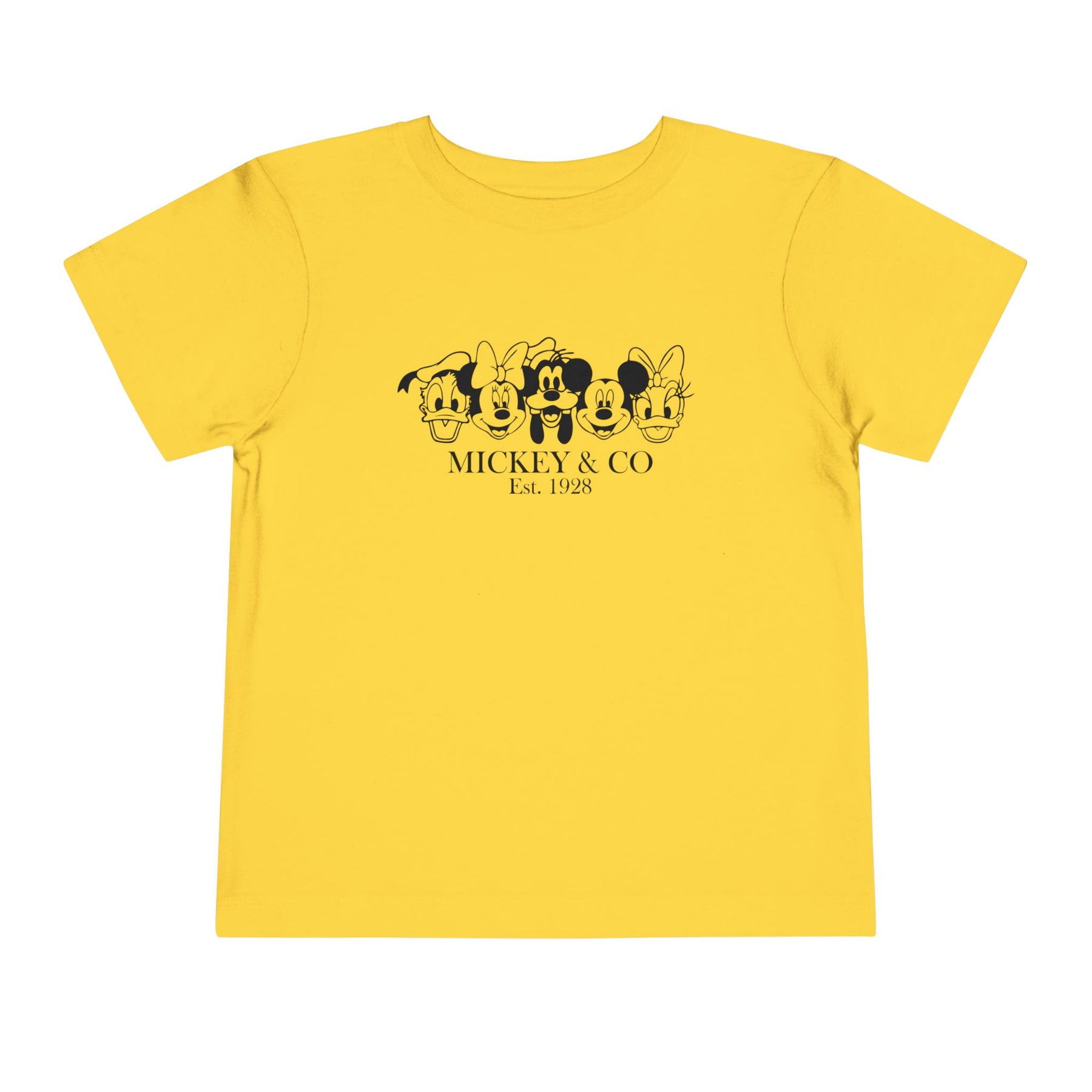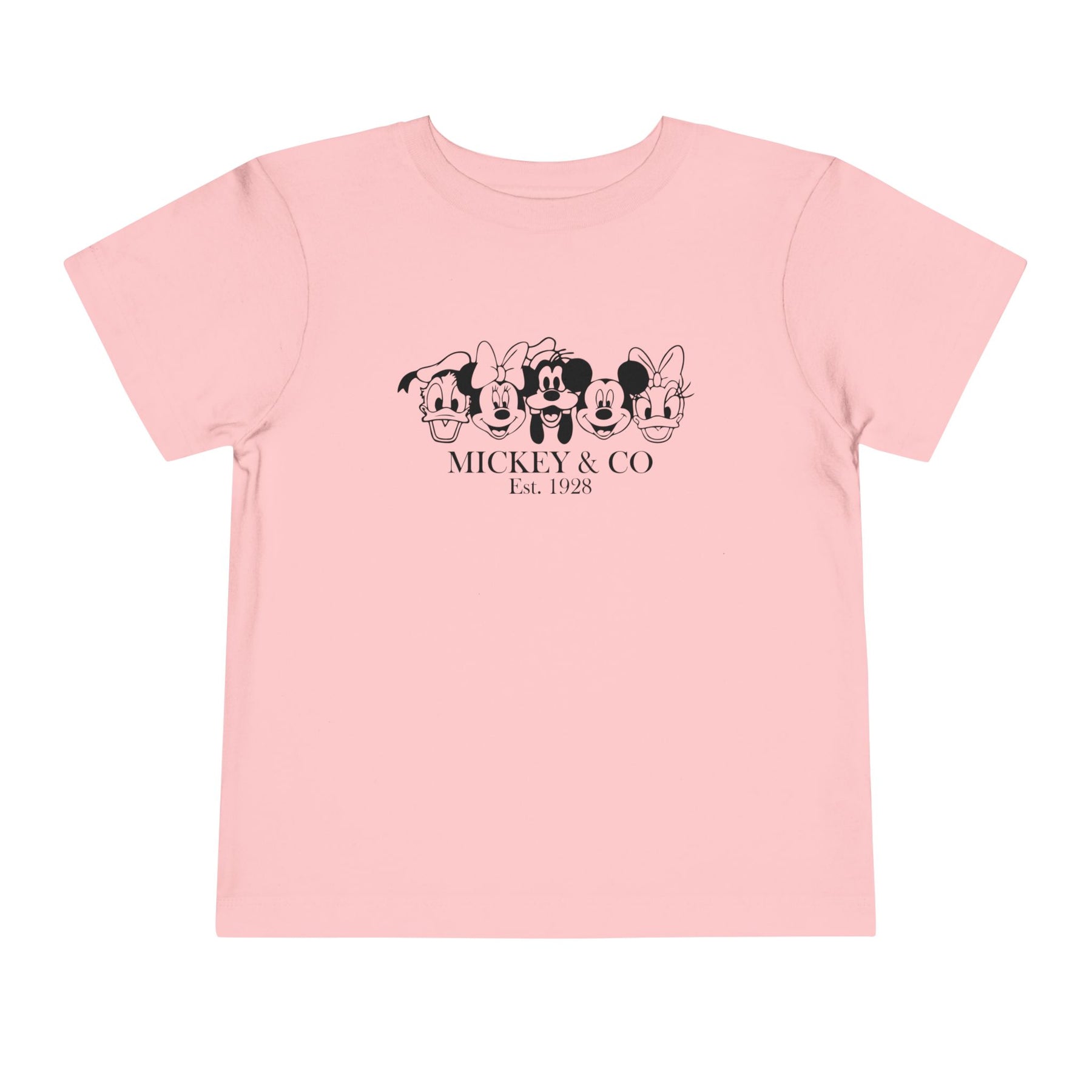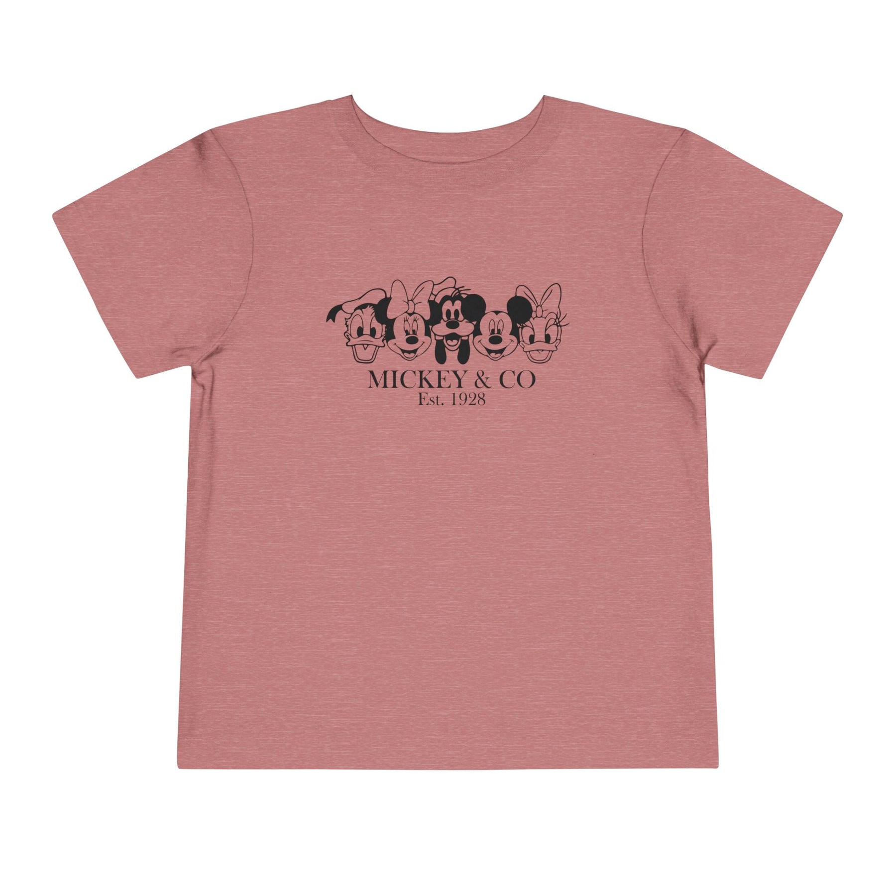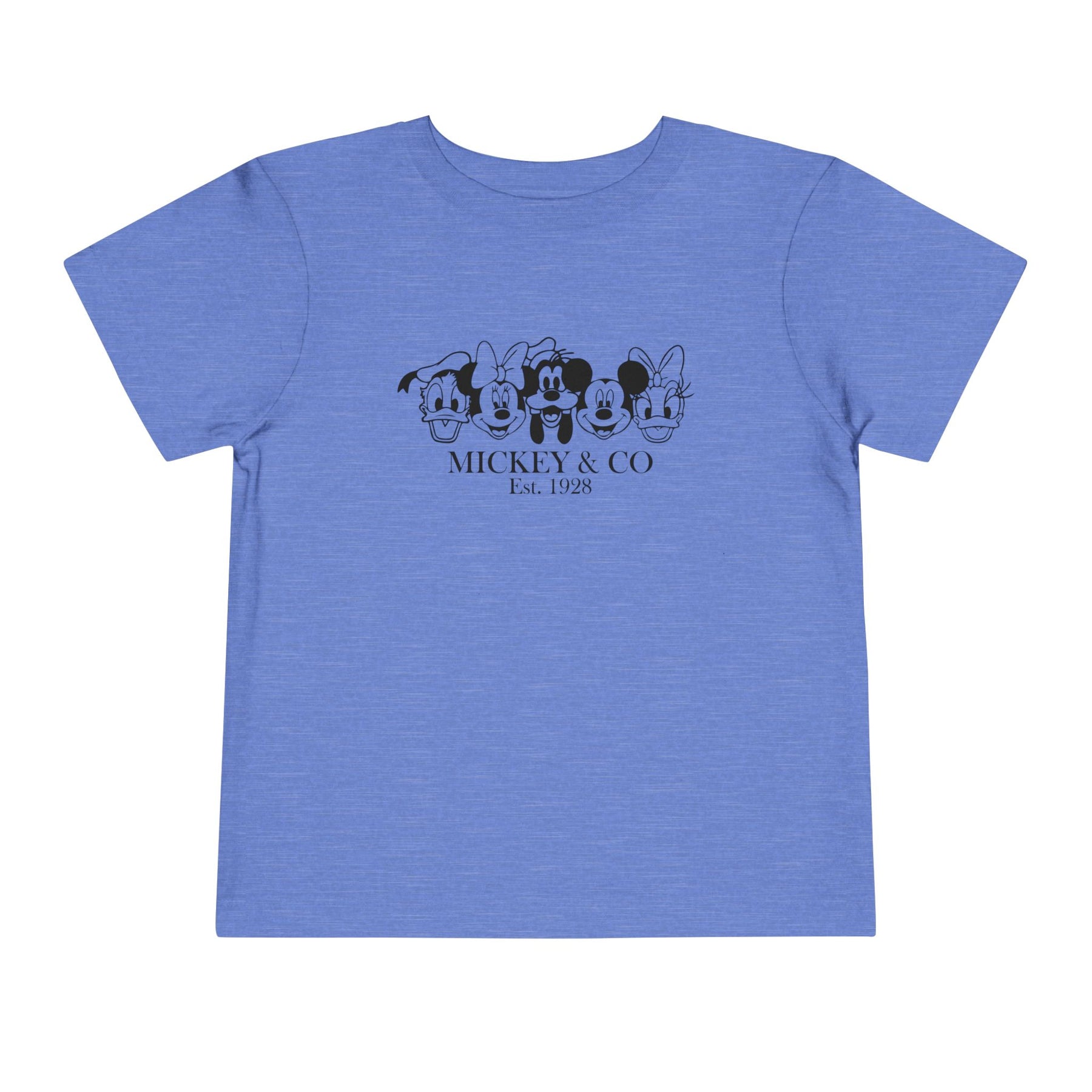 Mickey & CO Toddler Tee, a comfortable Bella Canvas short sleeve shirt made from 100% Airlume cotton, perfect for everyday wear by toddlers.