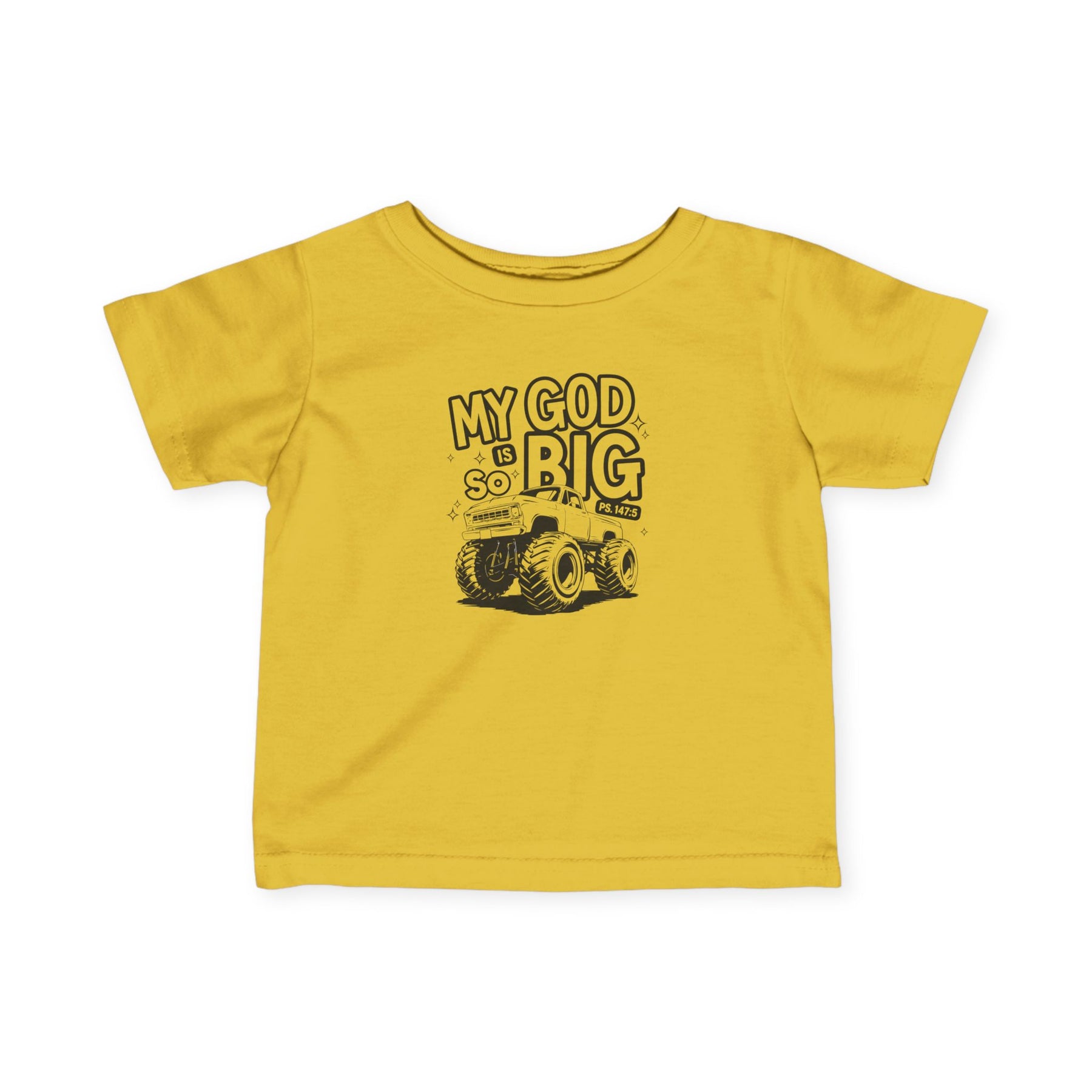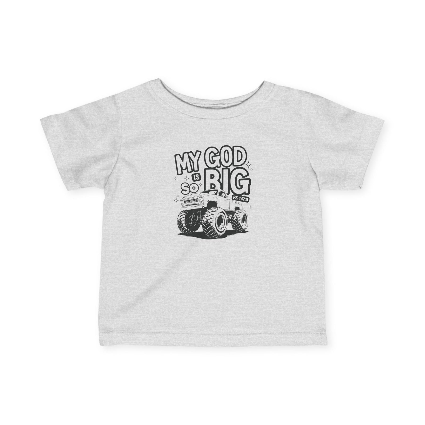 My GOD is So Big Baby Tee: Infant fine jersey tee with durable side seams and ribbed knitting, offering comfort and a classic fit for toddlers.