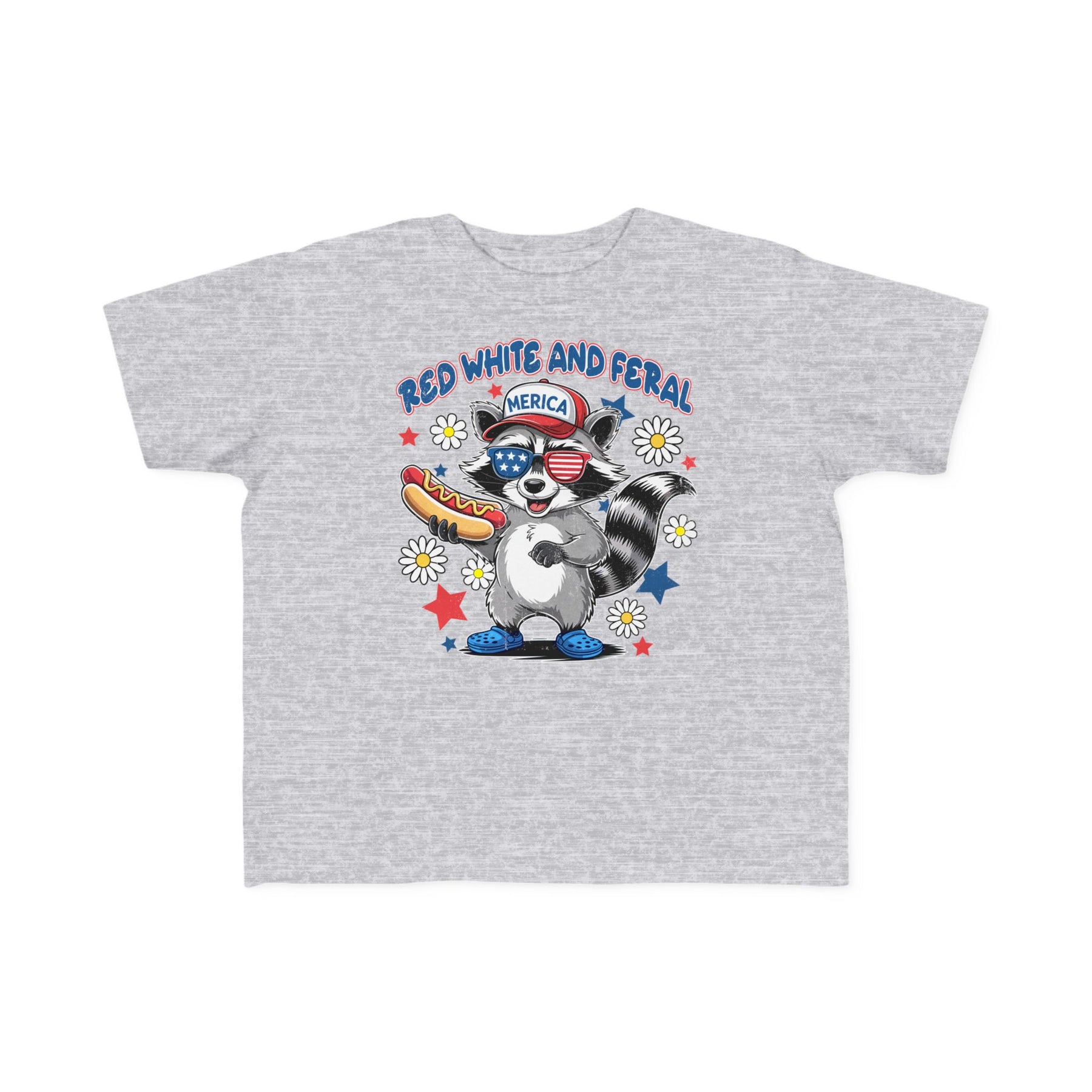Red, White and Feral 4th Toddler Tee, soft cotton fabric, classic fit, perfect for toddlers' sensitive skin with durable print, suitable for early adventures.
