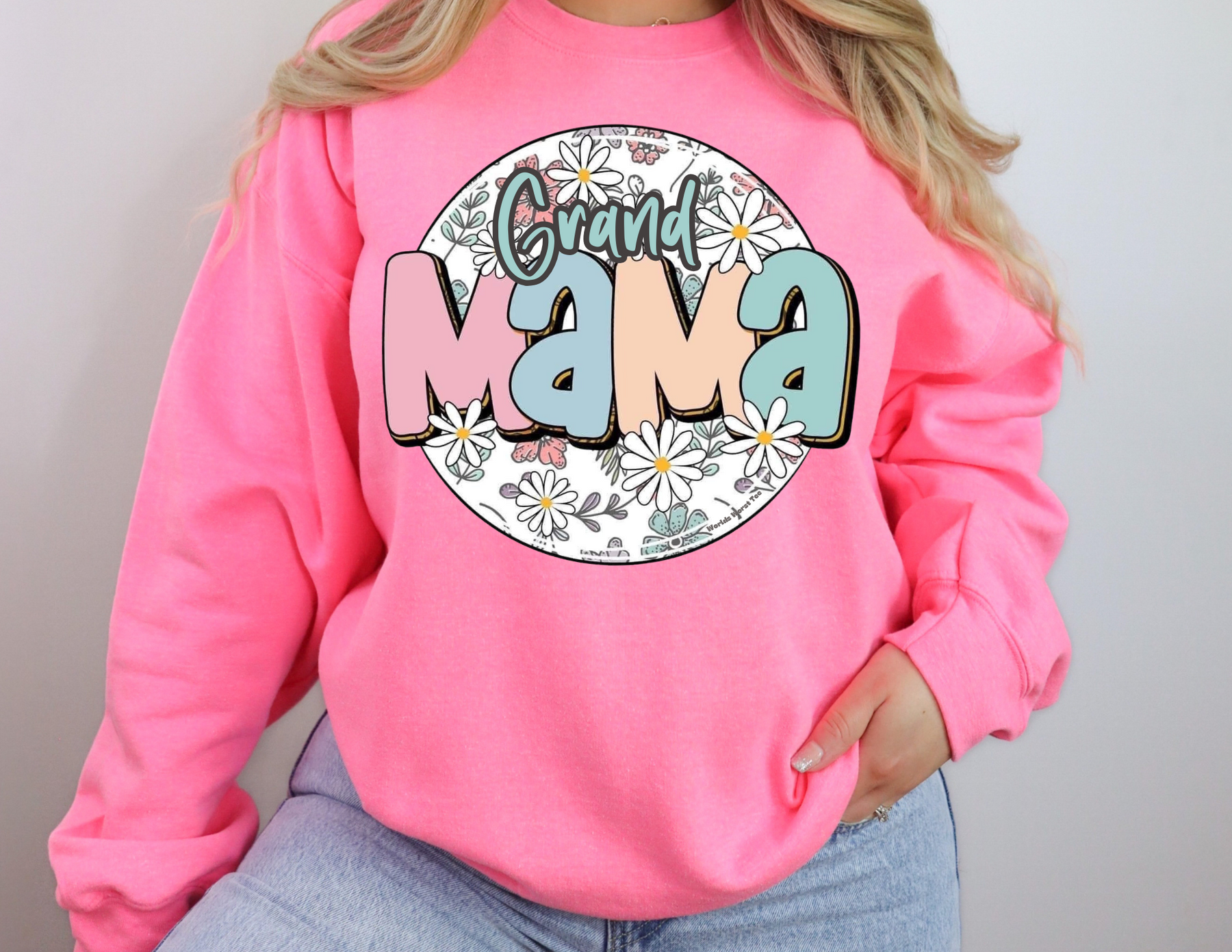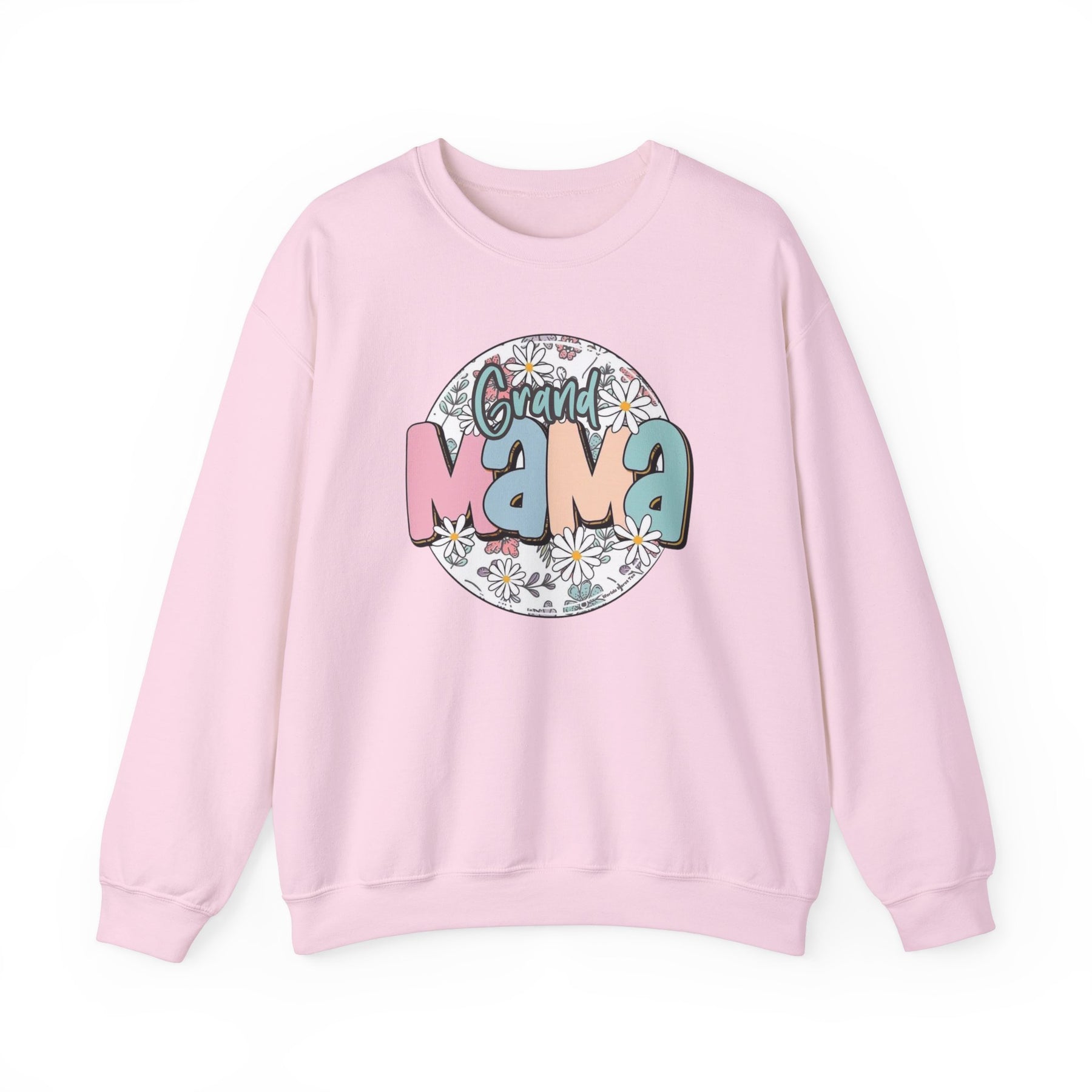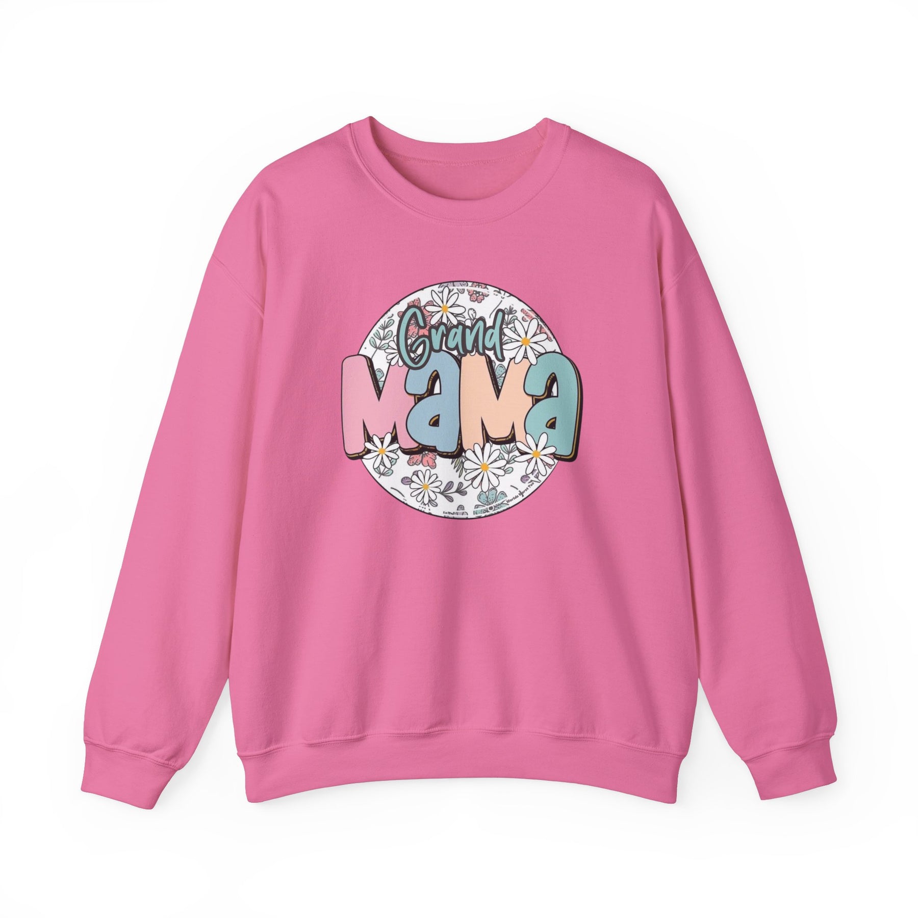 Unisex Sassy Grand Mama Flower Crew sweatshirt with ribbed knit collar, no itchy side seams. 50% cotton, 50% polyester blend, medium-heavy fabric, loose fit. Sizes S-5XL. Ideal comfort for any occasion.