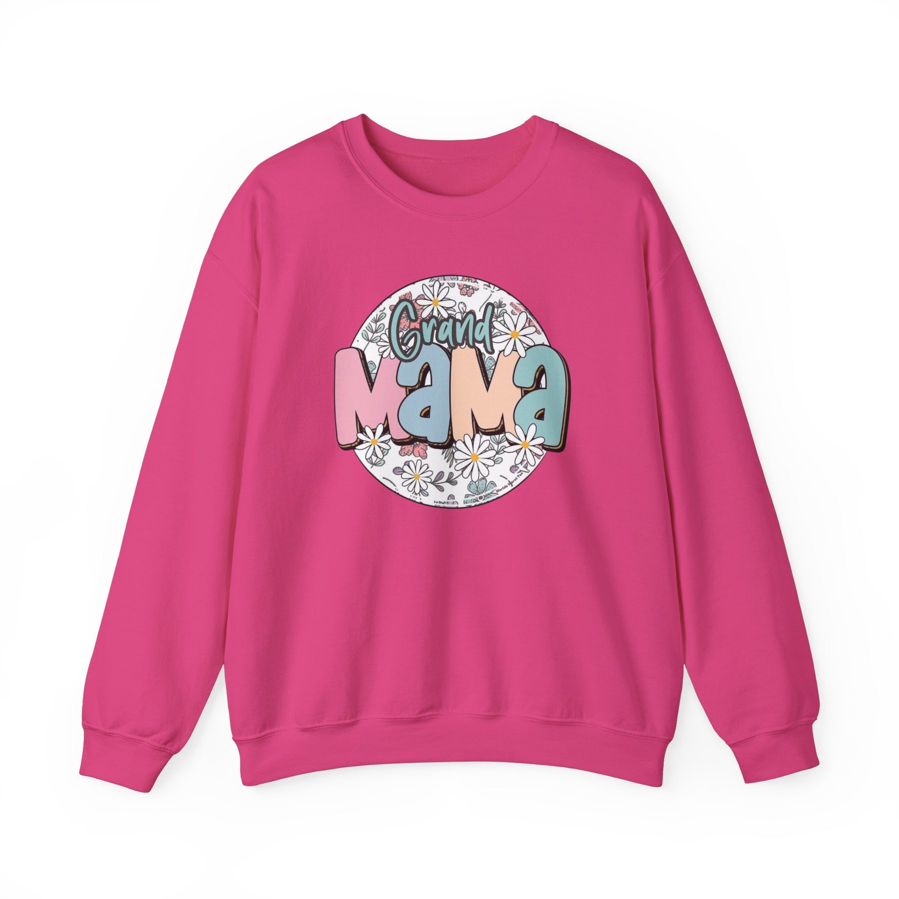 Unisex Sassy Grand Mama Flower Crew sweatshirt, a blend of comfort and style. Ribbed knit collar, no itchy seams, loose fit, 50% cotton, 50% polyester, medium-heavy fabric. Ideal for any occasion.
