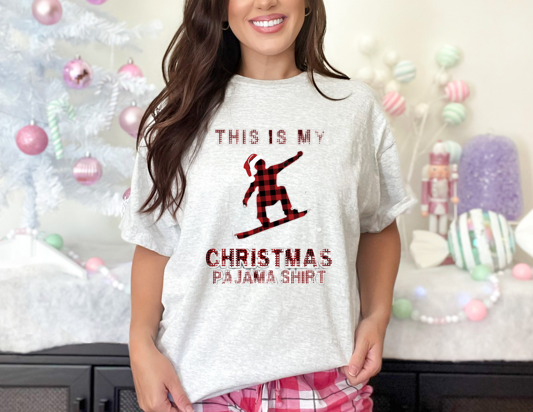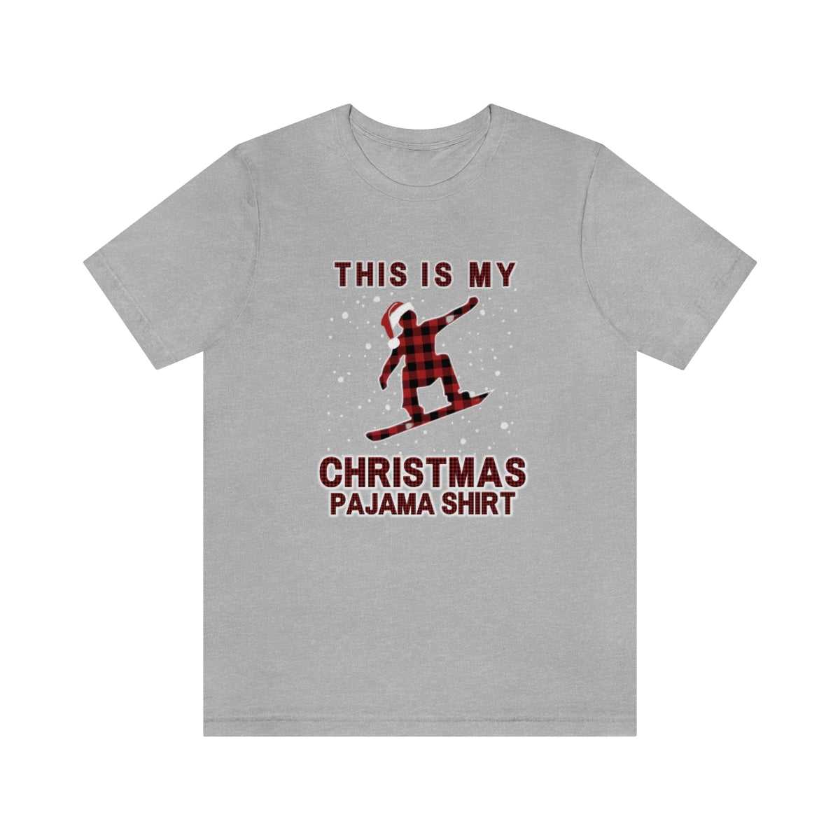 Snowboarding This is my Christmas Tee is a classic unisex jersey short sleeve tee fits like a well-loved favorite. Soft cotton and quality print will make you fall in love with it over and over again. These t-shirts have-ribbed knit collars to bolster shaping. The shoulders have taping for better fit over time. Dual side seams hold the garment's shape for longer. Solid colors are 100% cotton except Ash - 99% cotton and 1% polyester, heather colors are 52% cotton, 48% polyester (Athletic Heather and Black Heather are 90% cotton, 10% polyester)